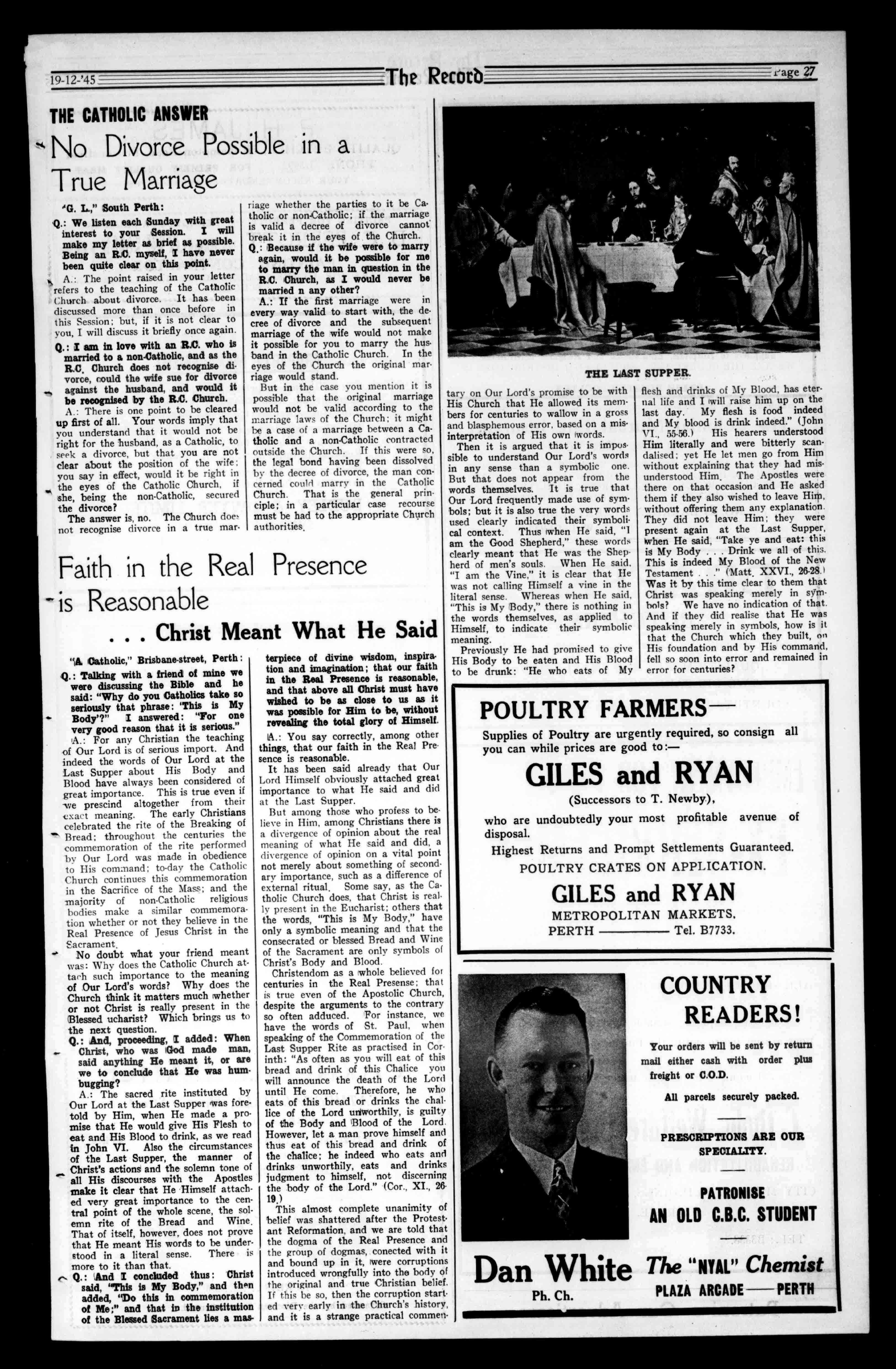 A.:Thepointraisedinyourletter referstotheteachingoftheCatholic Churchaboutdivorce.Ithasbeen discussedmorethanoncebeforein thisSession:but,ifitisnotclearto you,Iwilldiscussitbrieflyonceagain.