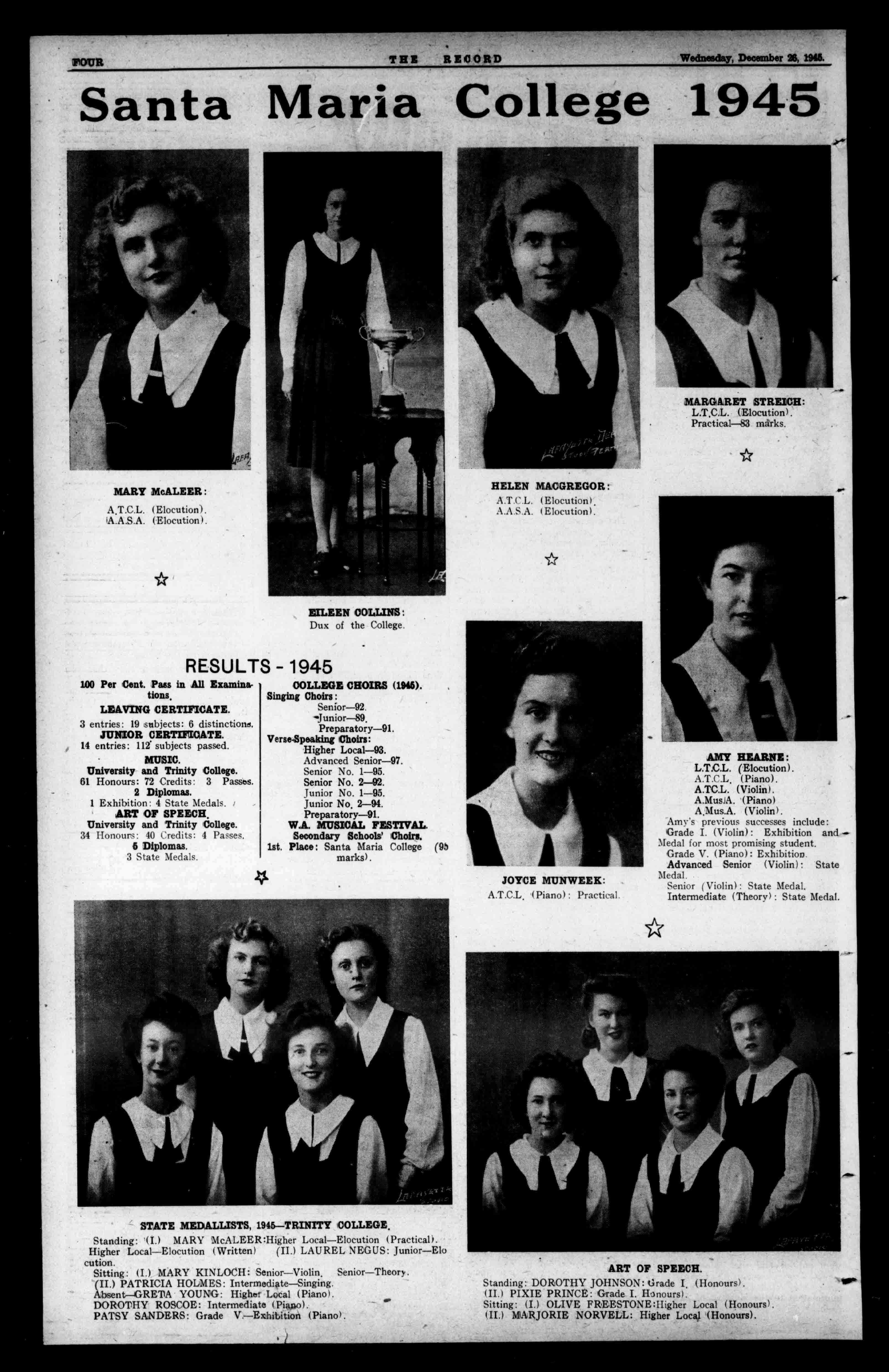 Aggregate:L.Windsor,W.Barker. M.McMullen.ReligiousKnowledge: P.MohenEnglish:W.Barker.History:L.Windsor.Latin:W.Barker. Maths.A.:J.Bligh.Maths.B.:J. Bligh.Geography:M.McMullen. SpecialEnglish:D.Hill,French:J. Duignan.Essay:R.Beattie.
