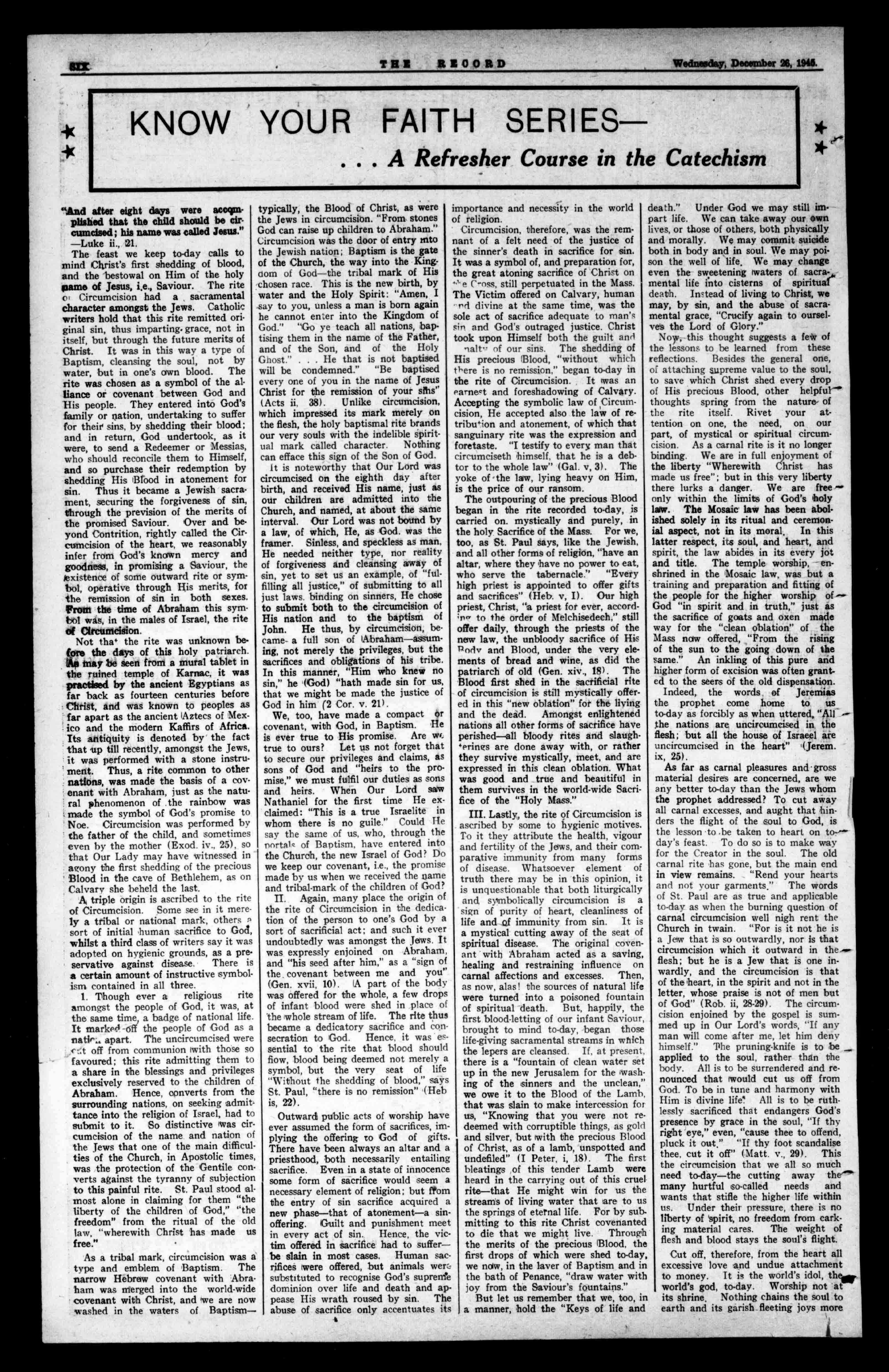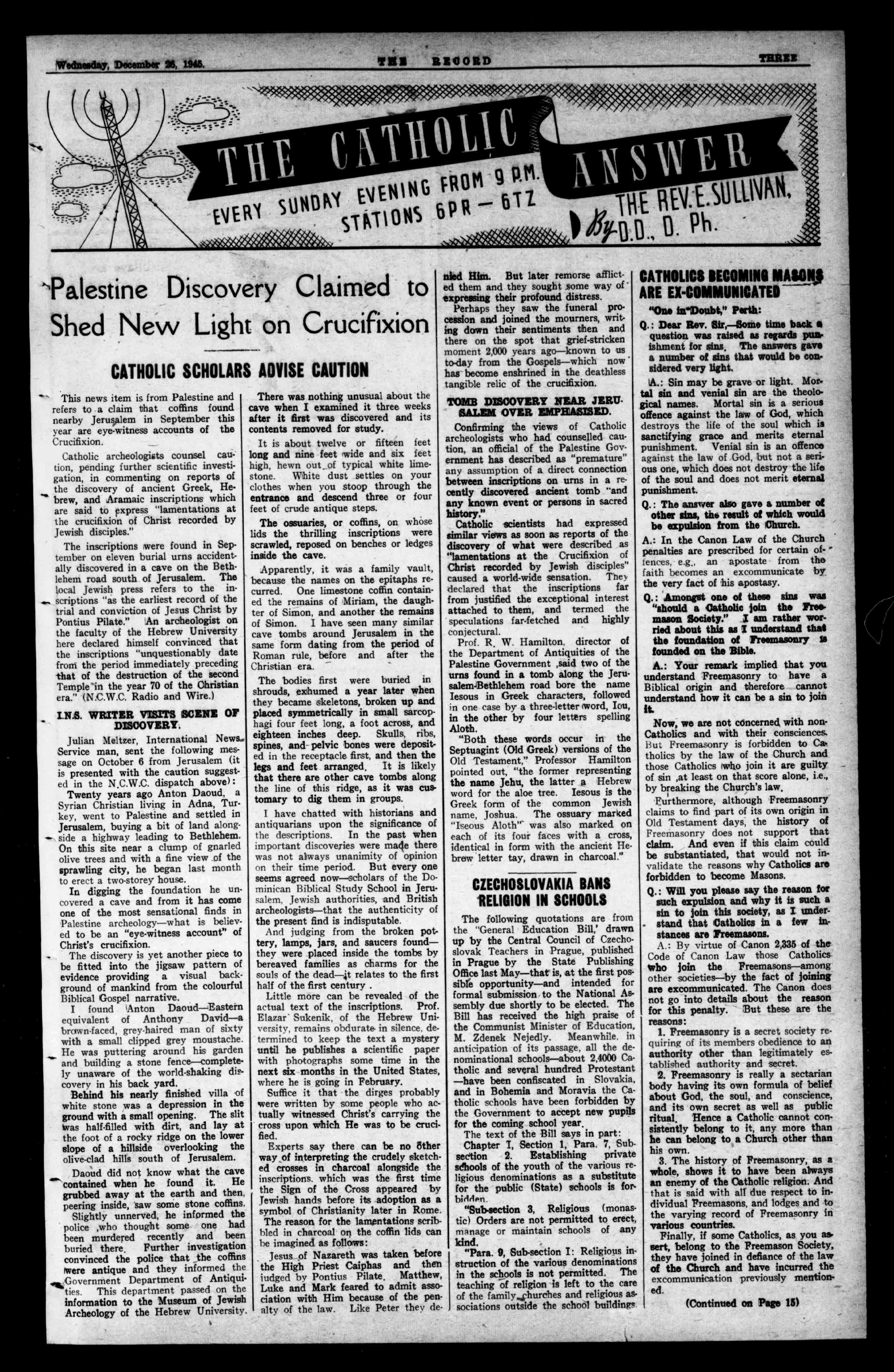 A.:Quiteright.Whyshouldyou openupthecontroversy?Afterall notagreatquestion.Aswas saidintheSessionyouquotedinyour letter:"Theseareonlyaccidentaldetails.ThemainobjectiveoftherepresentationofthePassionistherealisationofthesufferingsJesusborefor oursins.Thephysicalweightofthe Cross:wastheleastofthesufferingsof Jesus-butHeisrepresentedascarryingittotheendinordertoshowthat HedranktheChaliceofsufferingto thedregs."