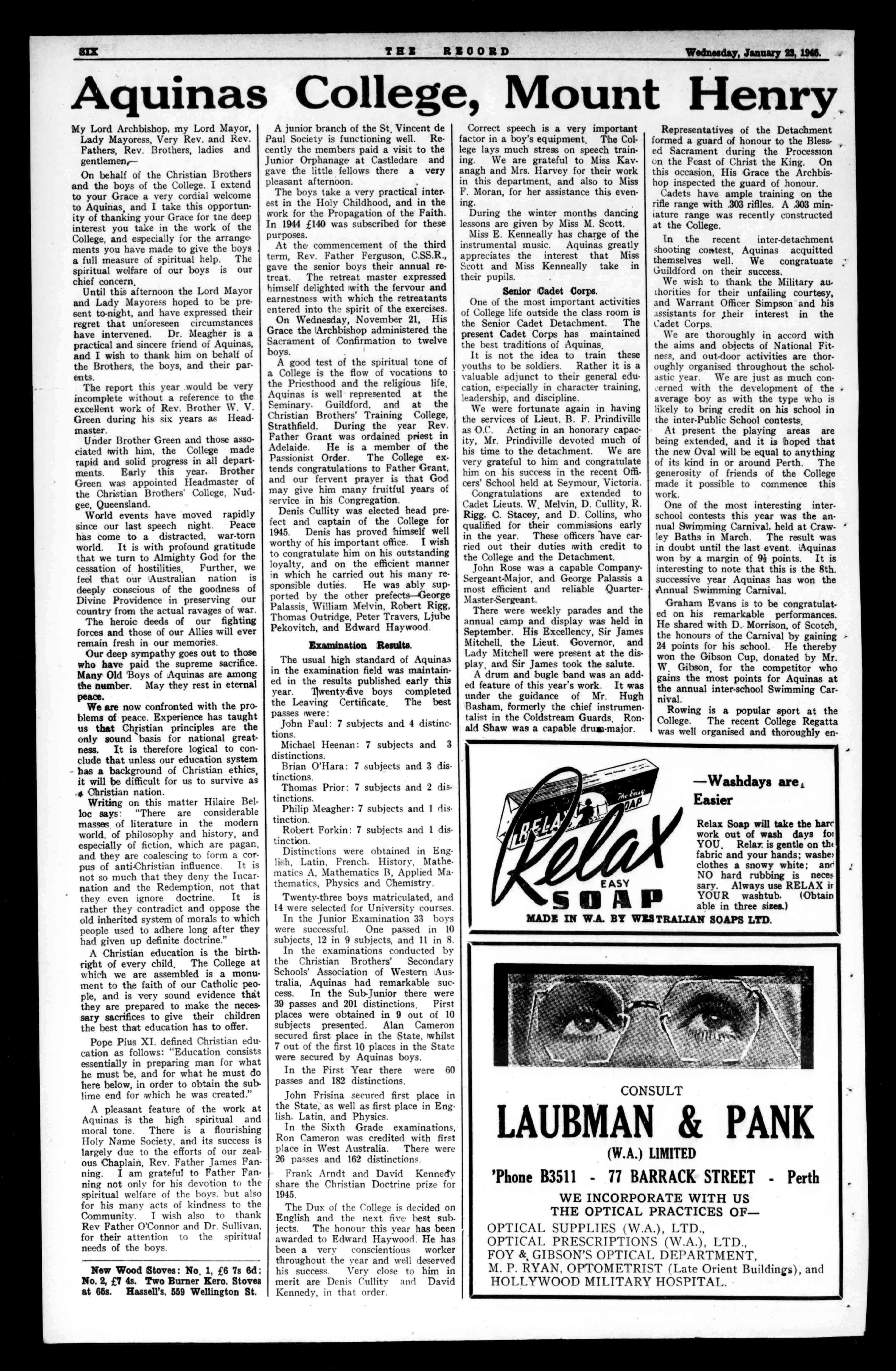 TWO TelRECORD Wednesday,January23,1946.