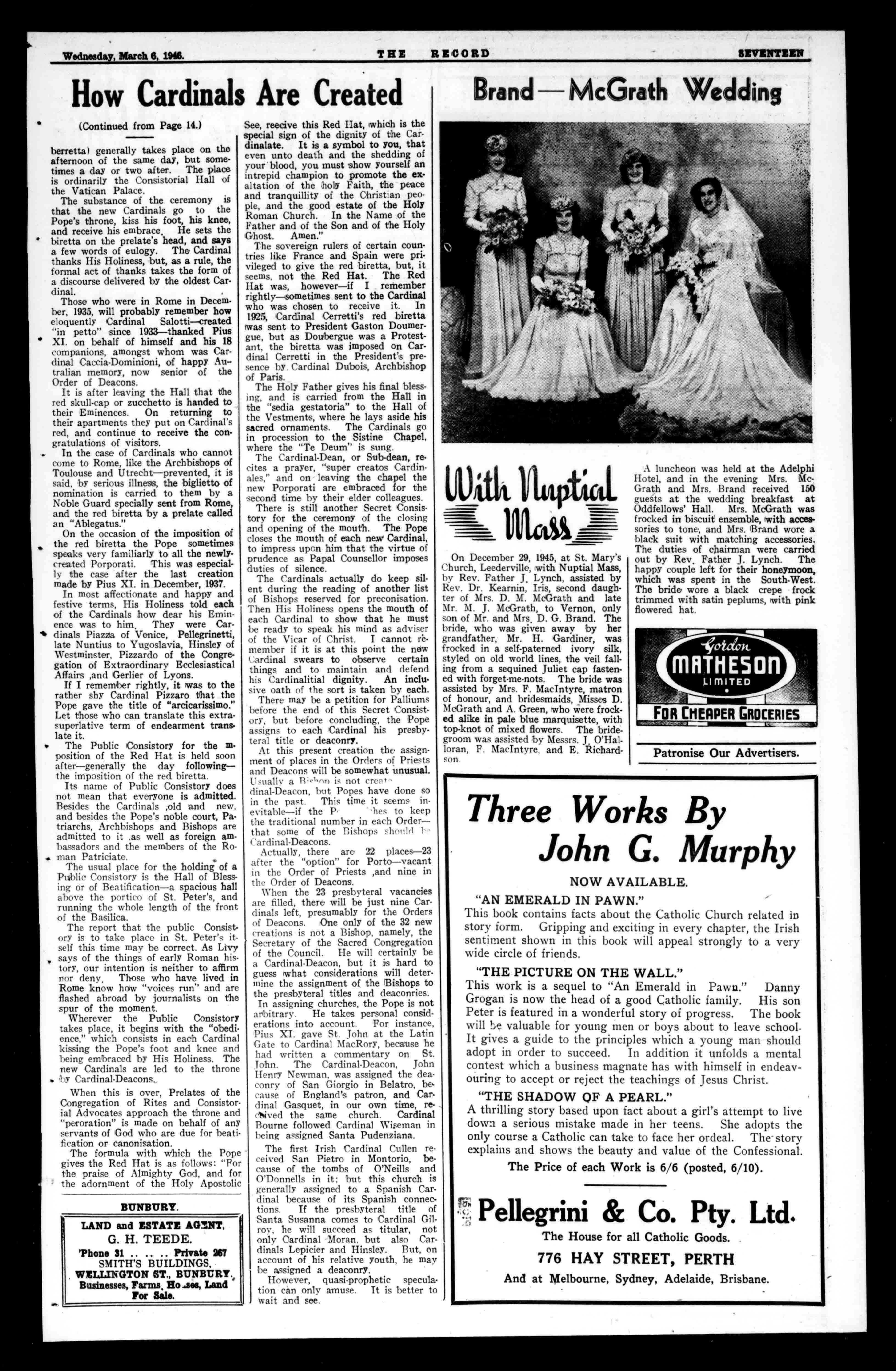 FromthestrugglesofPerth'sfirst Bishoptothedistinctionandhonour ofthefirstAustralian-bornPrinceof theChurchisonehundredyears,not alongspaninthehistoryofthe Church.Itisourgoodfortunethat ourCentenaryCelebrationswillbethe firstnationaleventwhichthenewlyappointedCardinalwillhonourwith hispresence.Wecanpromisehima hundred,'thousandwelcomestothe West, THEPROGRAMME.