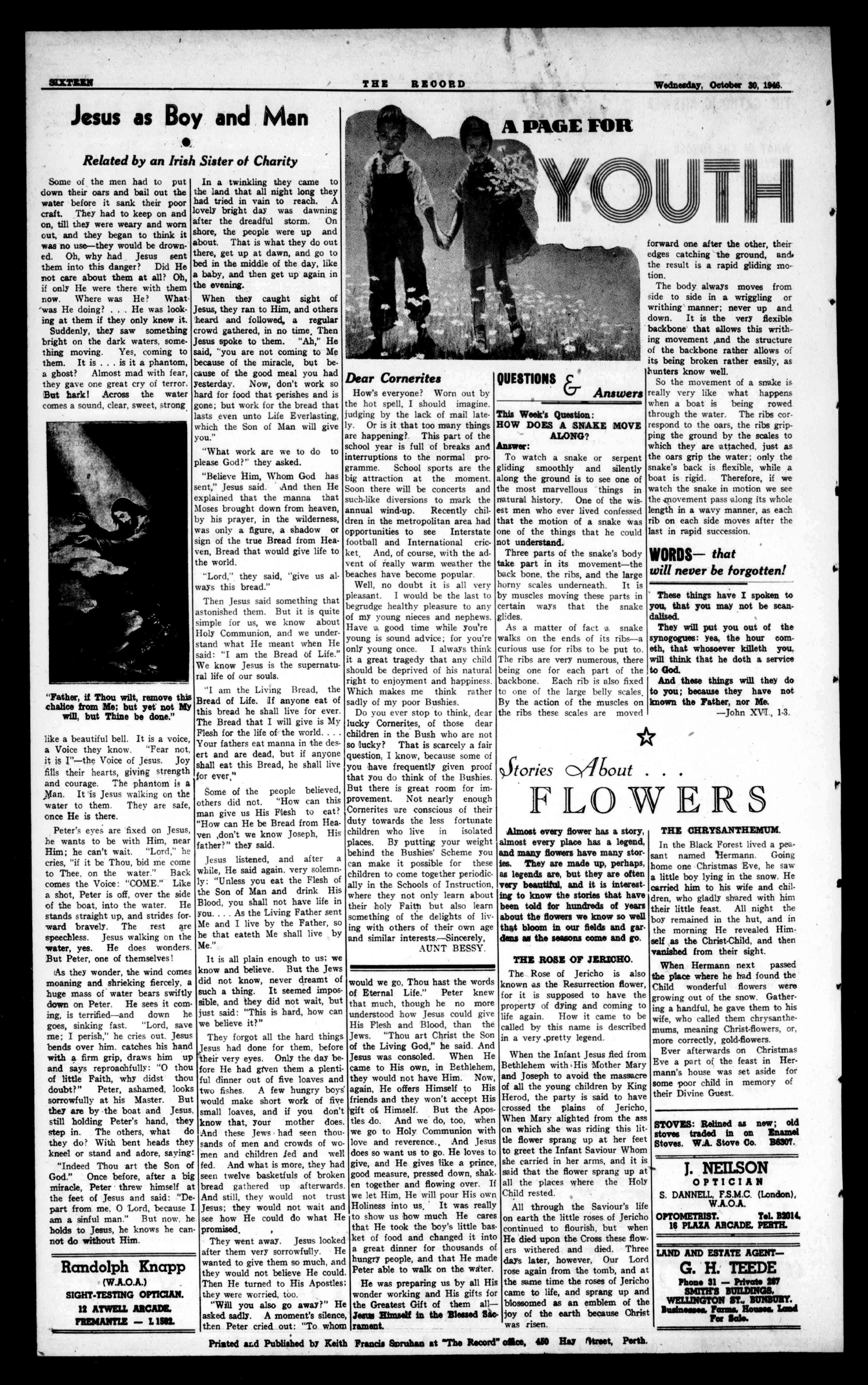 77'grellir se.?9,7p,,wor..erwgr ab," sr.me-, ' 74,141IW ar /e, ,sue OTFICTAT,ORGANOFTHEARCHDIOCESEOFPERTH.ESTABLISHED1874.'PHONEB6950 RegisteredattheG.P.O.,Perth,fortransmissionbypostasanewspaper. 450HayStreet,Perth,BoxA35,G.P.O.,Perth. NO,2,256. PERTH,WEDNESDAY,OCTOBER30,1946. PRICETHREEPENCE SEVENTY-THIRDYEAR