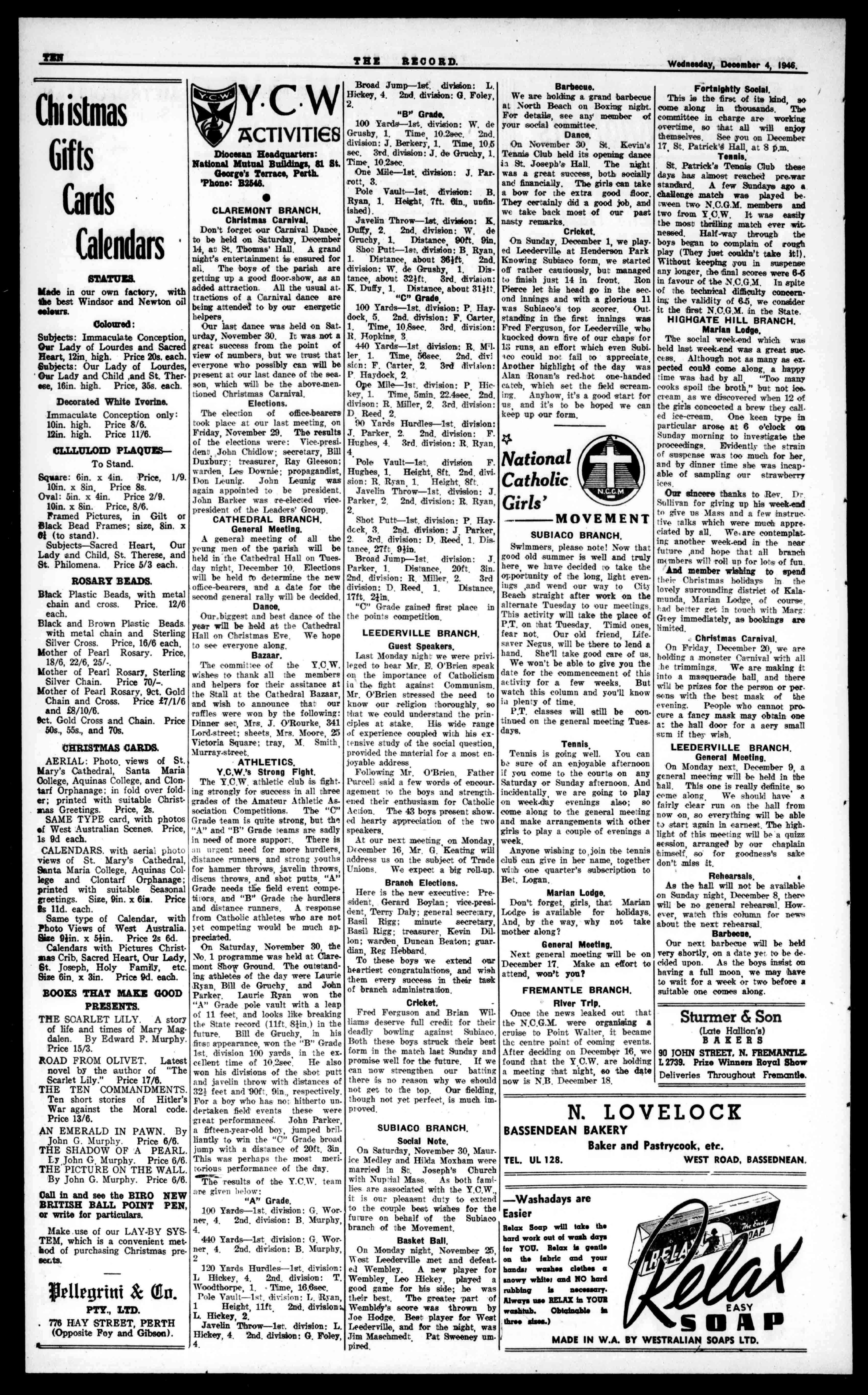 OFFICIALORGANOFTHEARCHDIOCESEOFPERTH.ESTABLISHED1874.'PHONEB6950 RegisteredattheG.P.O.,Perth,fortransmissionbypostasanewspaper. 450HayStreet,Perth,BoxA35,G.P.O.,Perth. NO.2,260, PERTH,WEDNESDAY,DECEMBER4,1946, PRICETHREEPENCE SEVENTY-THIRDYEAR