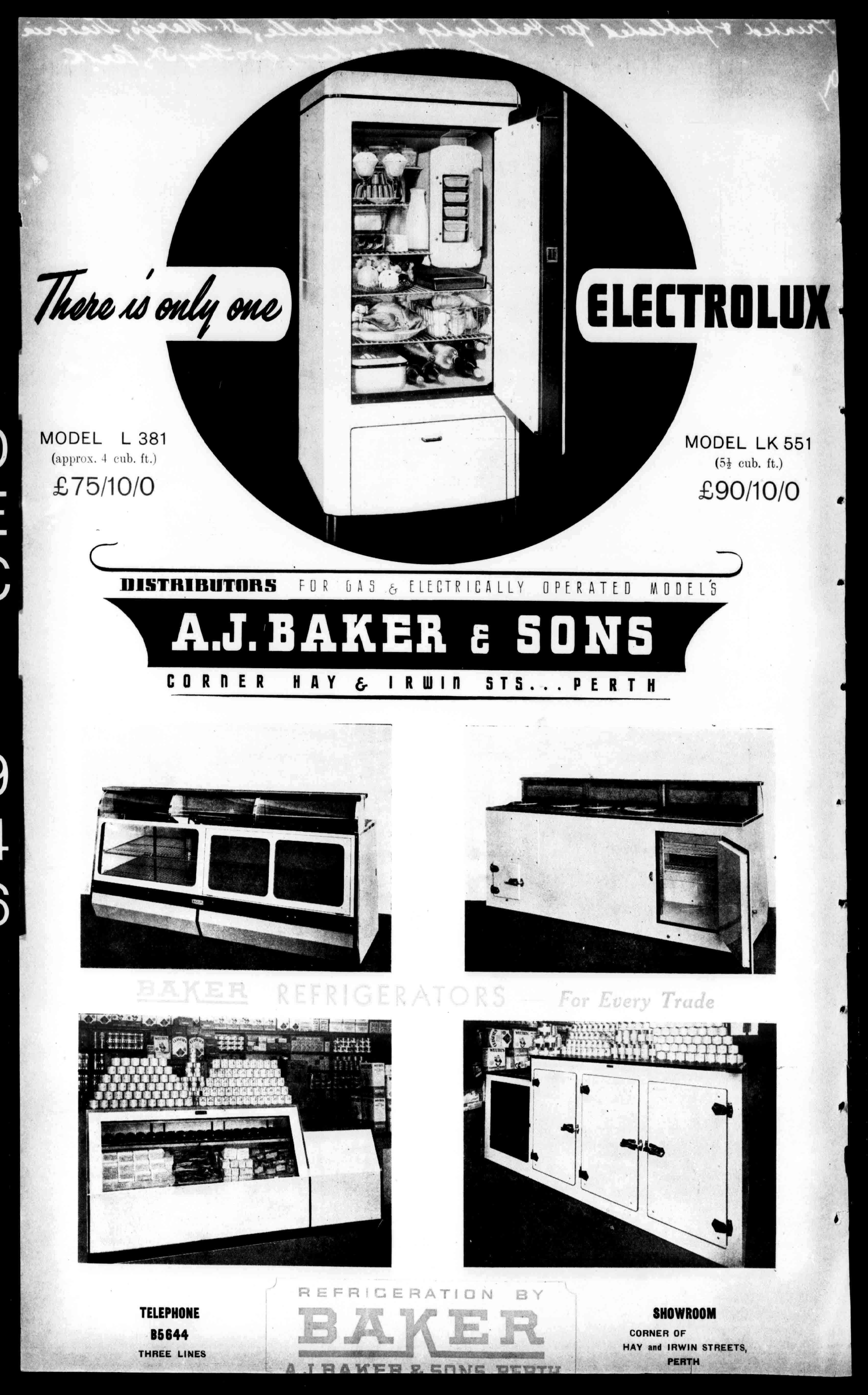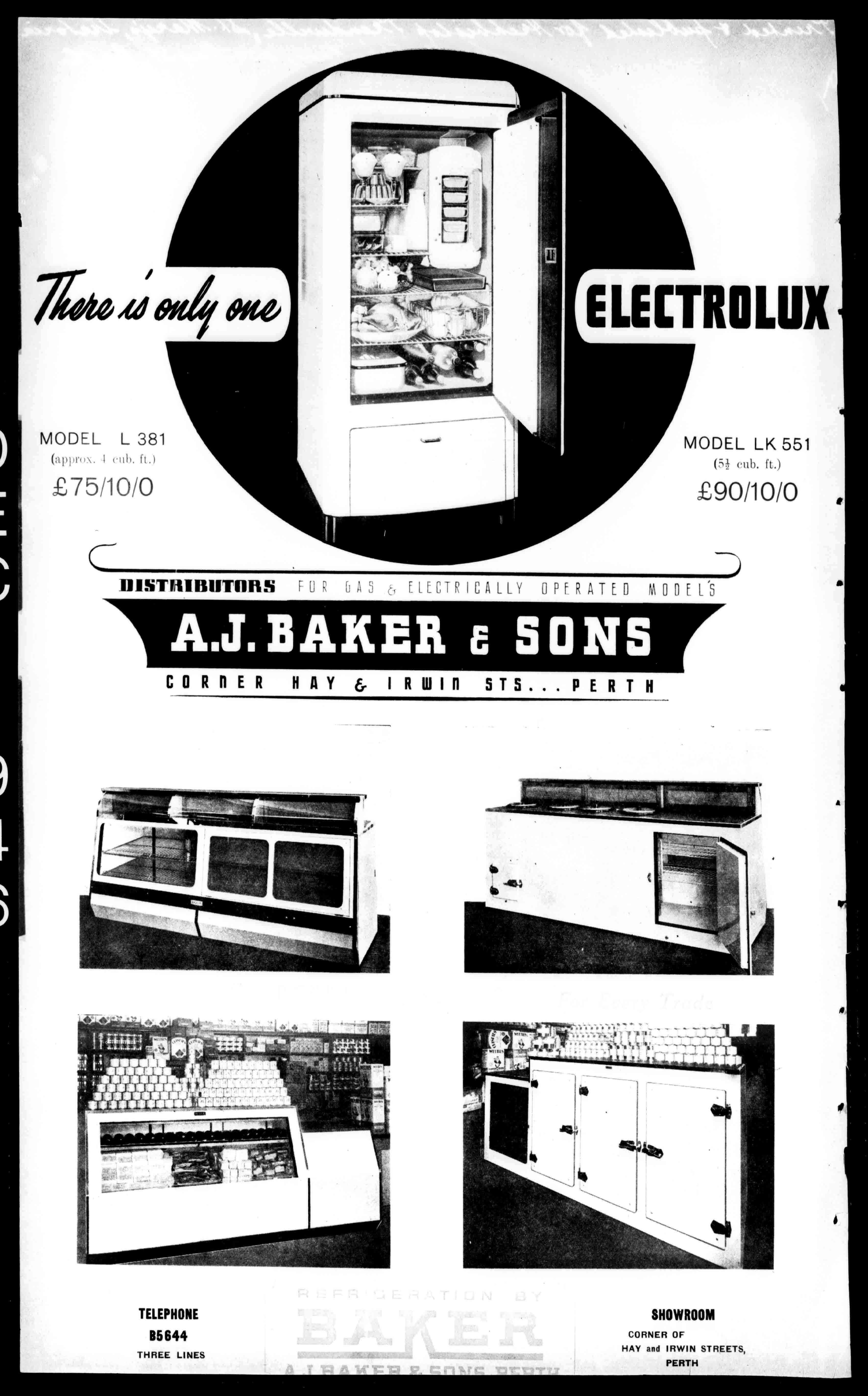 CORRERHAY& I RWIH STS...PERTH TELEPHONE B5644 THREELINES SHOWROOM CORNEROF HAYandIRWINSTREETS, PERTH