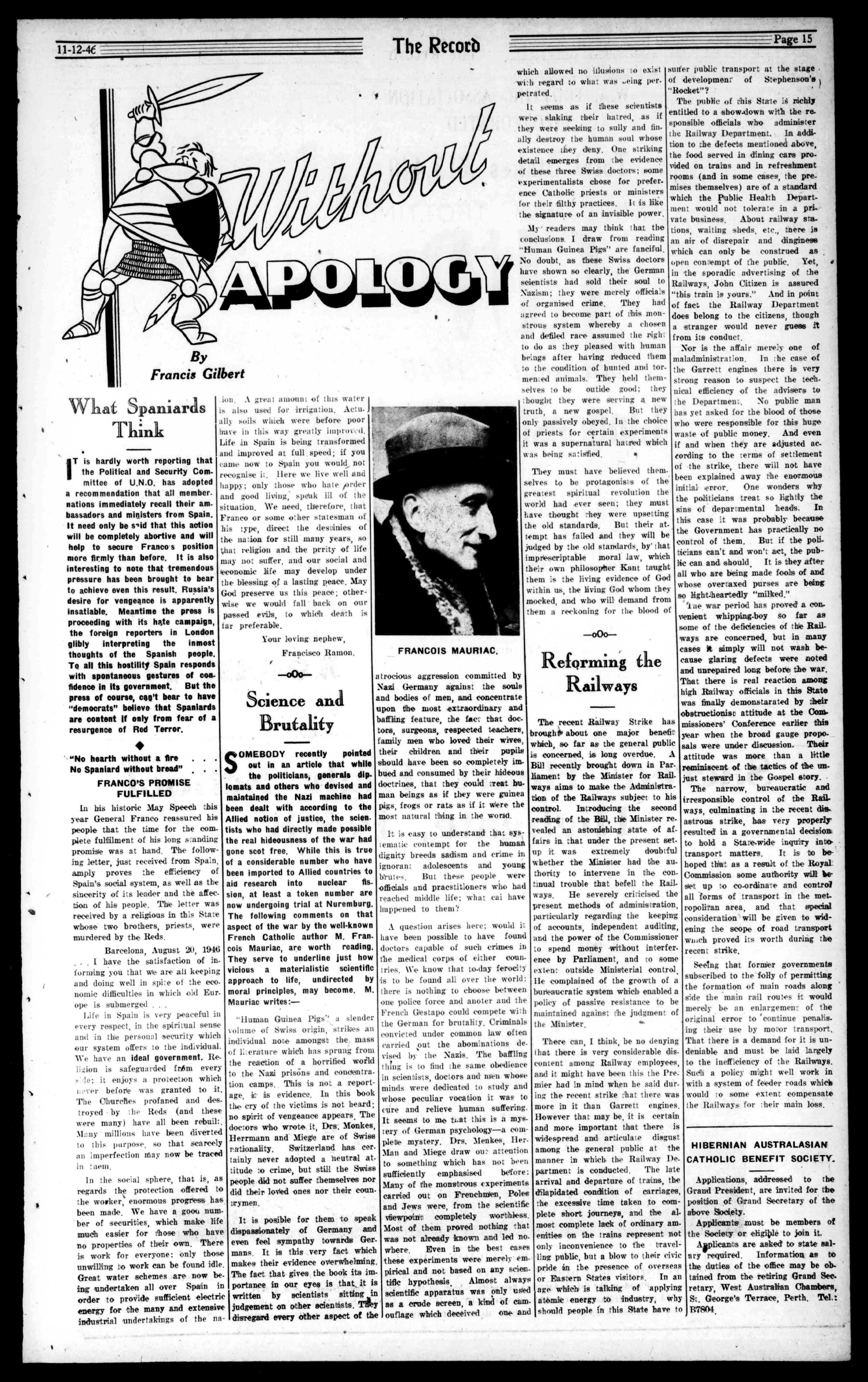 Taking,then,thecaseyouspeak of,thisketurerwhowholeheartedlyapprovedtheuseofforceto overthrowthepre-Francoregime. Suppose,accordingtofloeimmutable standardsofhumanconduct,based ontheNaturalLaw,thisregime wasevilthroughandthrough,evil initsfundamentalprinciples,evilin itspurposes,andevilinitsmethods,wouldyounotagreethata manisrighttocondemnitandif needbeapproveofitssuppression byforce?isnotamanentitledto approveofitssuppressionbyforce? Isnotamanentitledtodefendhis life,orhiswife'sordaughter'shonourfromanunjustaggressor,even byrecoursetoforce-?Well,the Communistgangofcut-throatReds whowereterroriengSpainwhile theso-calledRepublicanGovernmentlookedon,weresuch,evilin theirfalseprinciples-thedenialof Godandreligion-evilintheirpurposetodestroyChristianSpainand evilintheirmethods,murder,arson andterror.Irecommendyouto readthewholestoryofthatregimebyanEnglishman,Professor AllisonPeers,whoisnotproFranco.Youwillseethere.the Redtechniqueatitsworst;you willrealisethatsecurityoflifeand propertywasatthemercyofany desperado,andthevictimswerealwaysthosewhowerelivingasgood