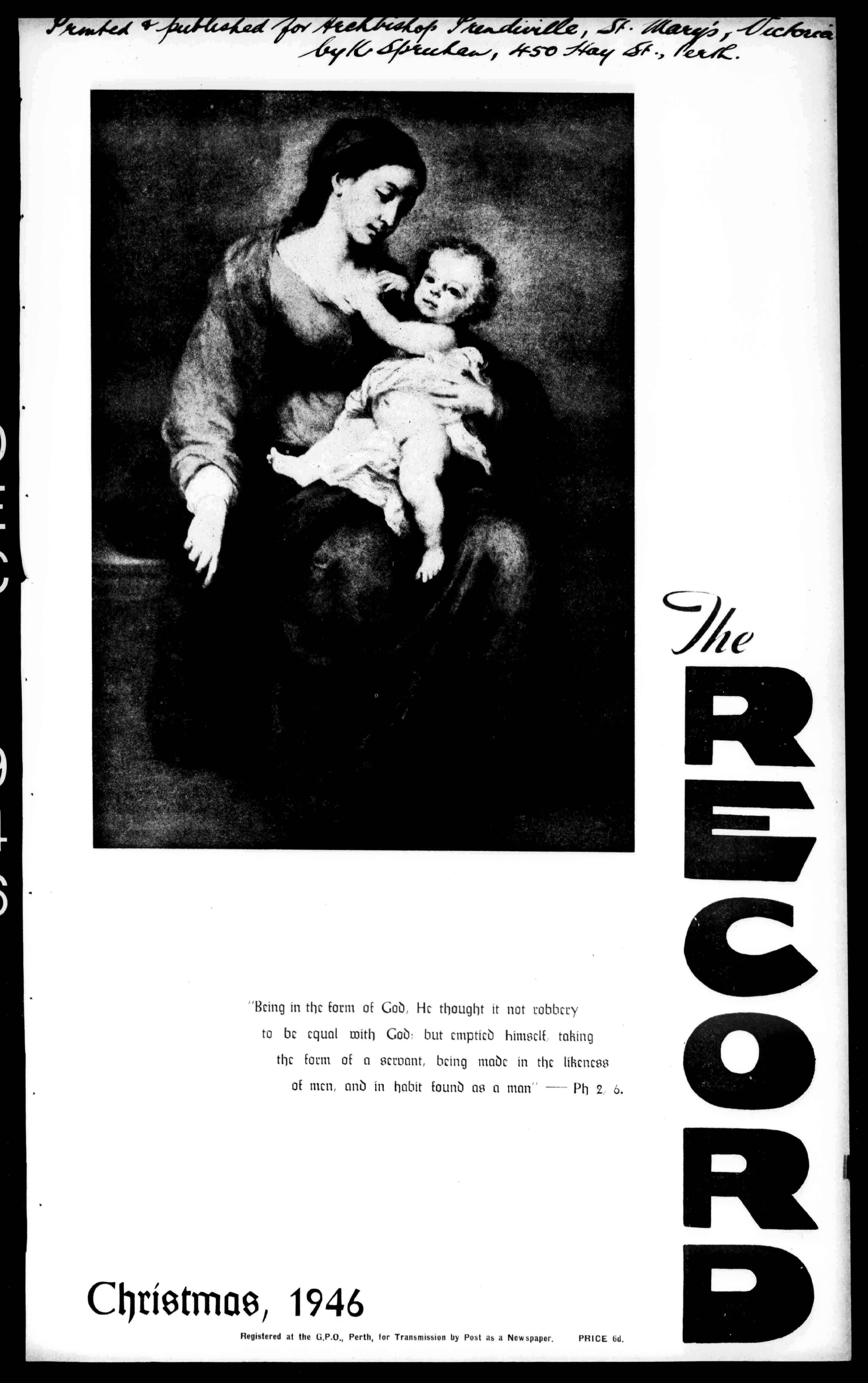 Christmas,1946 RegisteredattheG.P.0,,Perth,torTransmissionbyPostasaNewspaper. PRICE6d.