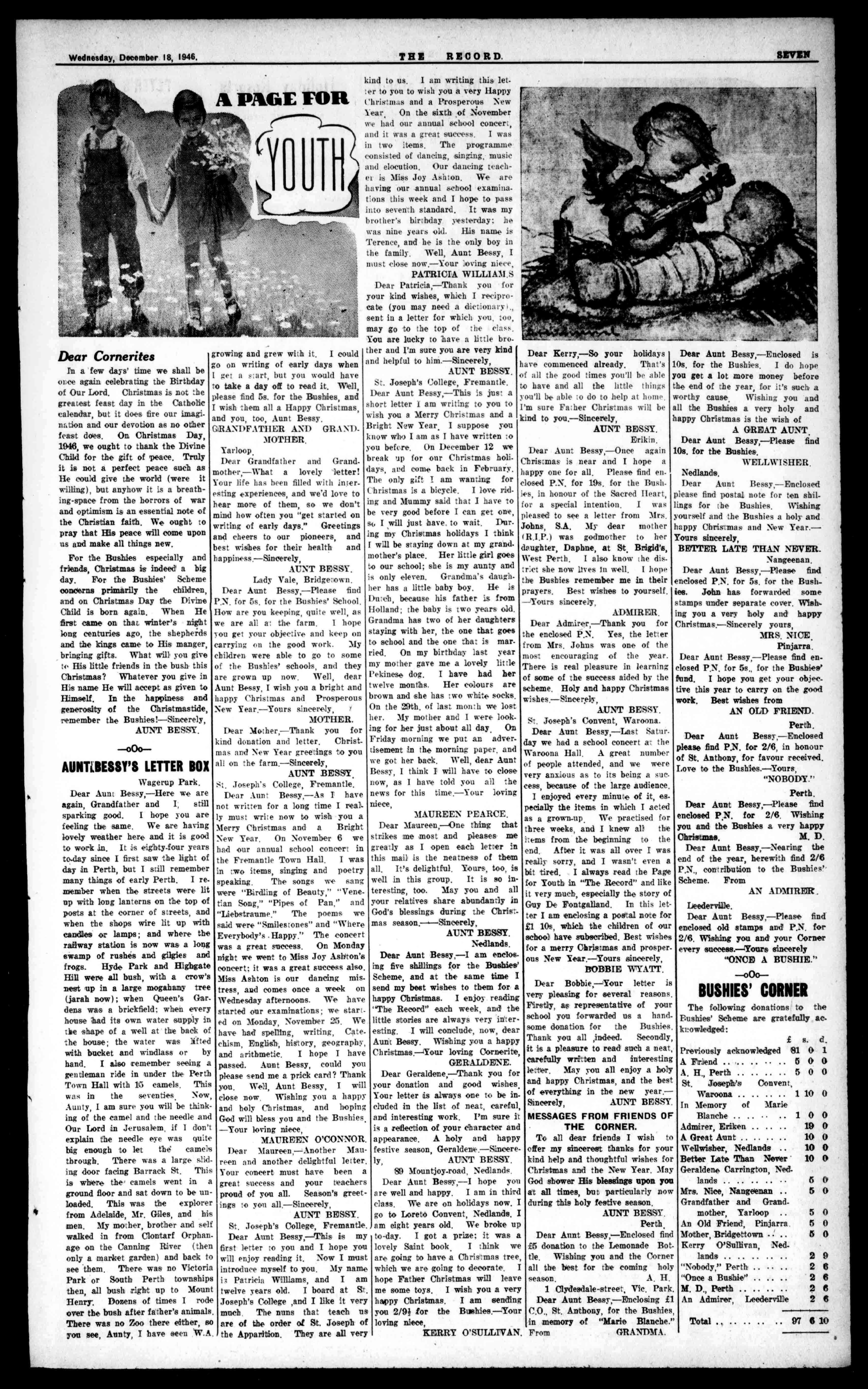 OFFICIALORGANOFTHEARCHDIOCESEOFPERTH.ESTABLISHED1874.'PHONEB6950 RegisteredattheG.P.O.,Perth,fortransmissionbypostasanewspaper. 950HayStreet,Perth,BoxA35,G.P.O.,Perth. NO,2,262. PERTH,WEDNESDAY,DECEMBER18,1946. PRICETHREEPENCE SEVENTY-THIRDYEAR