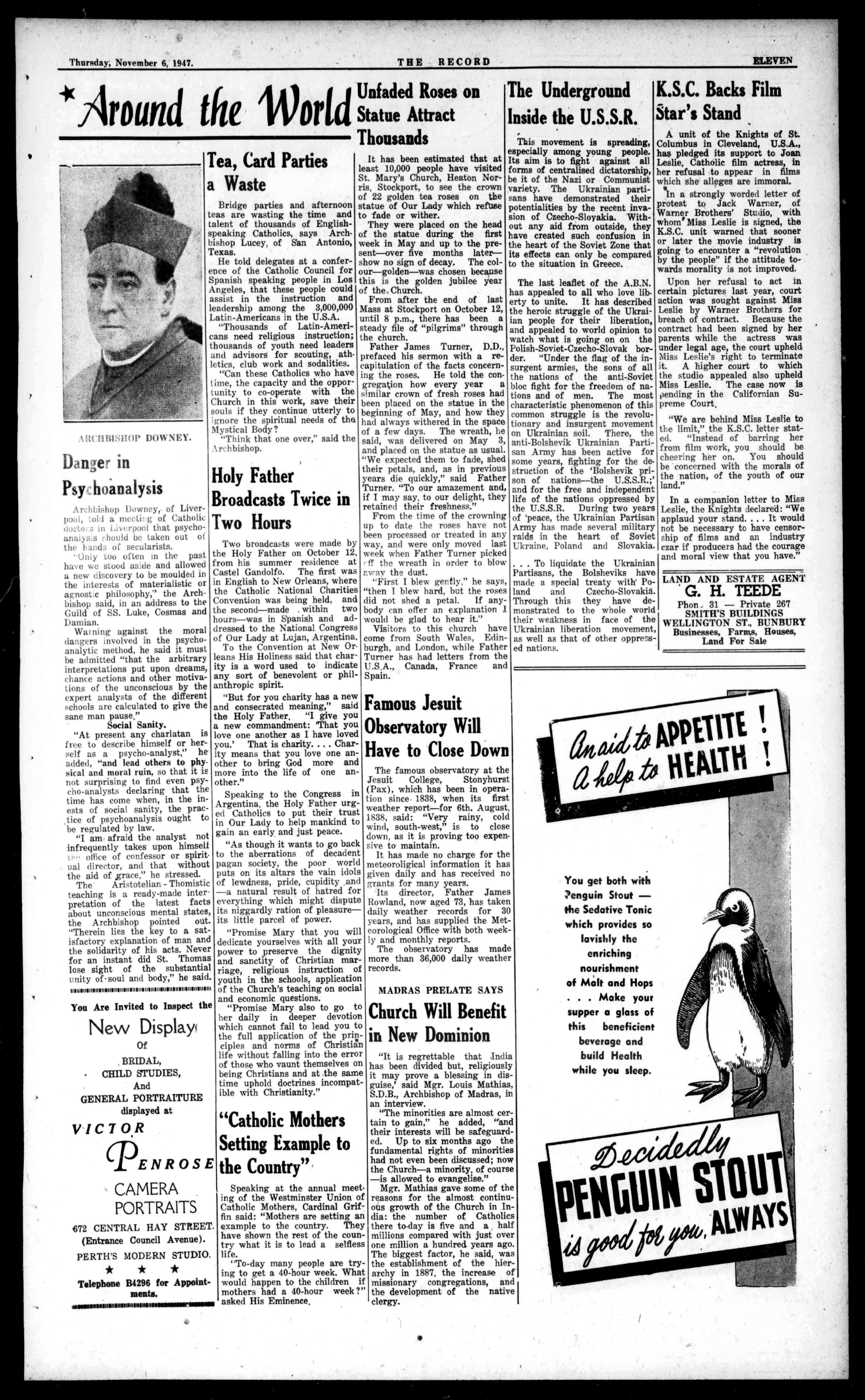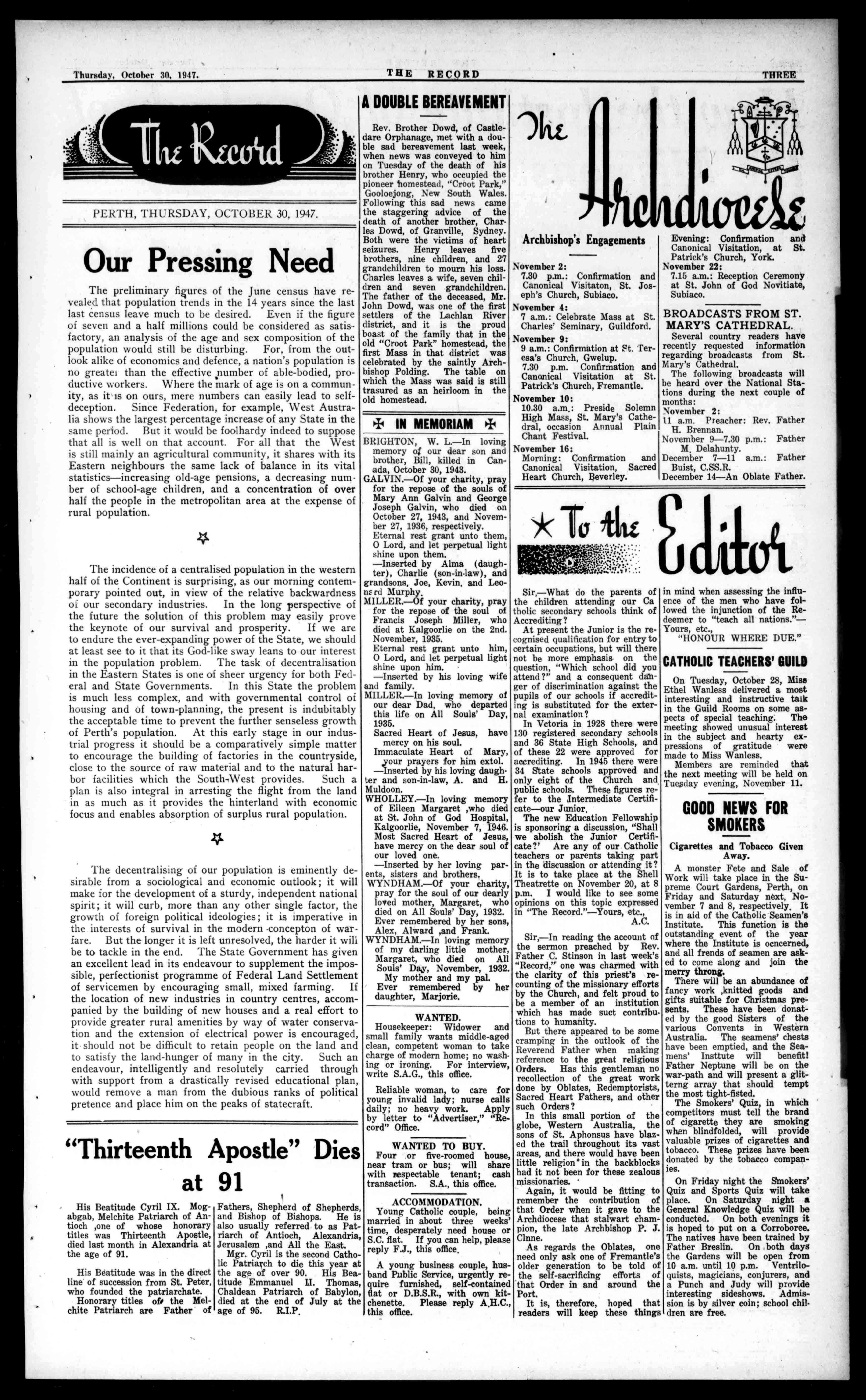 OFFICIALORGANOFTHEARCHDIOCESEOFPERTH,ESTABLISHED1874 RegisteredattheG.P.O.,Perthfortransmissionbypostasanewspaper.