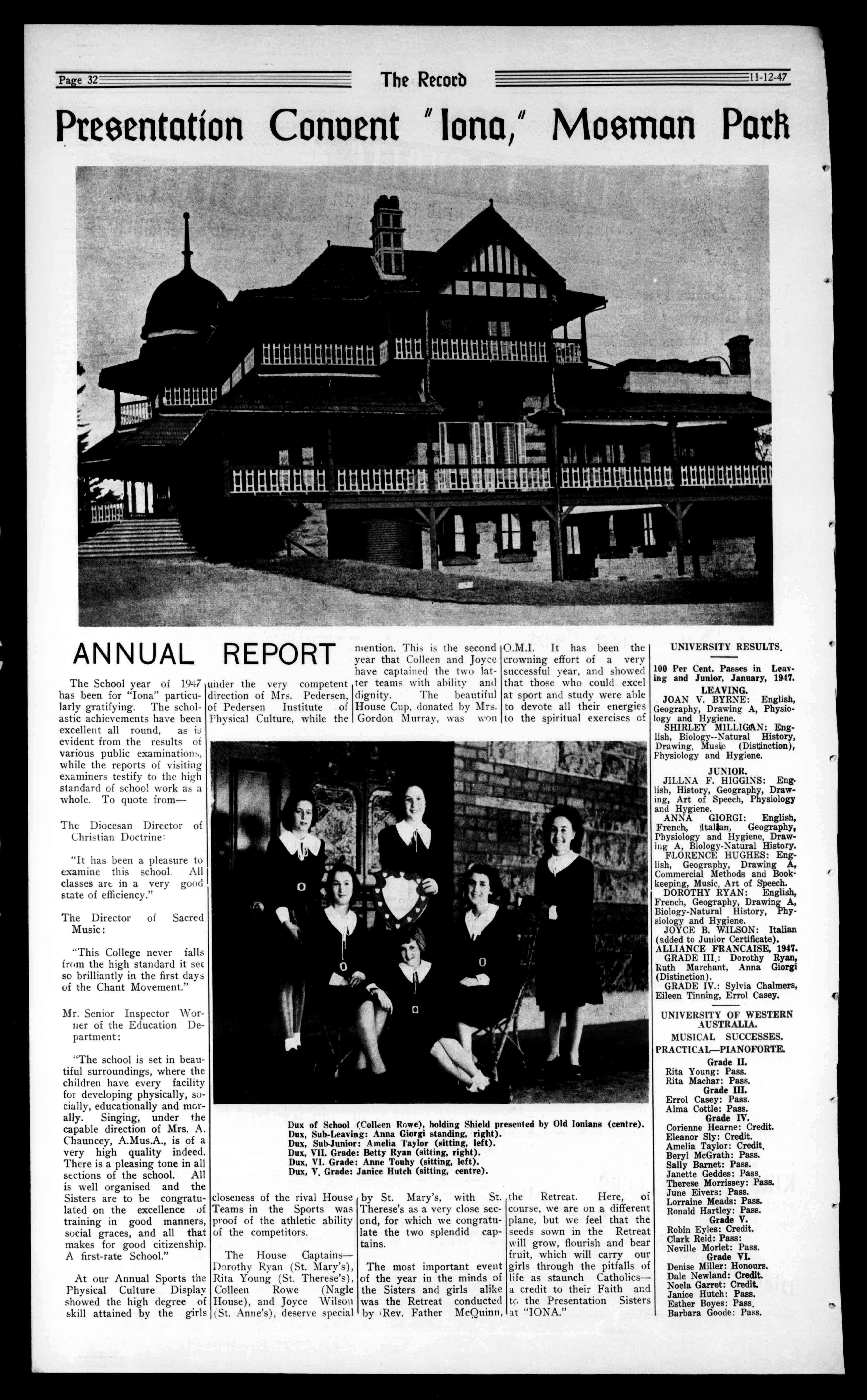 TheThrdOrderofSt.Francis, underthespiritualdirectorship ofRev.FatherMcBride,andthe PrefectureofBro.Mulliganhas steadilyincreasedinmembershipduringthepastyear.We veryreluctantlyacceptedtheresignationfromtheofficeofVicePrefectofSr.ElizabethFurse, whowaslargelyresponsibleforthefoundationofthePerthFraternity,andwealsolostourfirst Infirmarian,inthedeathofSr. JoanMulvale(R.I.P.).Both thesesistershaveleftawonderfulrecordofservicebehindthem andtheywillbegreatlymissed byall. Itisstillourgreatprivilegeto beallowedtoconductadayof AdorationeachTuesdayinthe ChildrenofMaryChapel.DuringtheyearweweregivenpermissiontohaveHolyMassofferedintheChapeleachTuesday morningbeforeExposition,and wetrustthattheattendanceat thisMassandalsoduringthe (laywillcontinuetoincrease untilthedaywillcomewhen therewillbeaShrineofPerpetualAdorationinthecityof Perth,Thisissomethingfor whichourChaplainhashadus prayingforsometime.