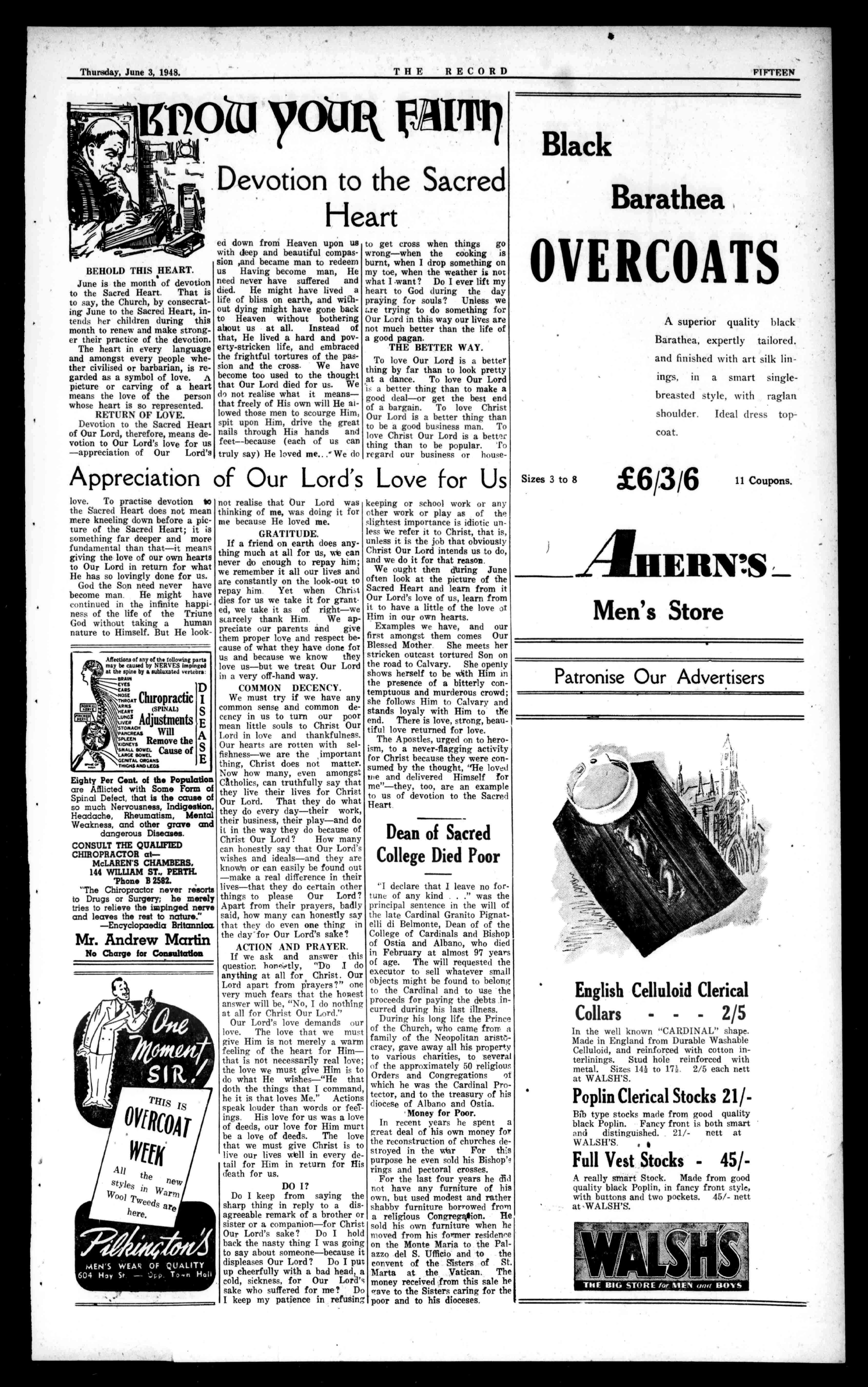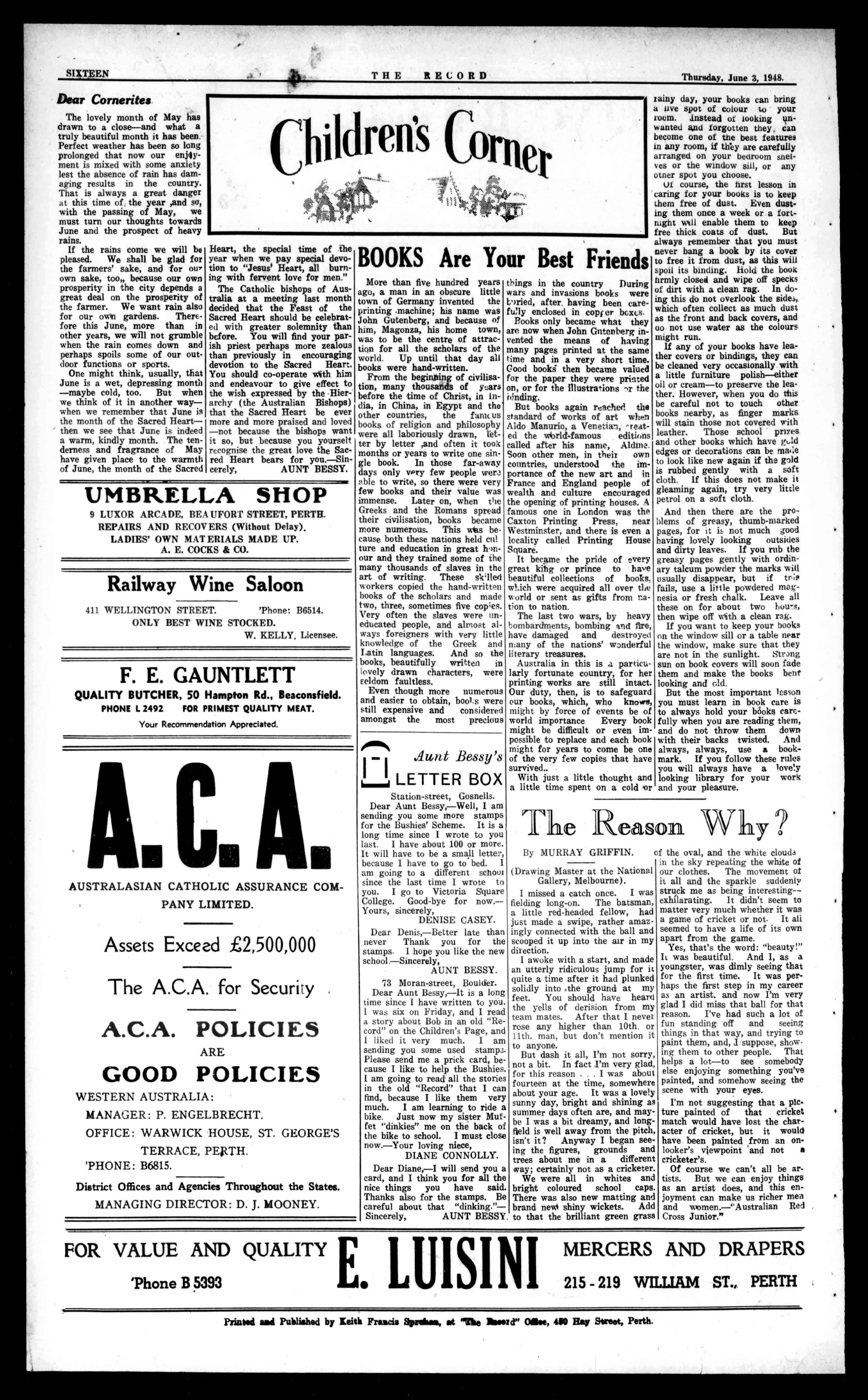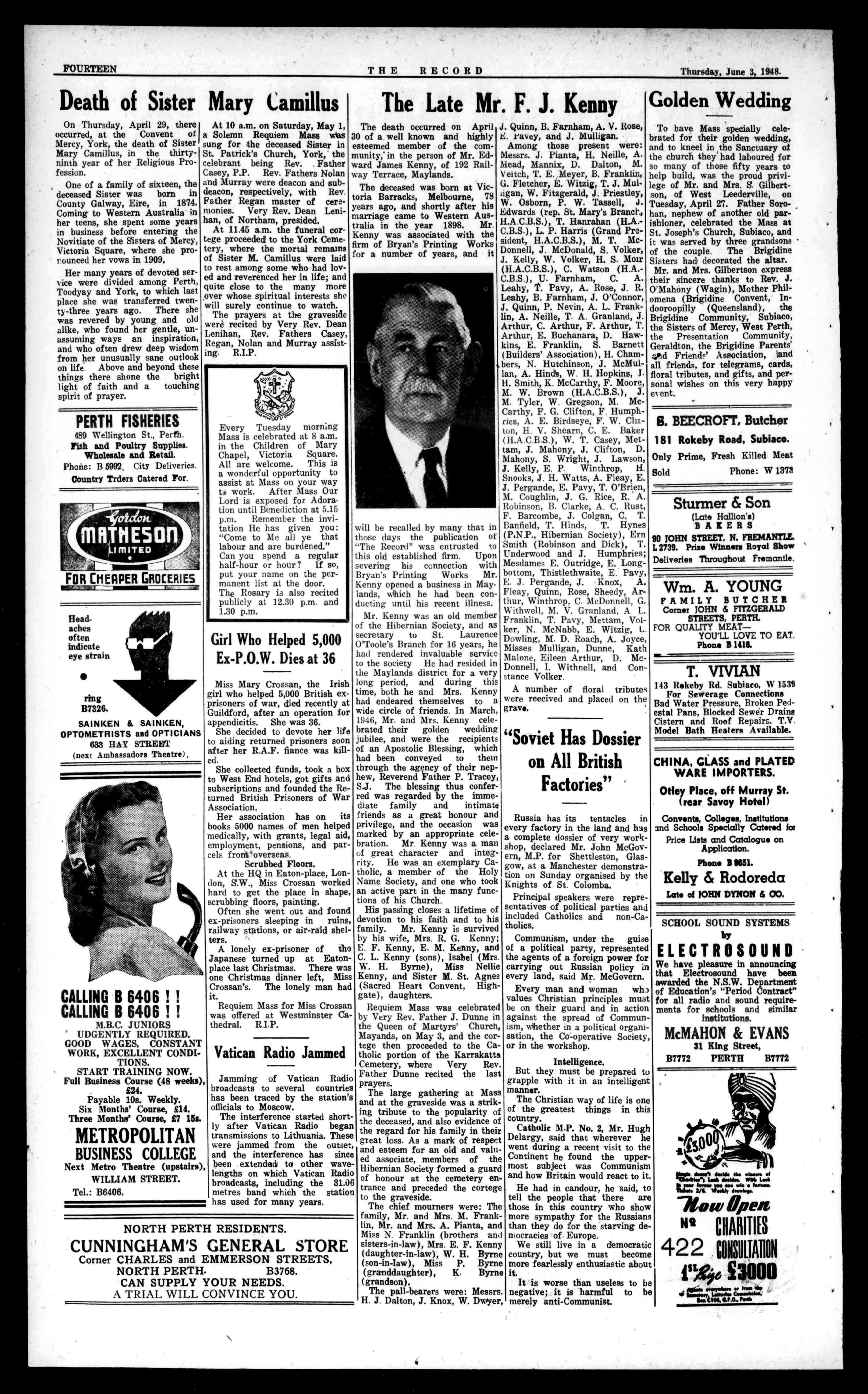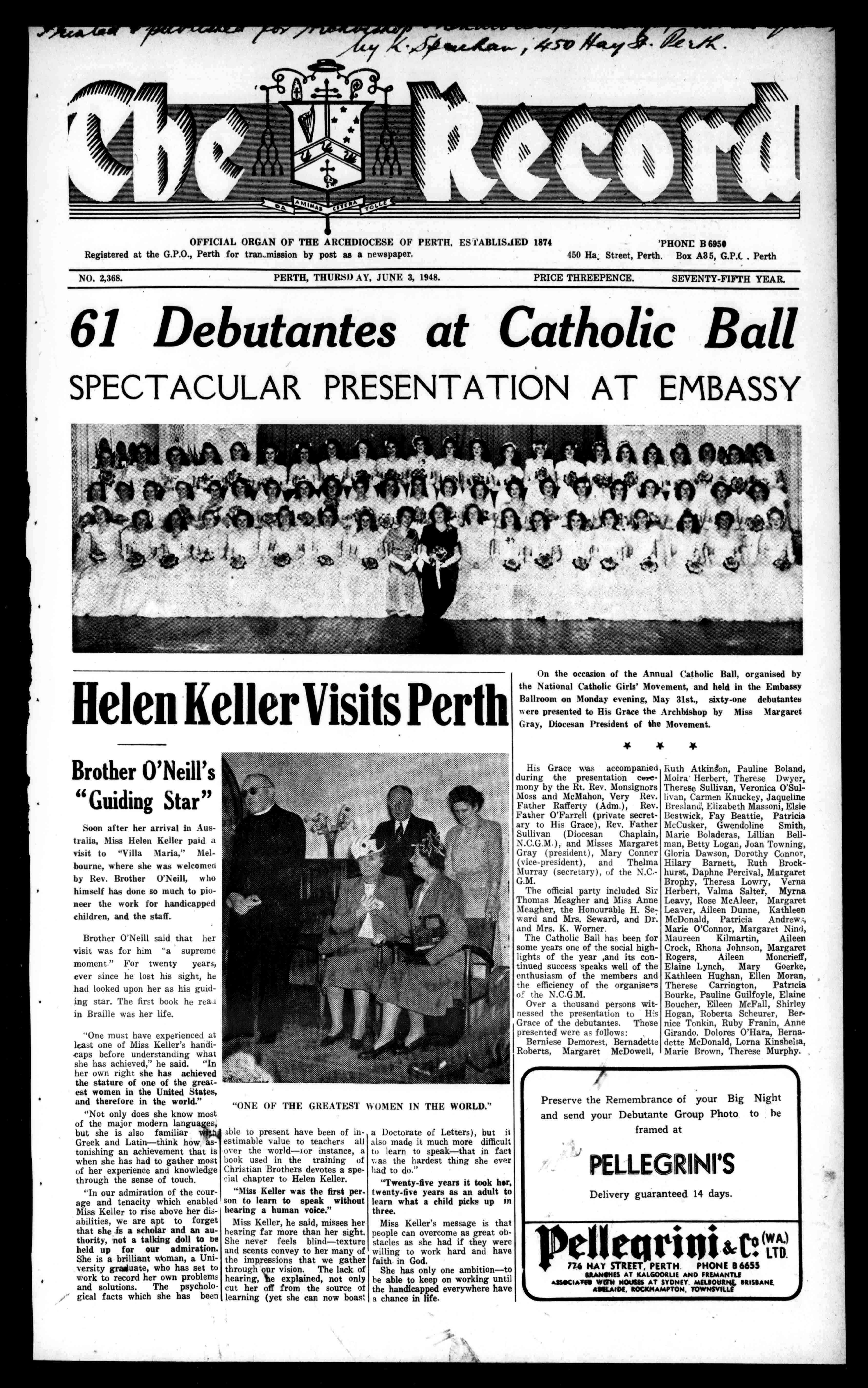 .01,5Jr OFFICIALORGANOFTHEARCHDIOCESEOFPERTH.ESCABLISJED1874 RegisteredattheG.P.O.,Perthfortran..missionbypostasanewspaper. 'PHONEB6950 450Ha,Street,Perth.BoxA35,G.P.(.Perth NO.2,368. PERTH,THURSOAY,JUNE3,1948. PRICETHREEPENCE. SEVENTY-FIFTHYEAR.