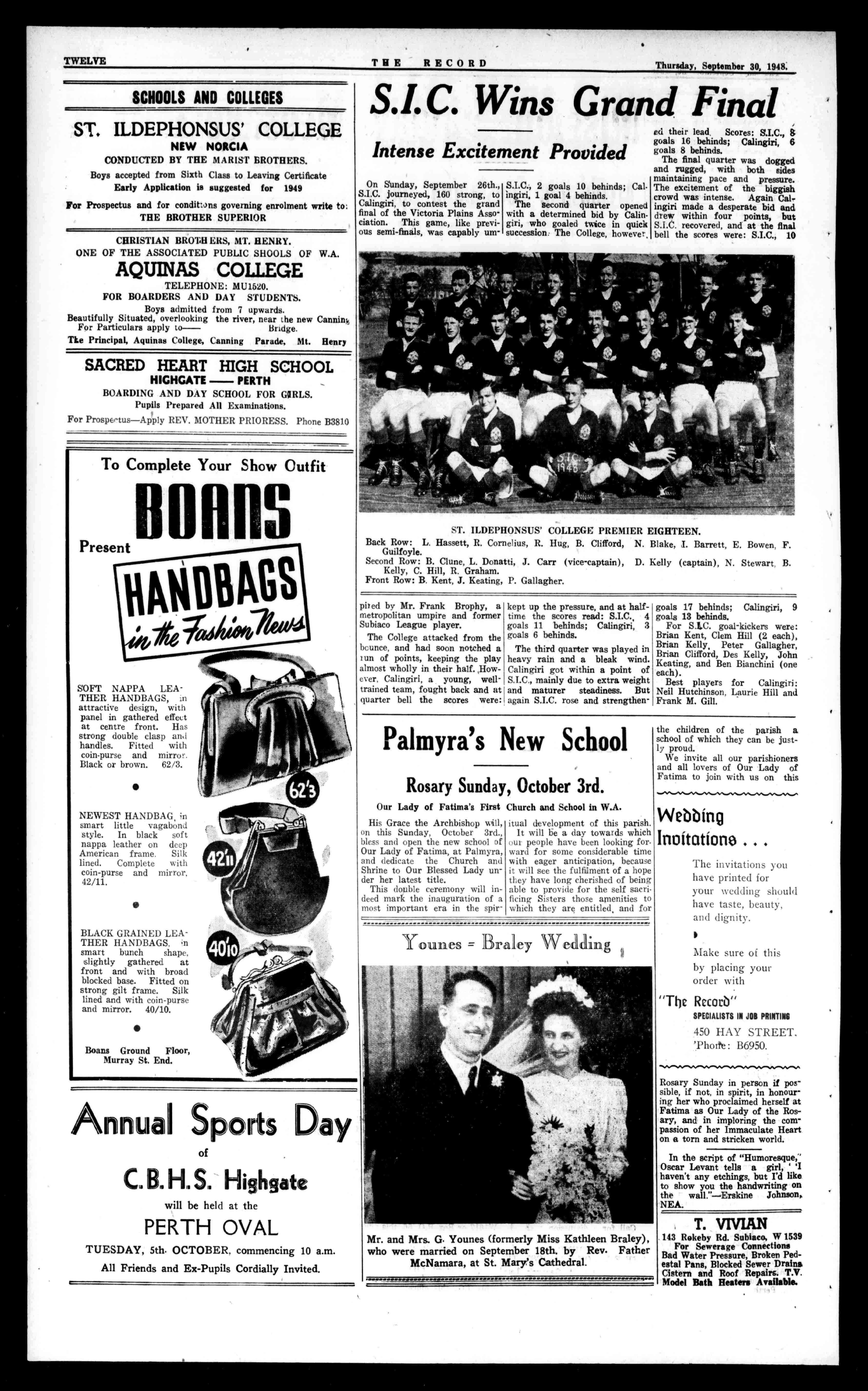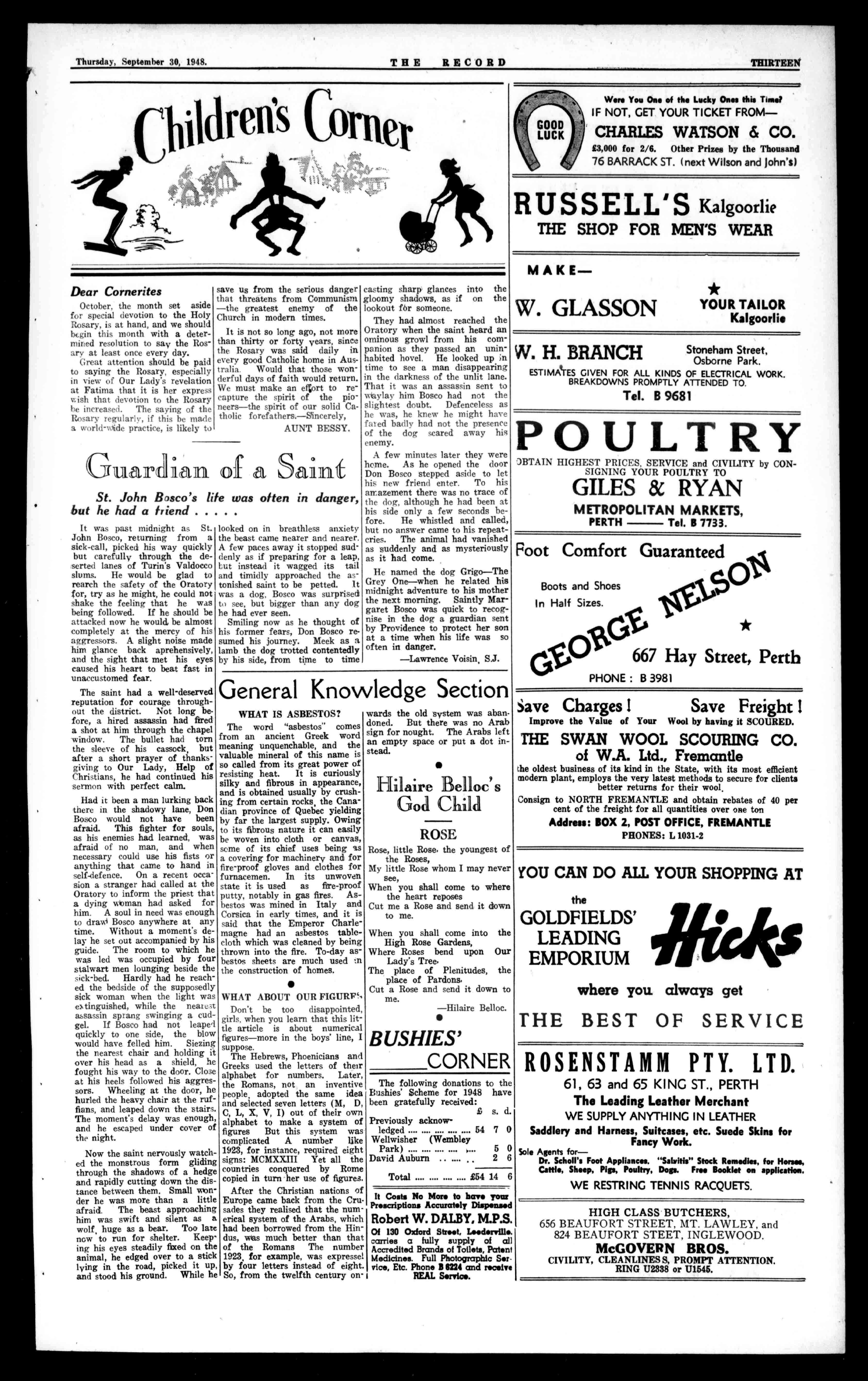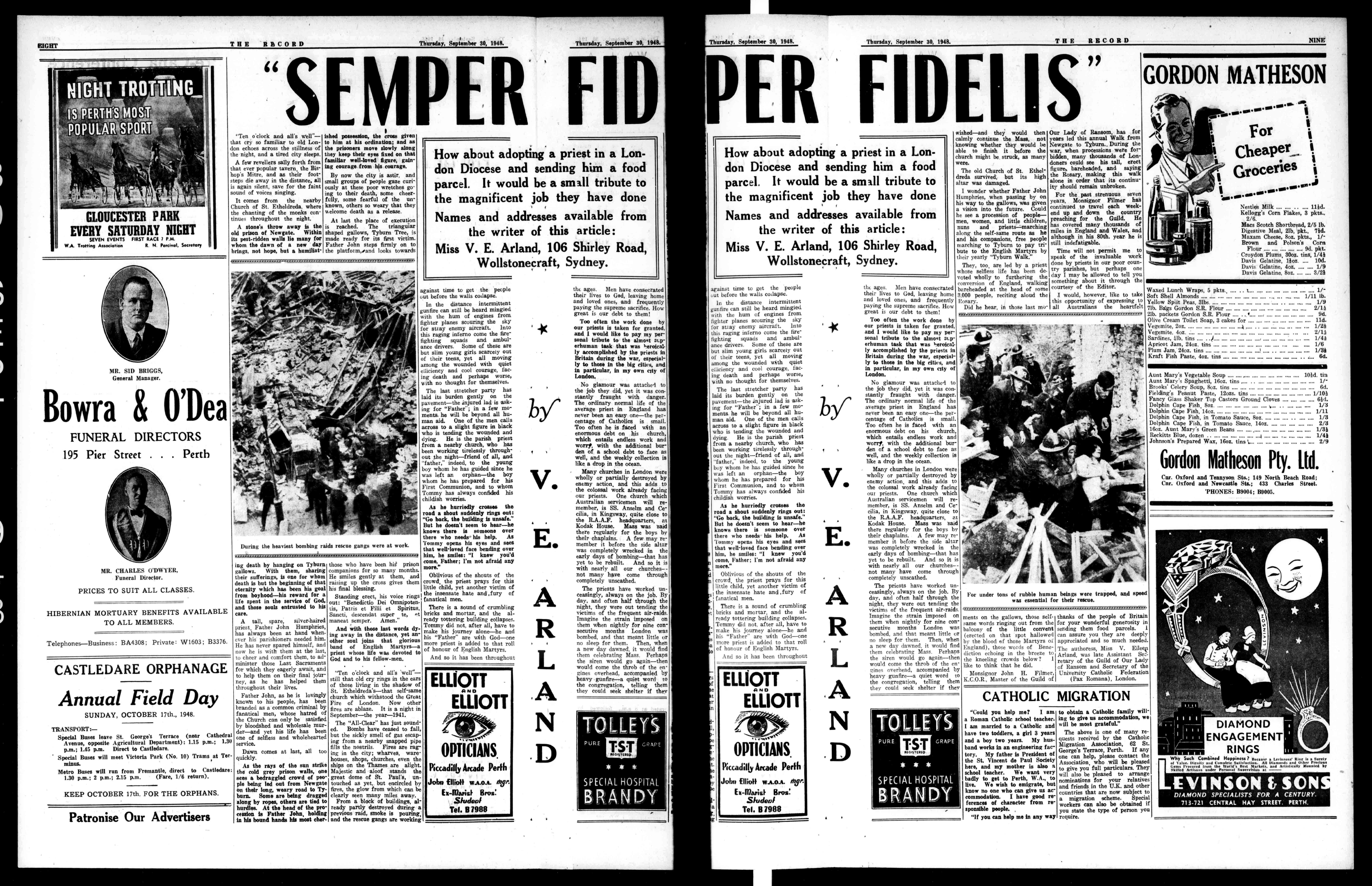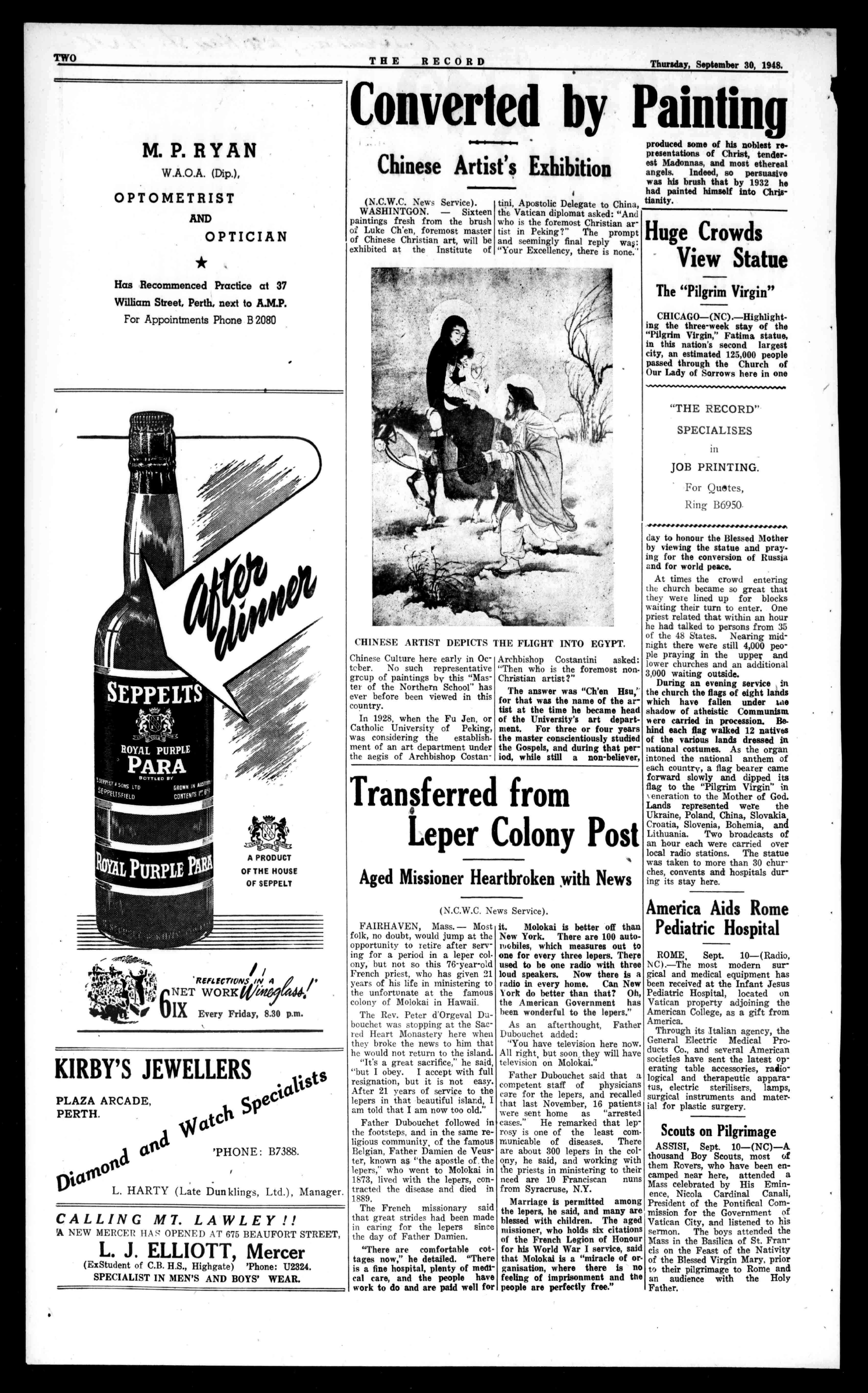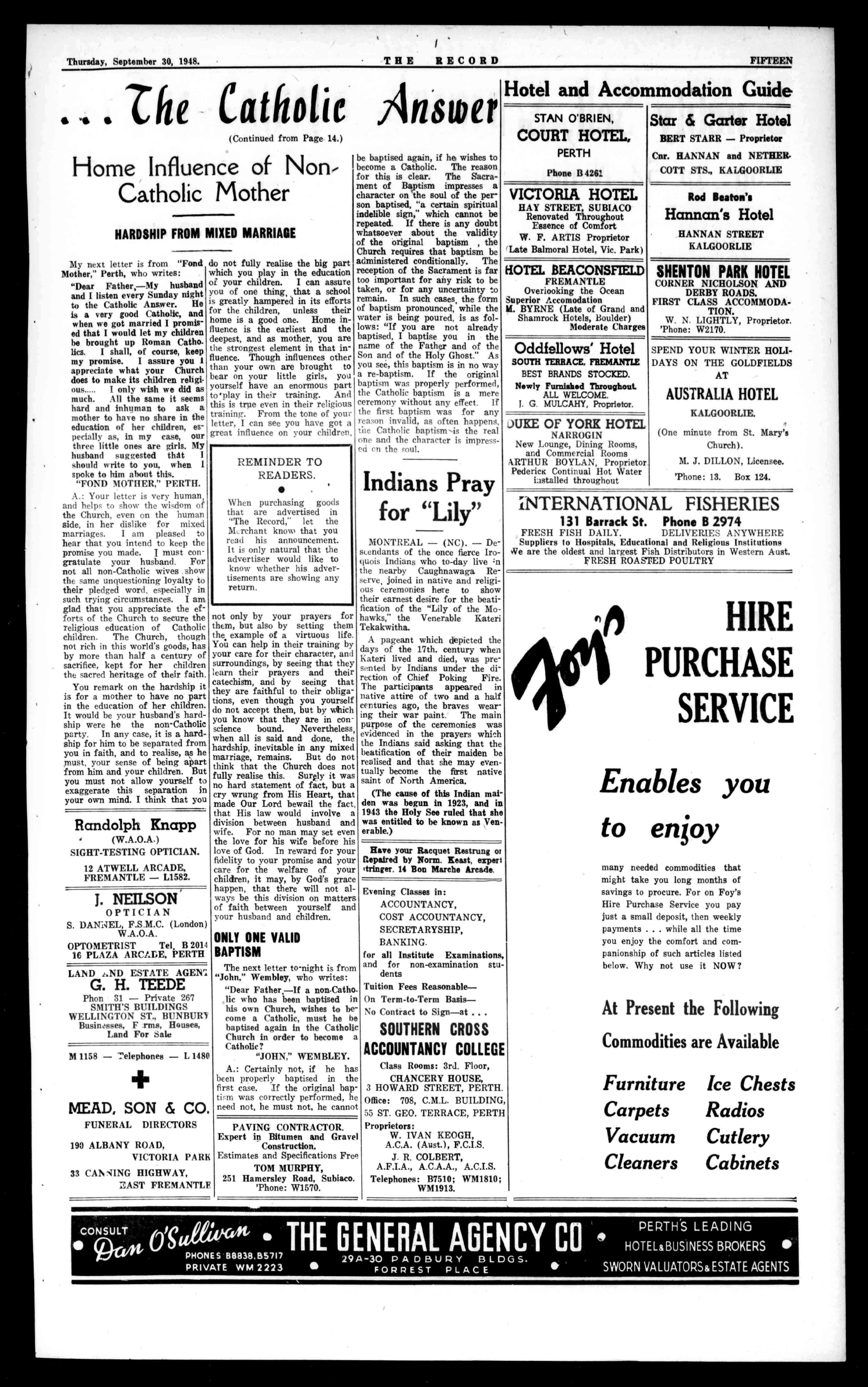 RegisteredattheG.P.O., Perth,fortransmissionby postasanewspaper. NO.2,385. 'Phone116950. 450HayStreet,Perth. BoxA35,G.P.O. RCCOT OfficialorganoftheArchdioceseofPerth. Established1874. Thursday,September30.1948. Seventy-FifthYear. PriceThreepence.
