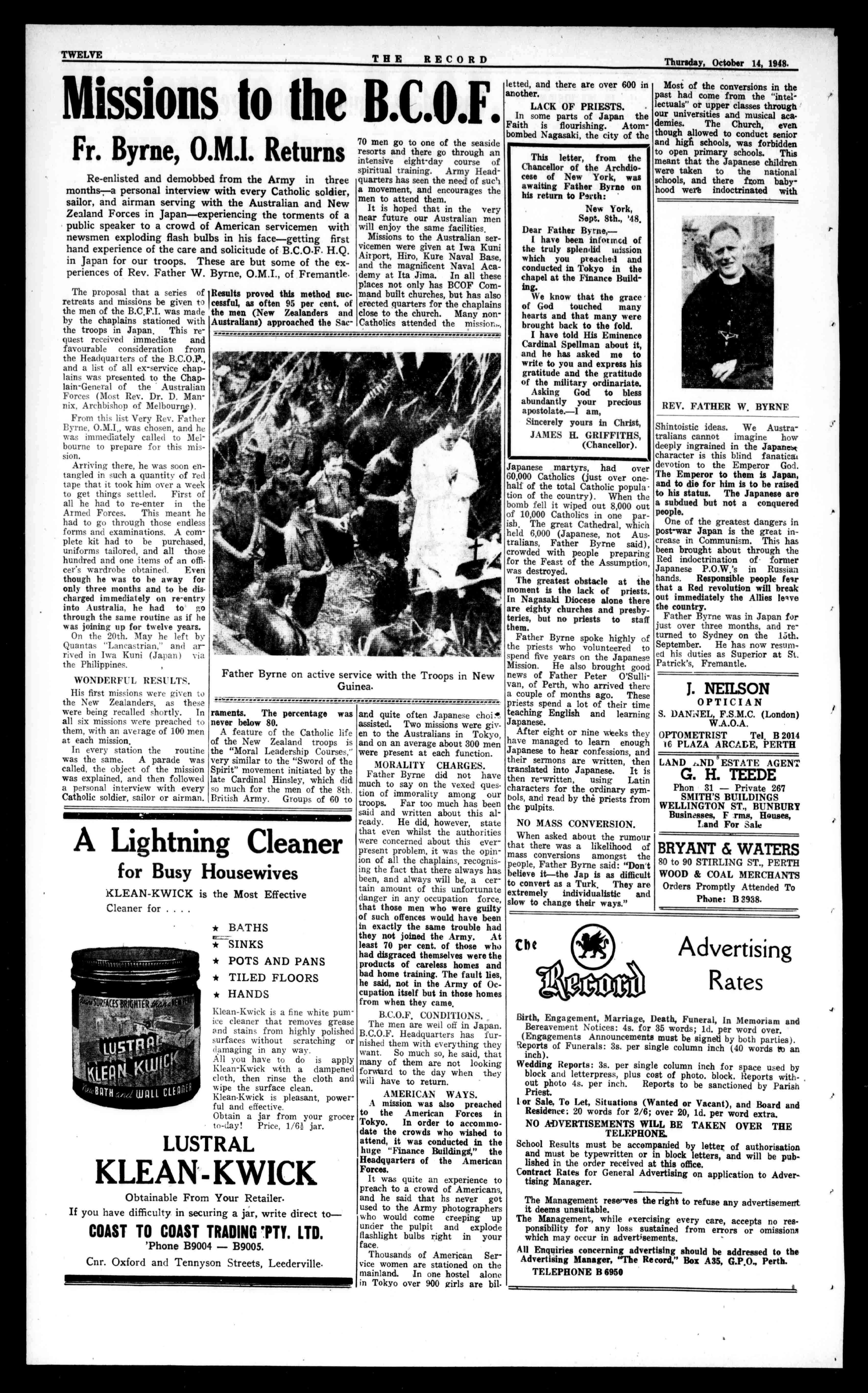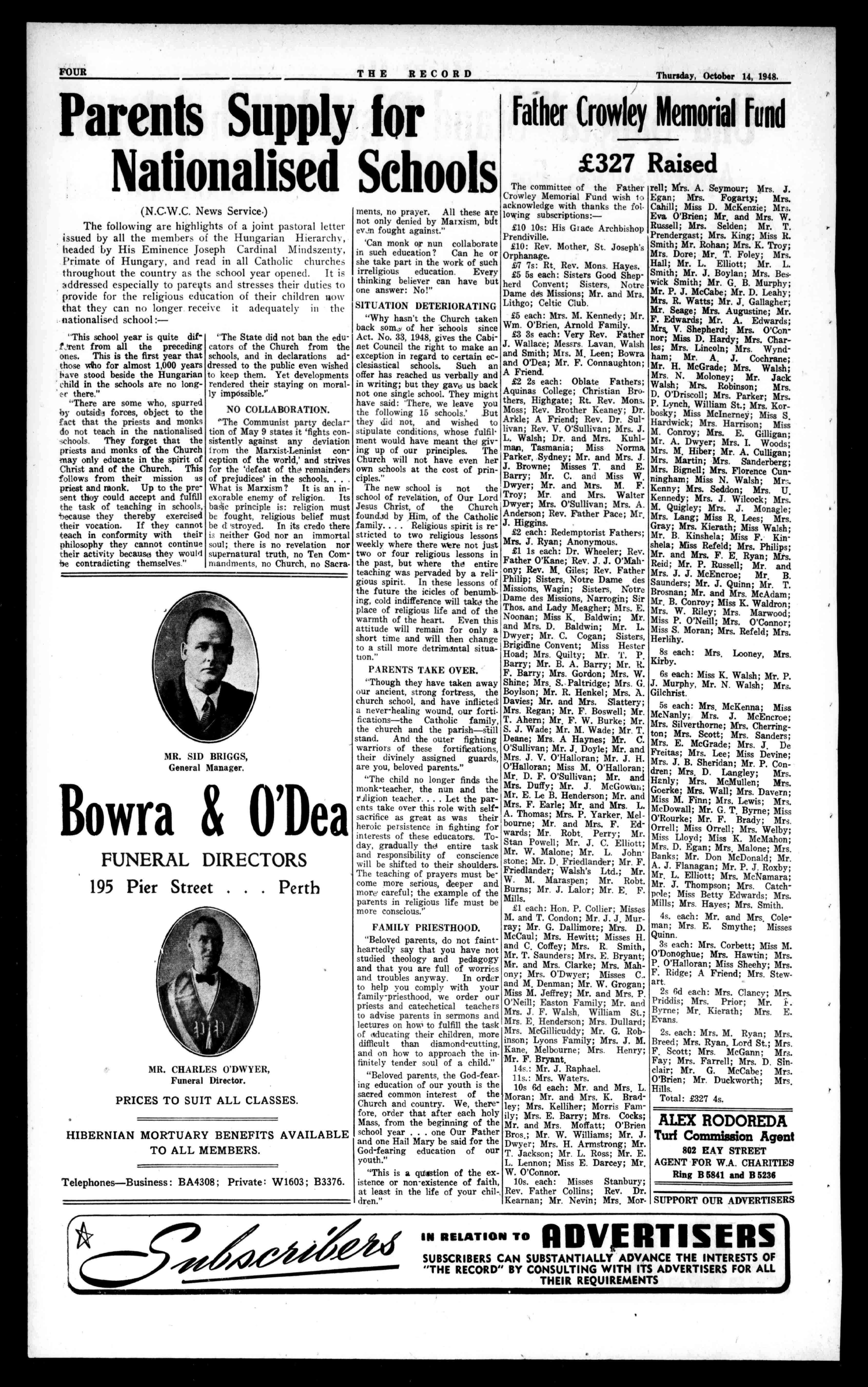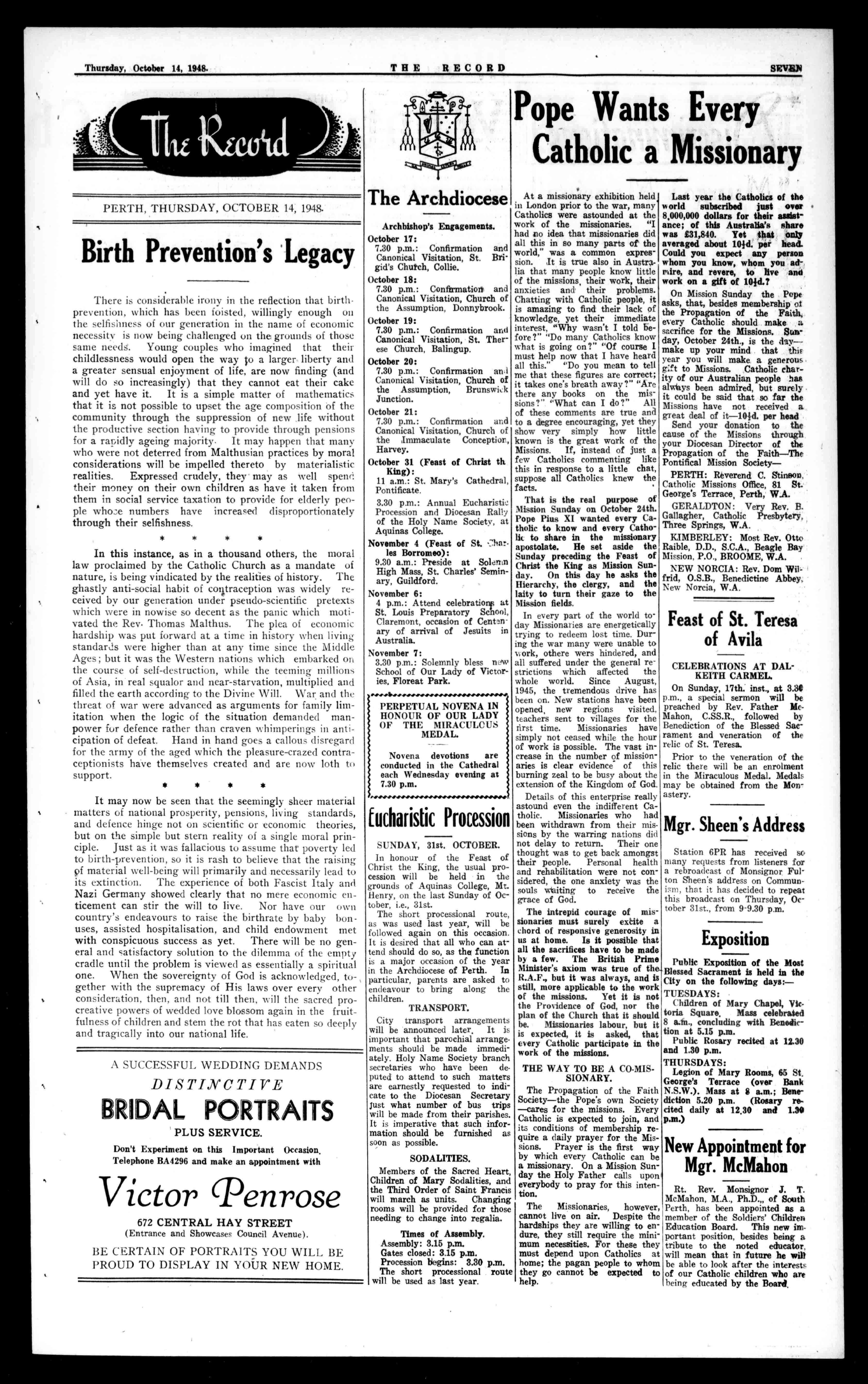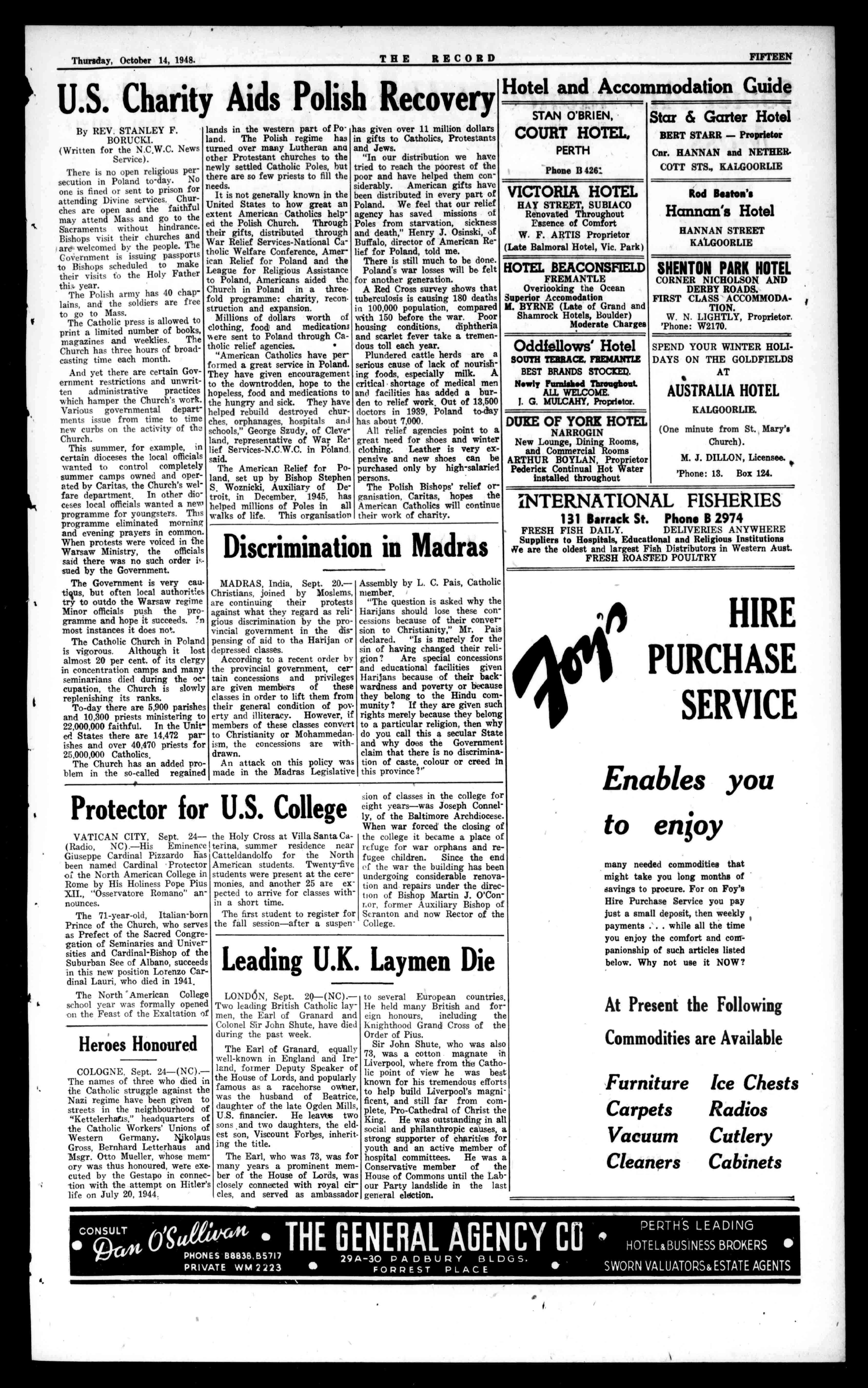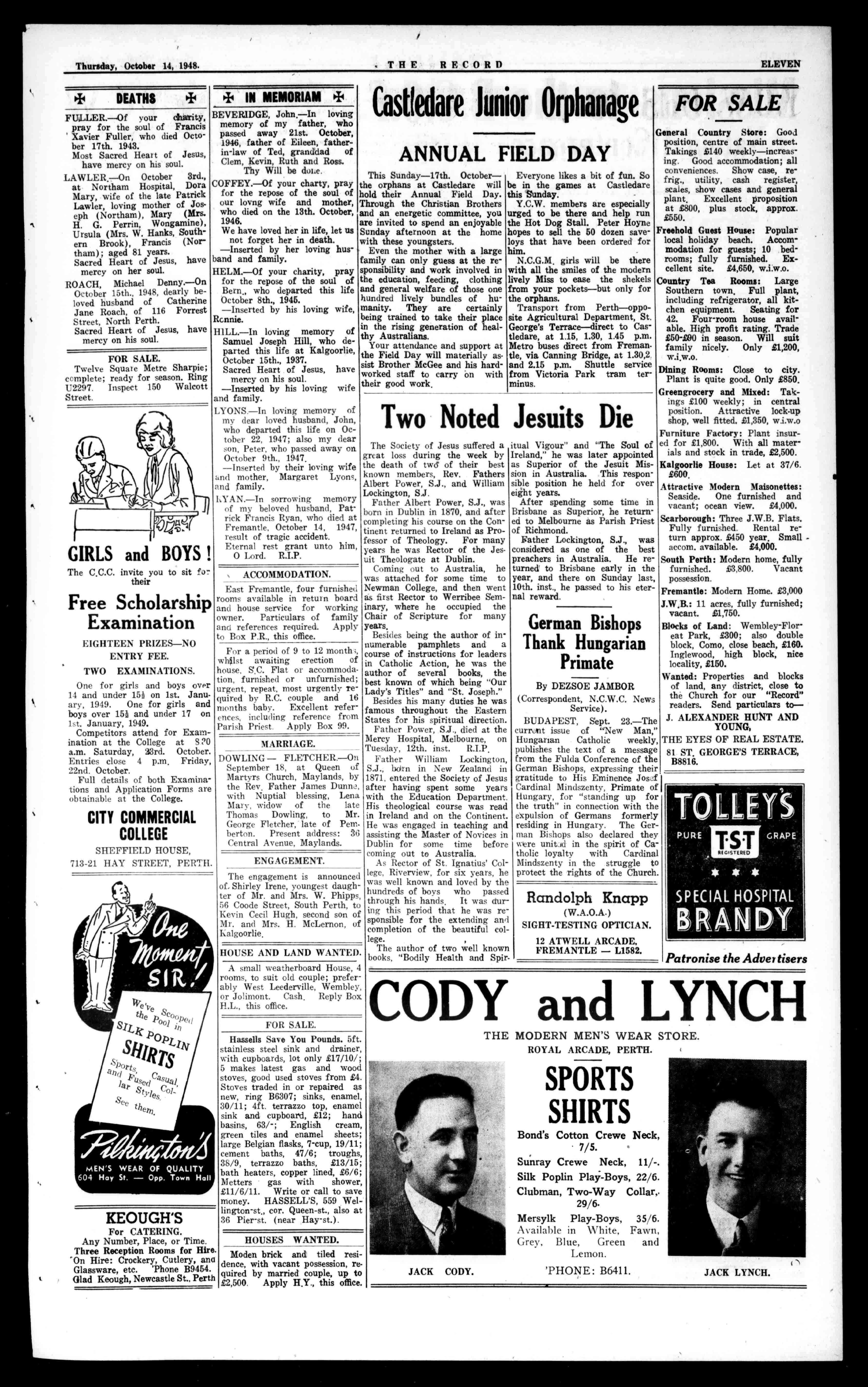1111.", d MI ...or or Ariifr /40IL totA RegisteredattheG.P.O., Perth,fortransmissionby postasanewspaper. NO.2,387. 'PhoneB6950. 450HayStreet,Perth. BoxA35,G.P.O. 1.11 ecot Ti4 OfficialorganoftheArchdioceseofPerth. Established1874. Thursday,October14,1948. Seventy-FifthYear.PriceThreepence,