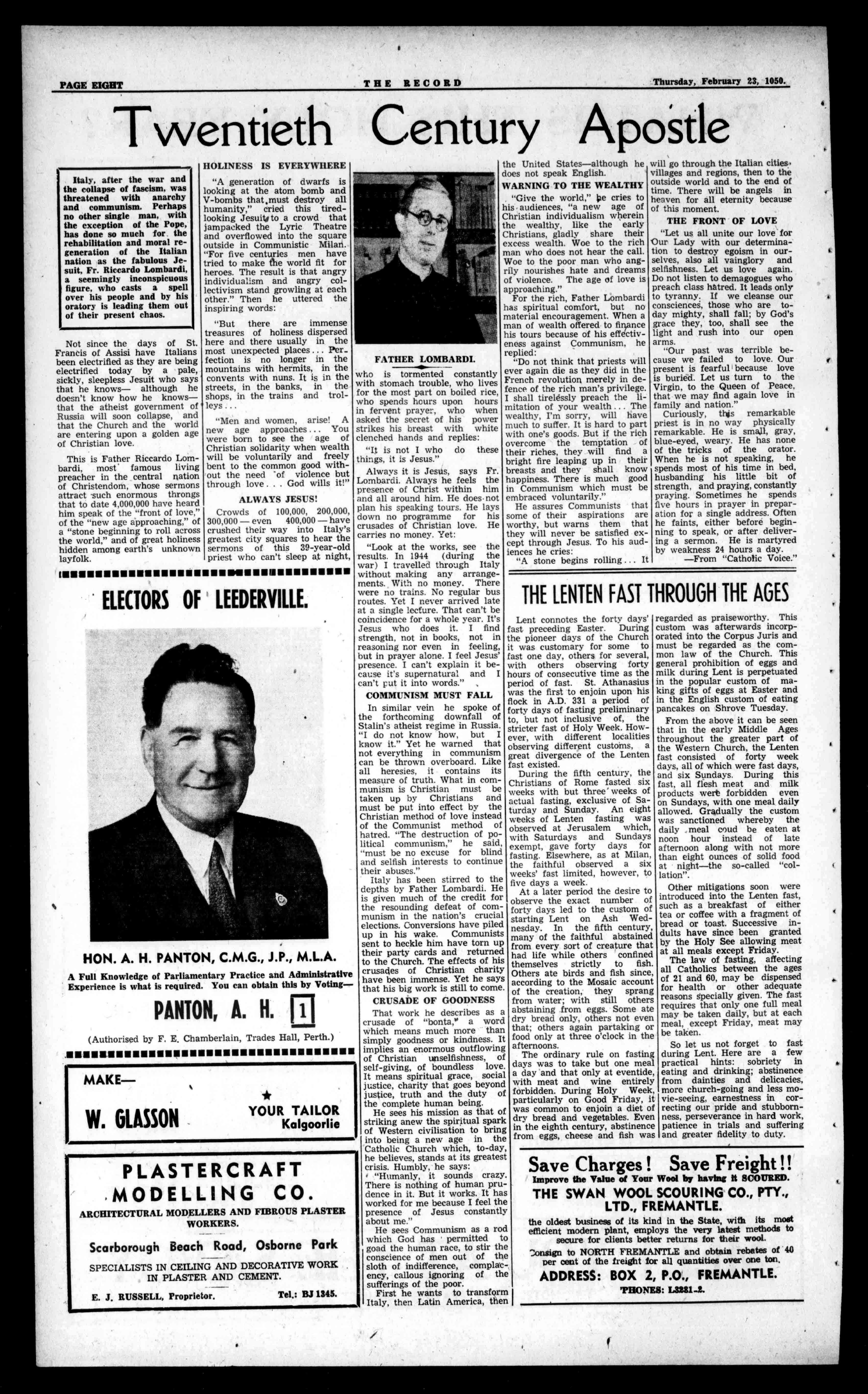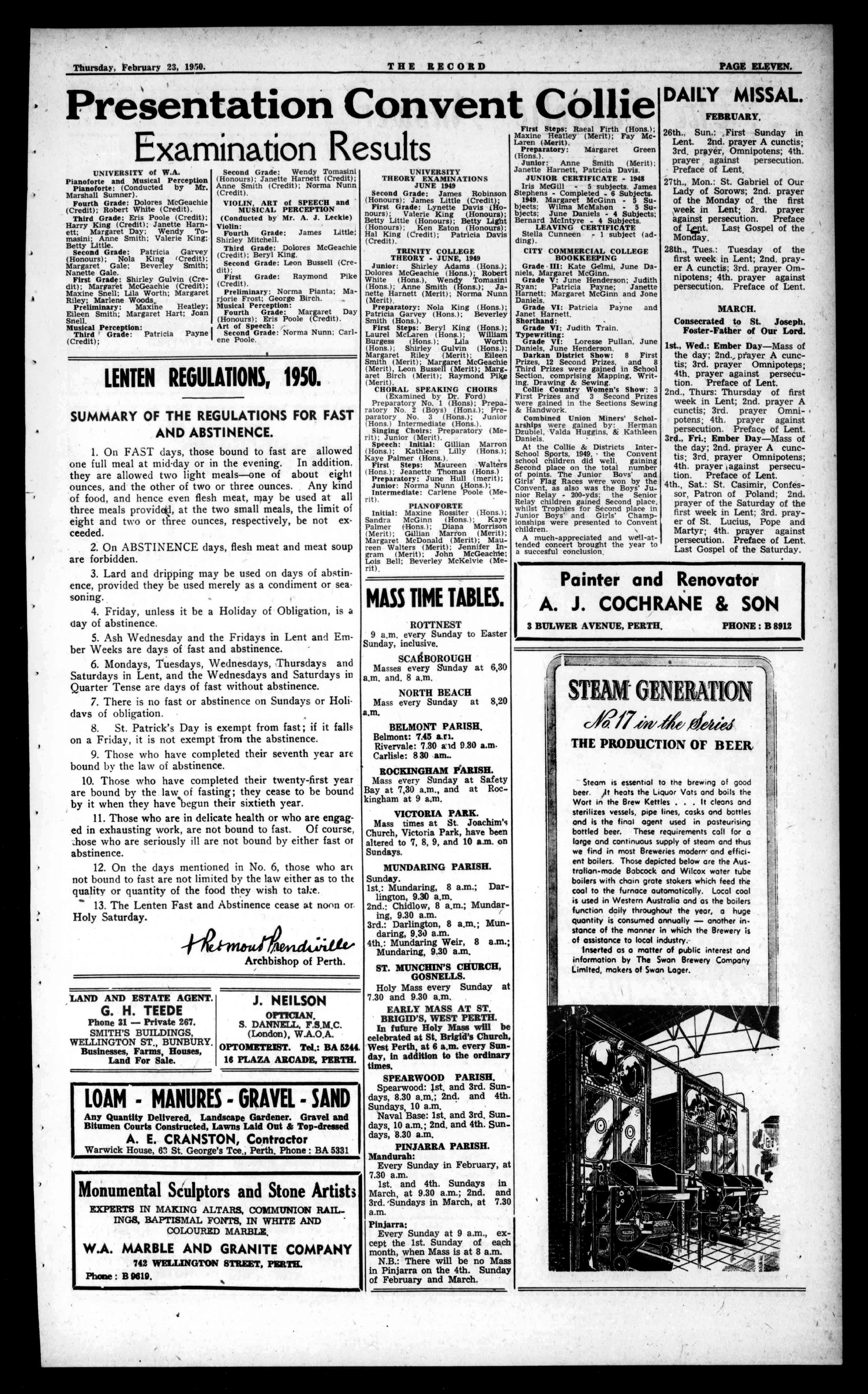 Thisyear'scourseofLentenSermonsinSt.Mary's Cathedralwillbepreached byVeryRev.W.Byrne, O.M.I.,SuperioroftheOblateFathers,Fremantle.The sermons,whicharepreached ateveningDevotionsonthe SundaysofLent,willcommenceontheFirstSunday ofLent,February26th.