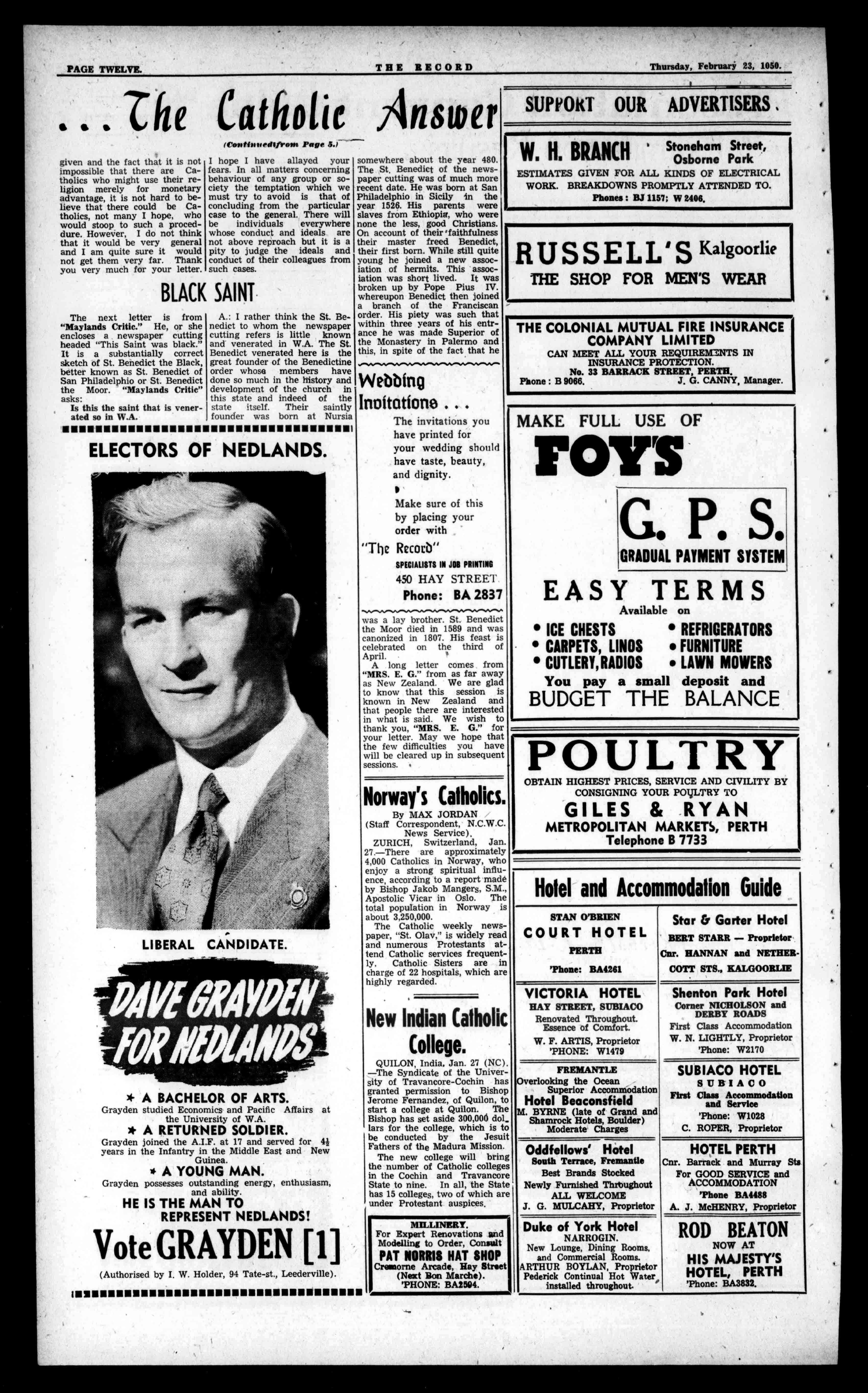 4.Heisayoungman,andthis isayoungman'sjob.Len Dickson'sprovenability,honestyandsincerityofpurpose willmakehimanidealmemberofourLegislature.He willwatchtheinterestsof ALLelectorsinFremantle.