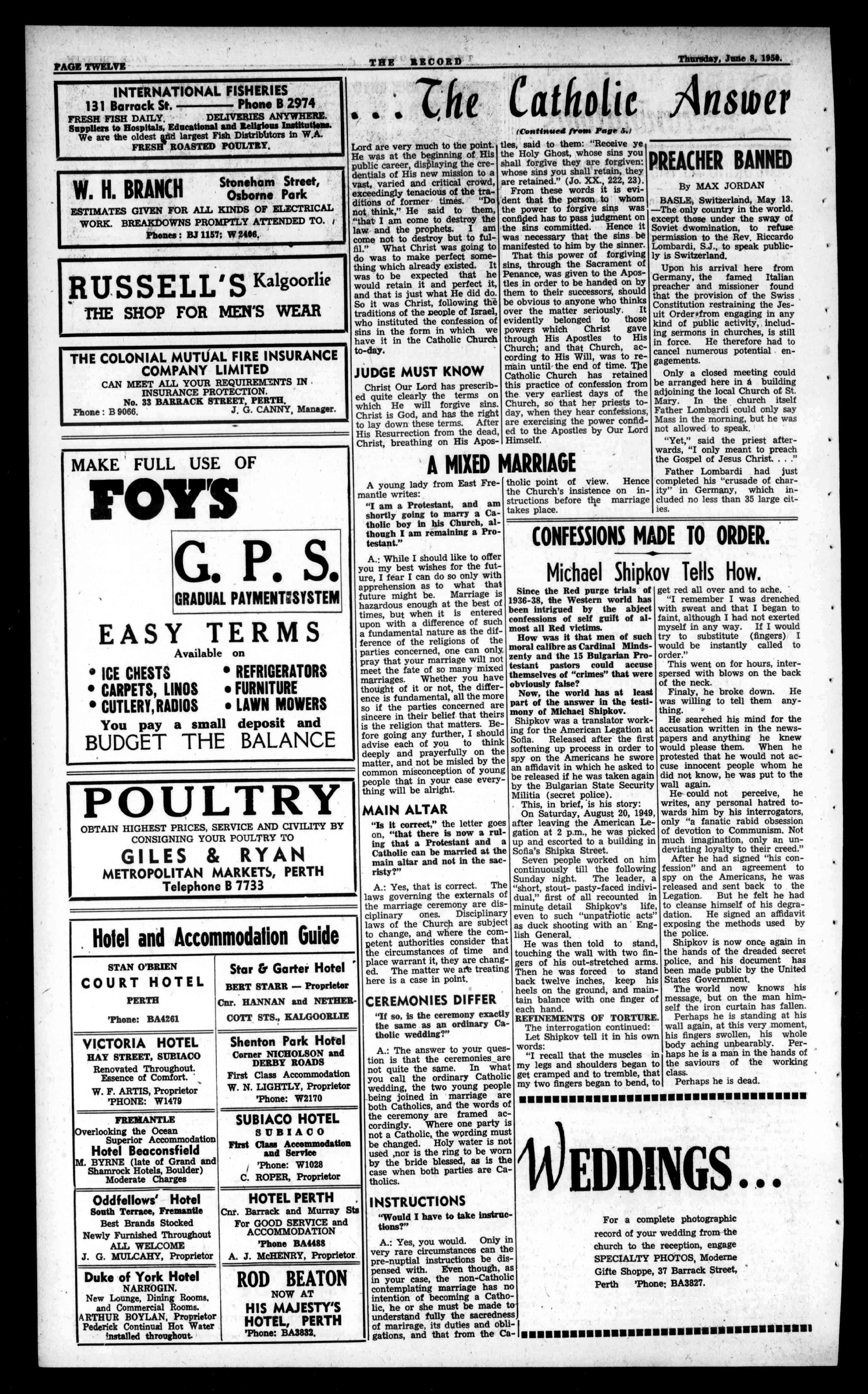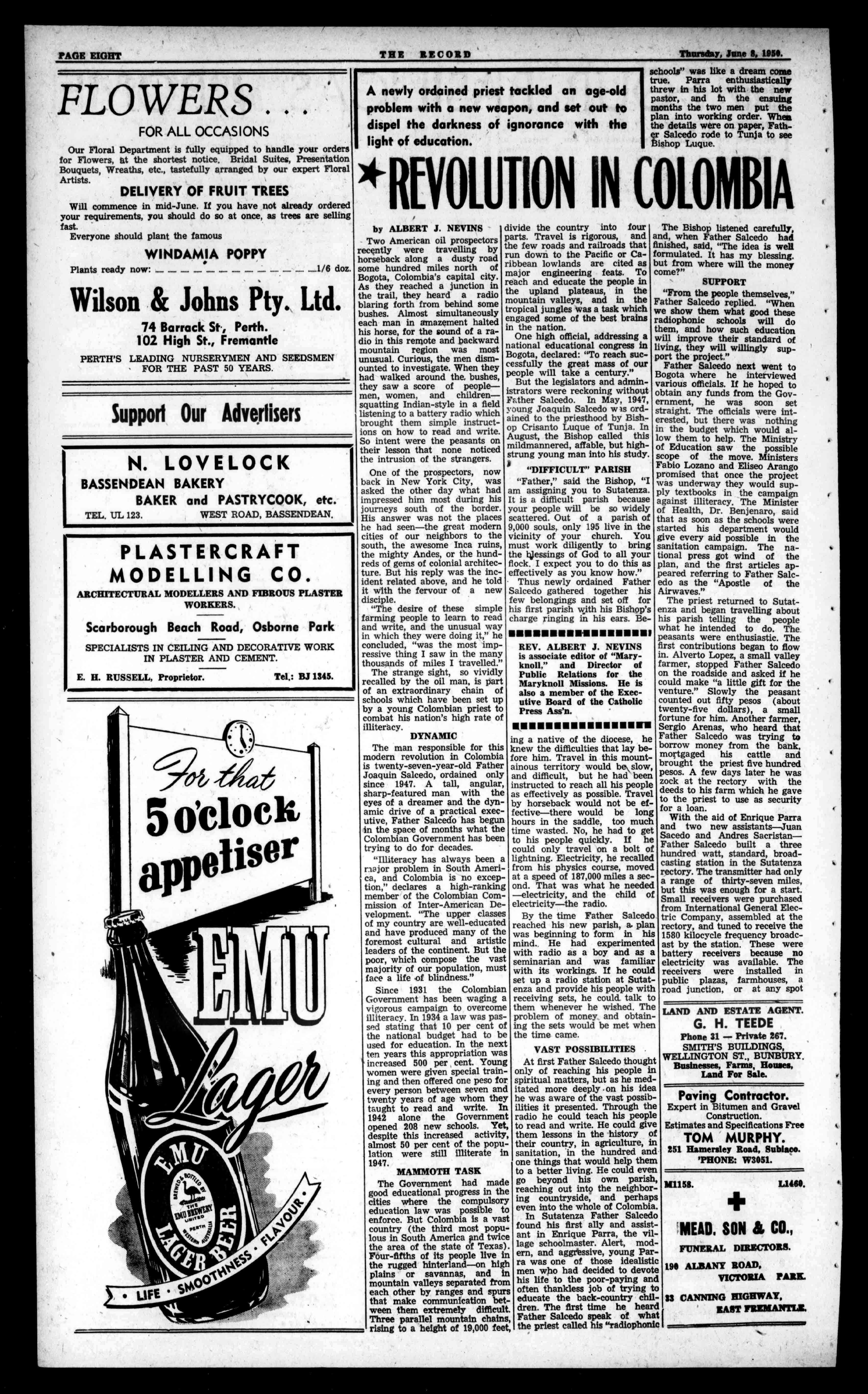 ,cgistertdettheG.P.O., Perth, transmissior.by postaFanewspaper. NO.2,449. PHCitI 137 (2Lines) 450Hay.reet,Perth. BoxR1279,'F3..-,th. e 1111eCot akirit0-4111 Arf,mer ? OfficialorganoftheArehdioceseofPerth. Established1874. THURSDAY, JUNE8,1950 Seventy-sixthYear. PriceThreepence,
