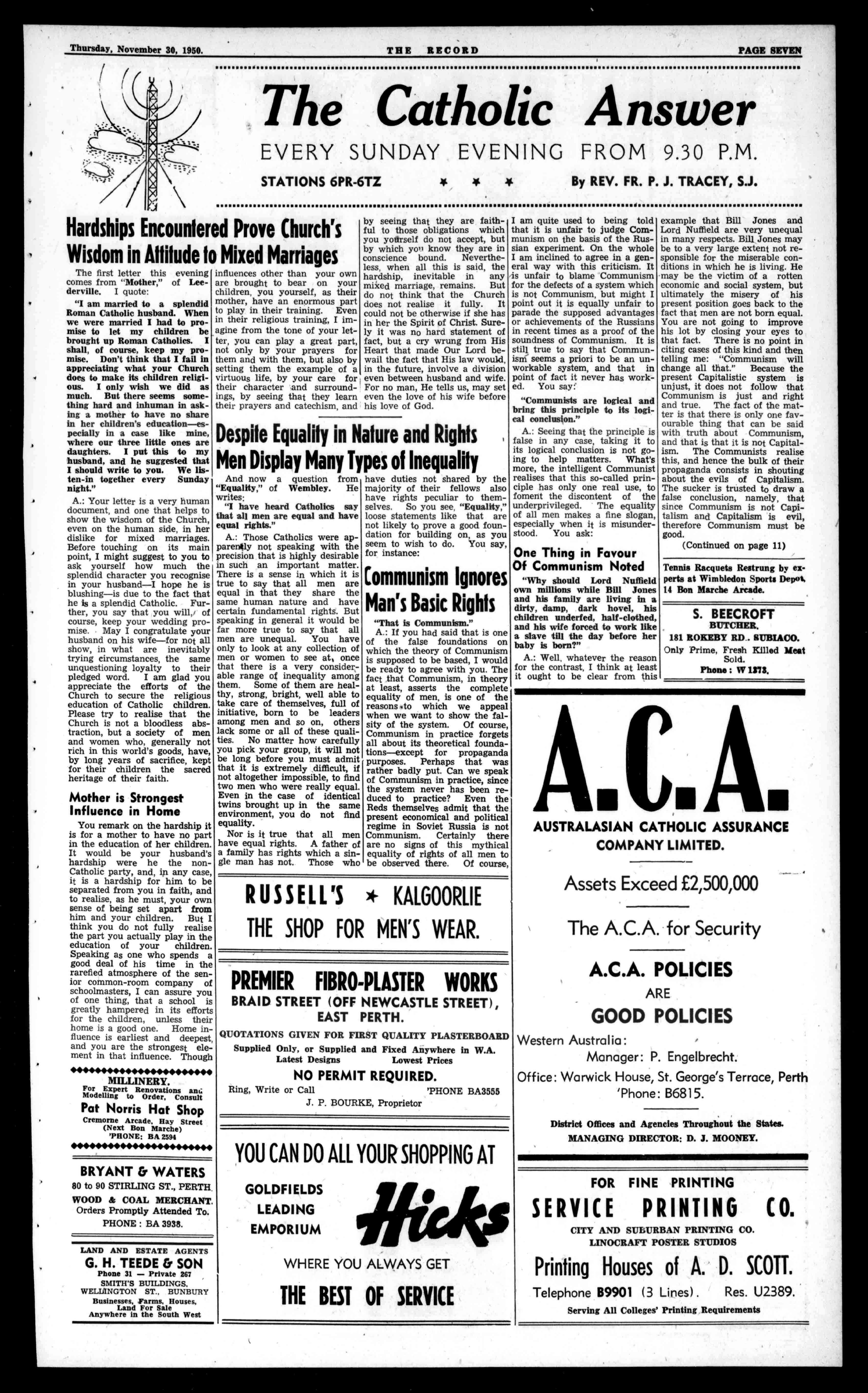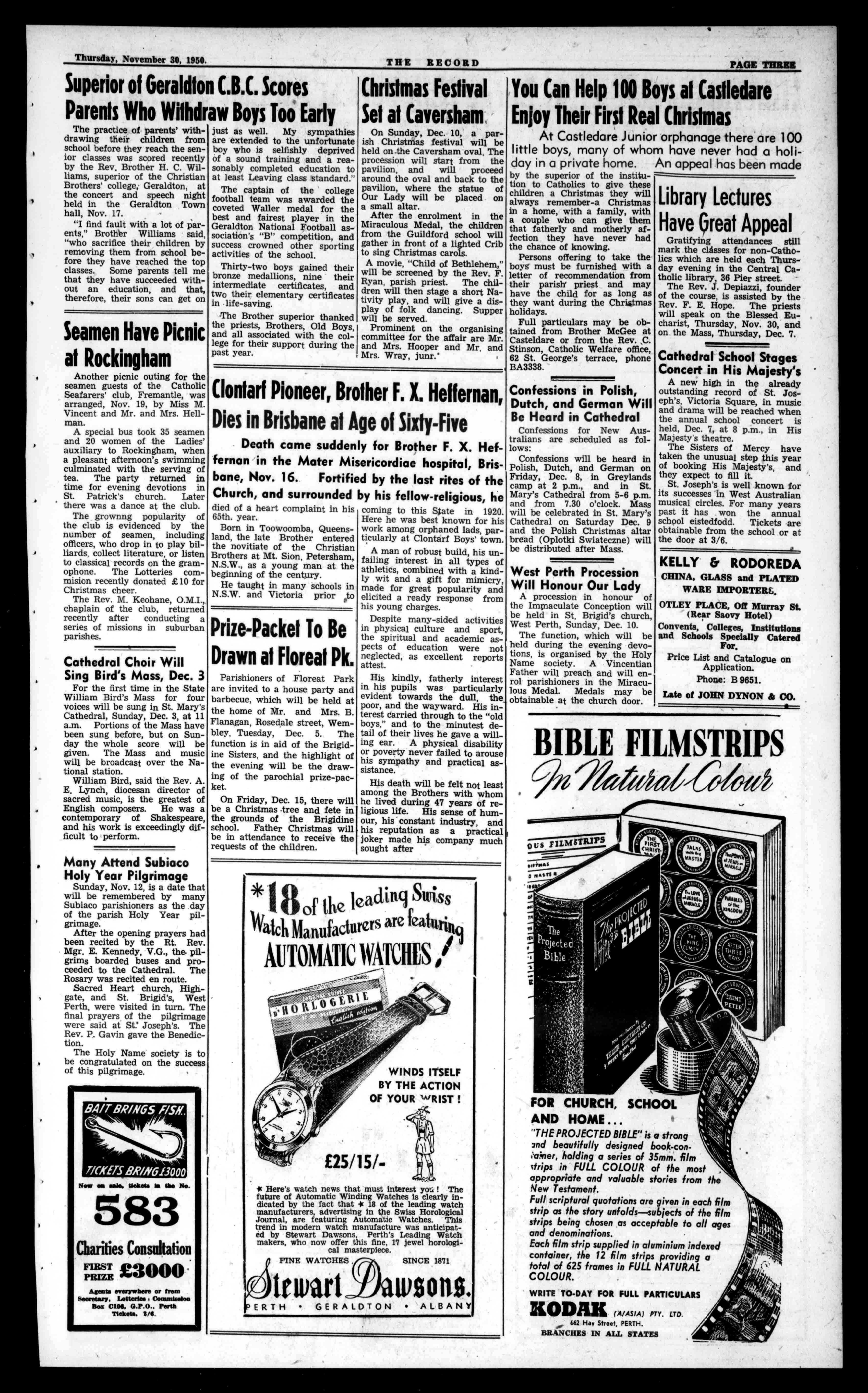 ;',0711Prorifr-' eeRegisteredattheG.P.O., Perth,fortransmissionby postasanewspaper. NO.2,474. PHONEBA2837 (2Lines) 450HayStreet,Perth. BoxR1279,G.P.O.,Perth.1.11CCCOT OfficialorganoftheArchNOVEMBER30,1950 Seventy-SeventhYear dioceseofPerth. Established1874. THURSDAY, PriceFonrpence.