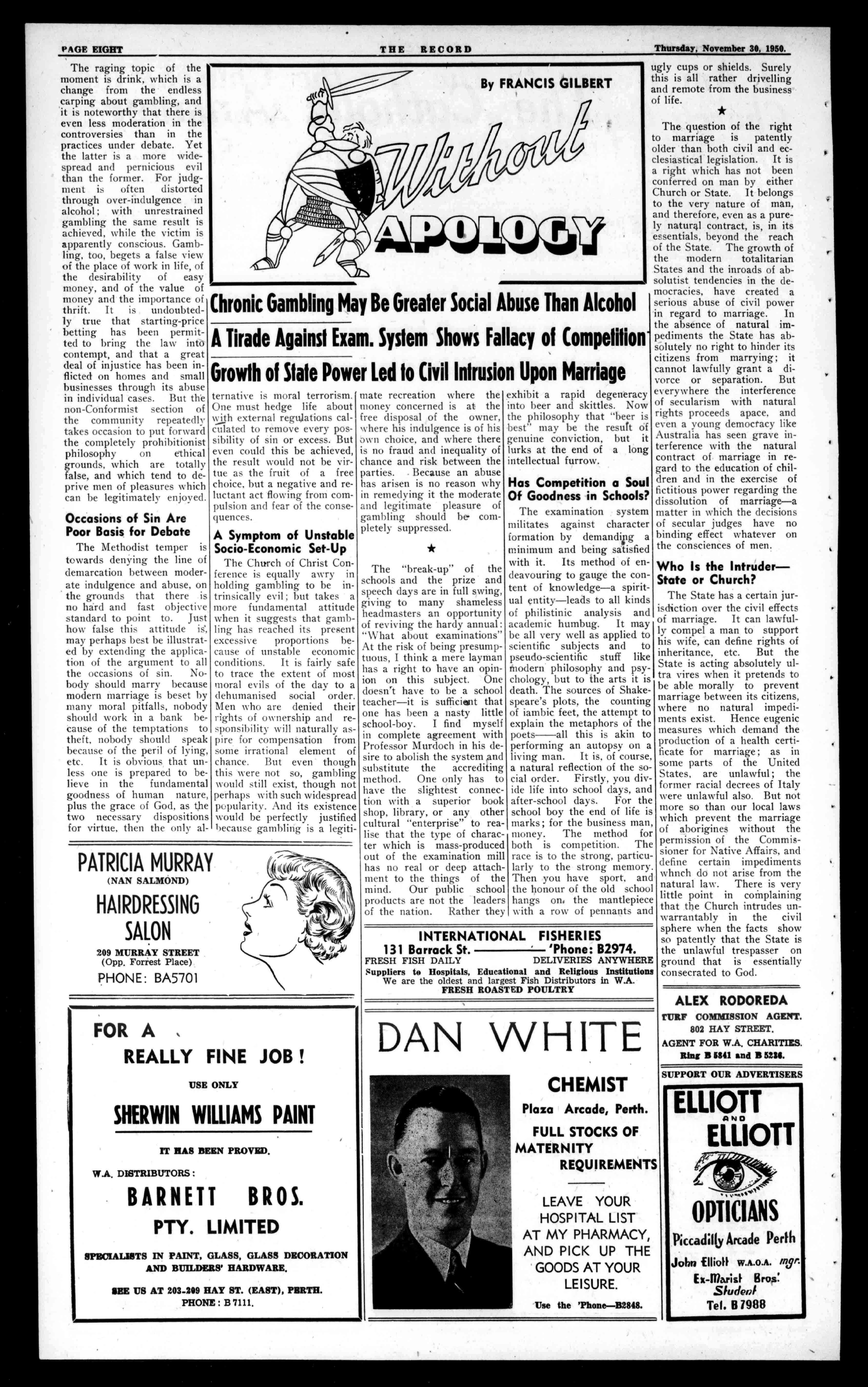 111Pr "'dr 779provor. 'err,4," .11'41r" RegisteredattheG.P.O., Perth,fortransmissionby postasanewspaper. NO.2,474. PHONEBA2837 (2Lines) 450HayStreet,Perth. BoxR1279,G.P.O.,Perth. VPr,,wW /4-191k.C.C.0,4 OfficialorganoftheArchdioceseofPerth. Established1874. CCOTTHURSDAY, NOVEMBER30,1950 St.entN-SeventhYear PriceFourpence.