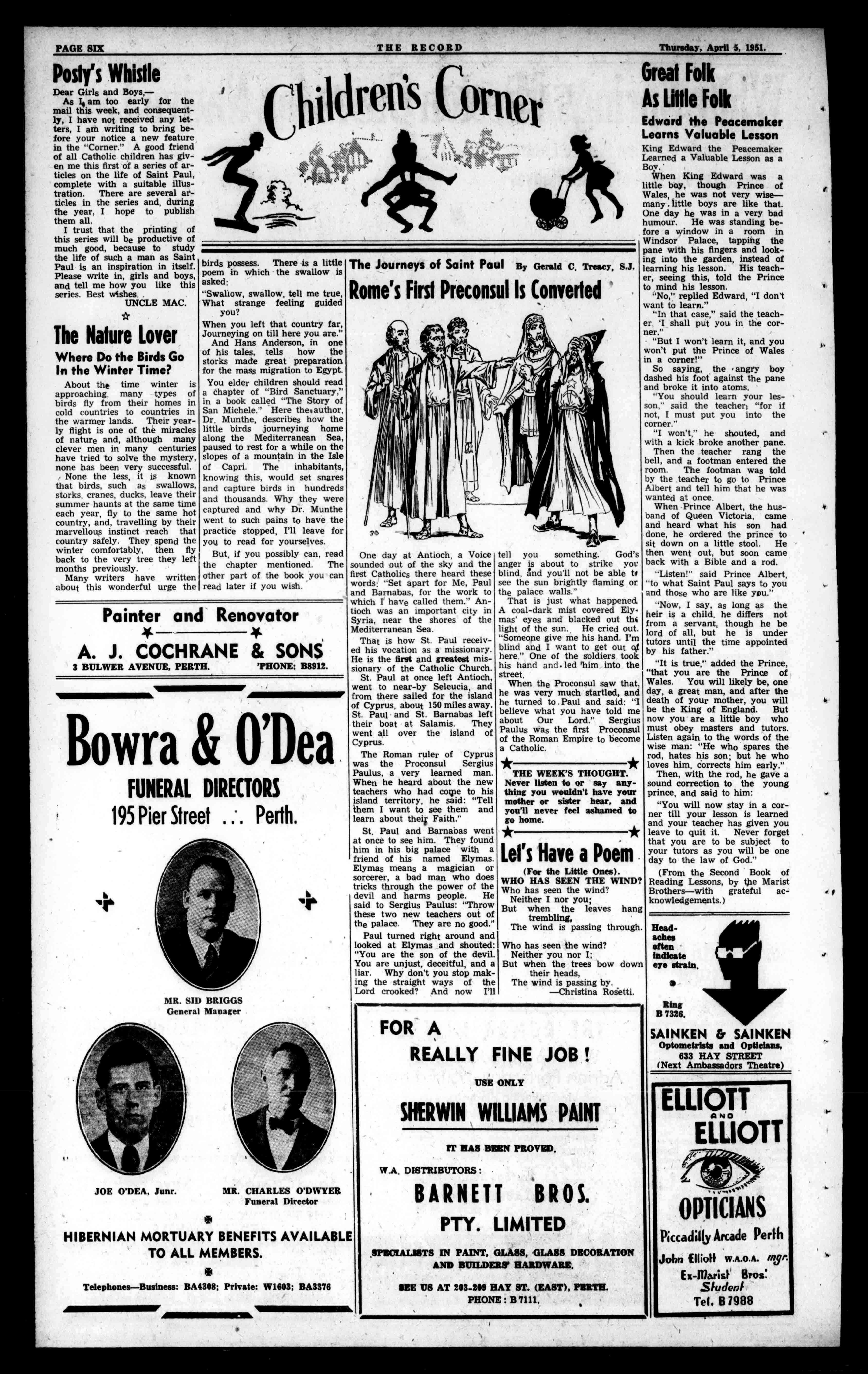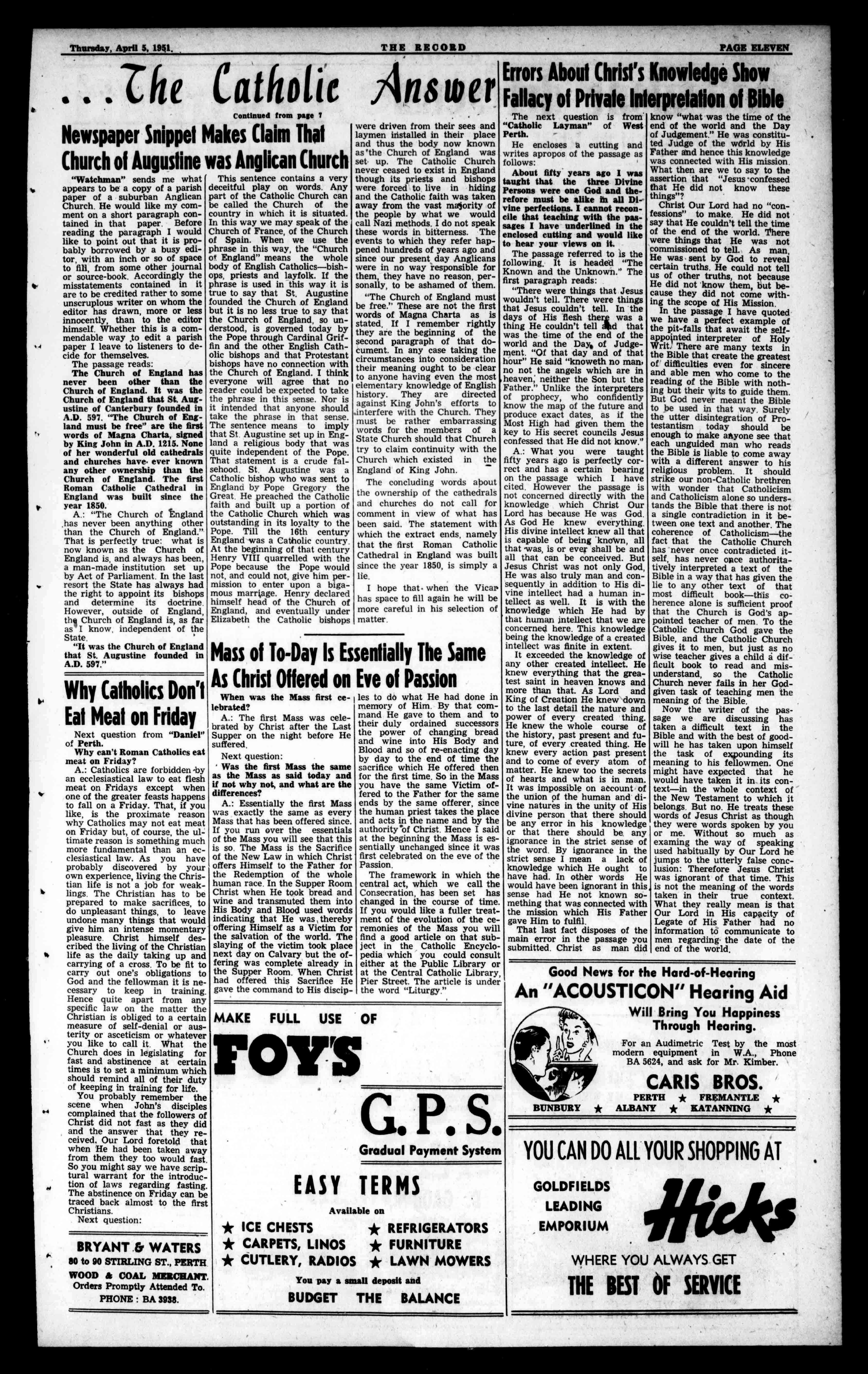 Thursday,April5,1951. THERECORD PAPEPIFTEEN IRISHNEWSCOLUMNS