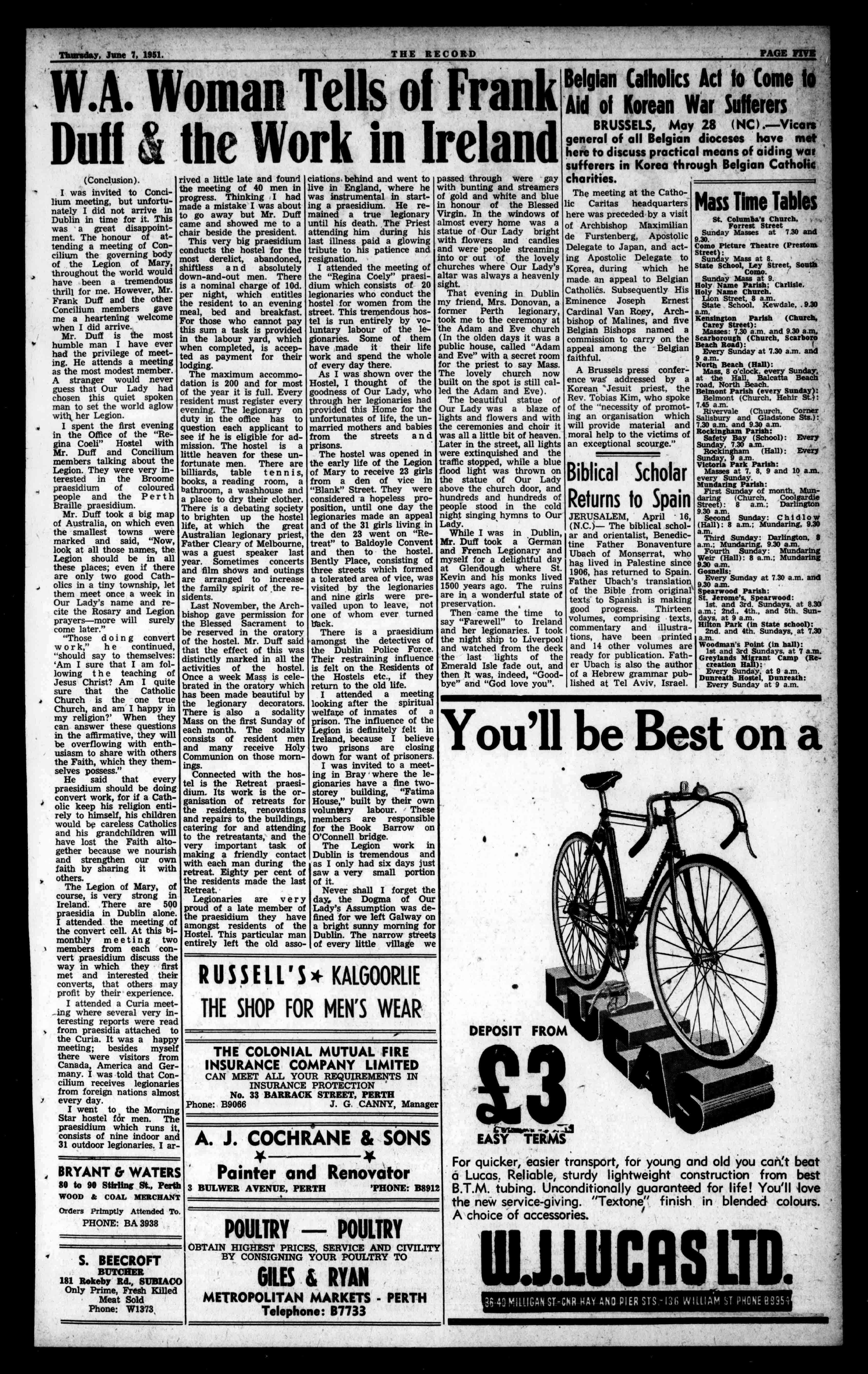 Inpursuanceofitspolicytoprovide forthespiritualneedsofvariousnational groupsbyobtainingtheservicesofapriest oftheirownrace,theCatholicmigration committeewelcomedthearrivalonJuneof theRev.A.PietersC.SS.R.whowillminister totheDutchcommunitiesinW.A.