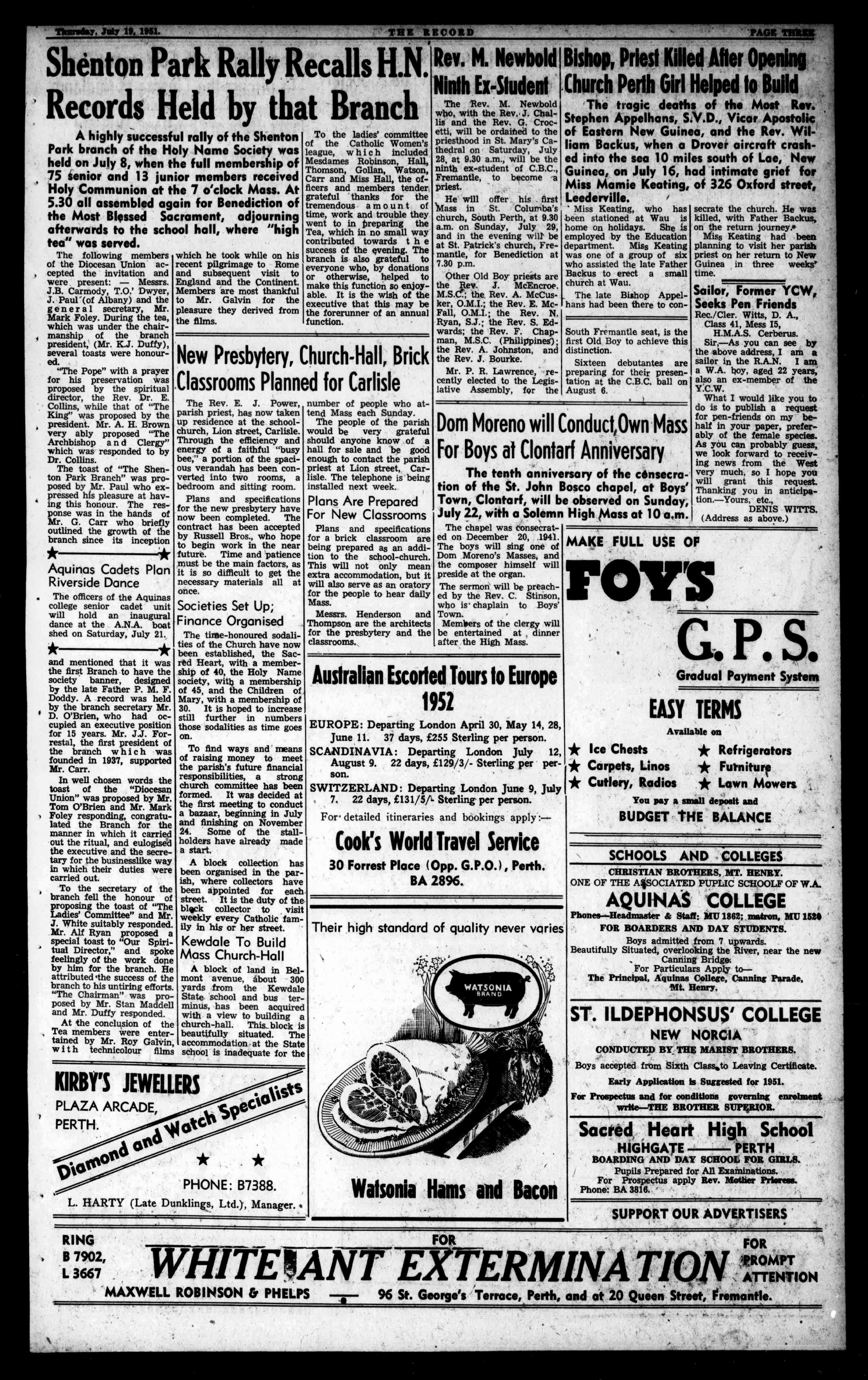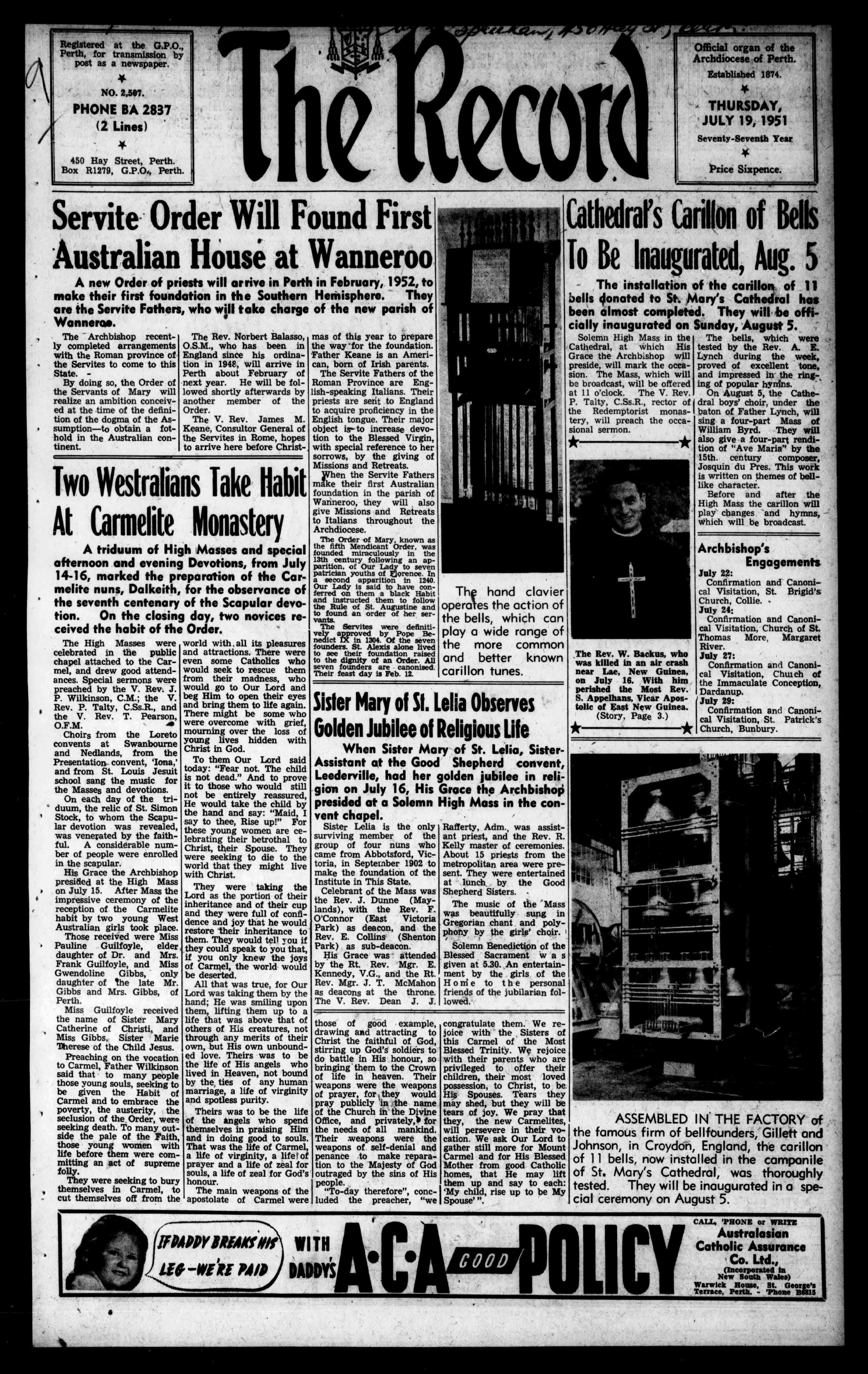 AnewOrderofpriestswillarriveinPerthinFebruary,1952,to maketheirfirstfoundationintheSouthernHemisphere.They aretheServiteFathers,whowilltakechargeofthenewparishof Wannerae.
