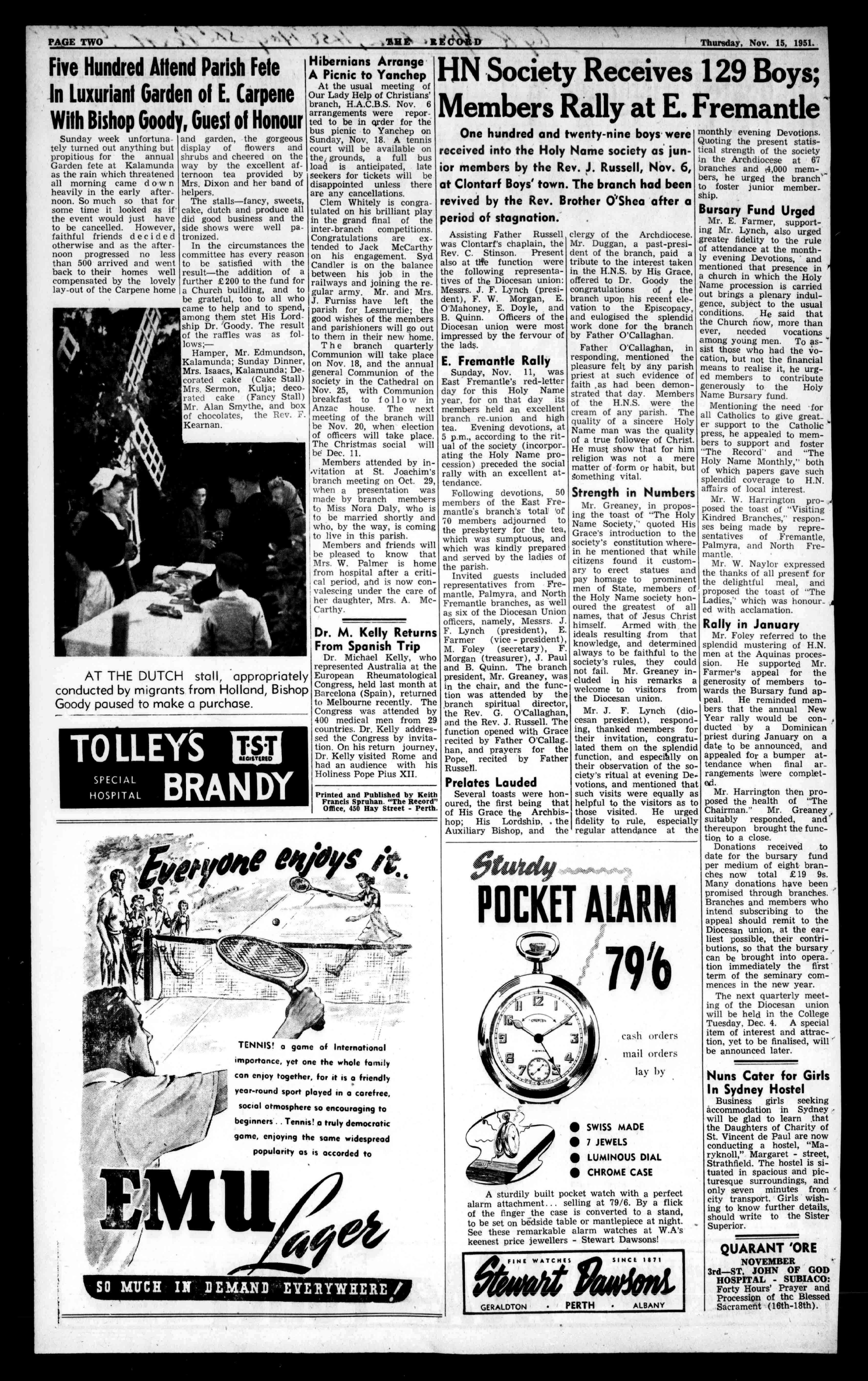 Mentioningtheneedfor allCatholicstogivegreatersupporttotheCatholic press,heappealedtomemberstosupportandfoster "TheRecord"and"The HolyNameMonthly,"both ofwhichpapersgavesuchsplendidcoveragetoH.N. affairsoflocalinterest.