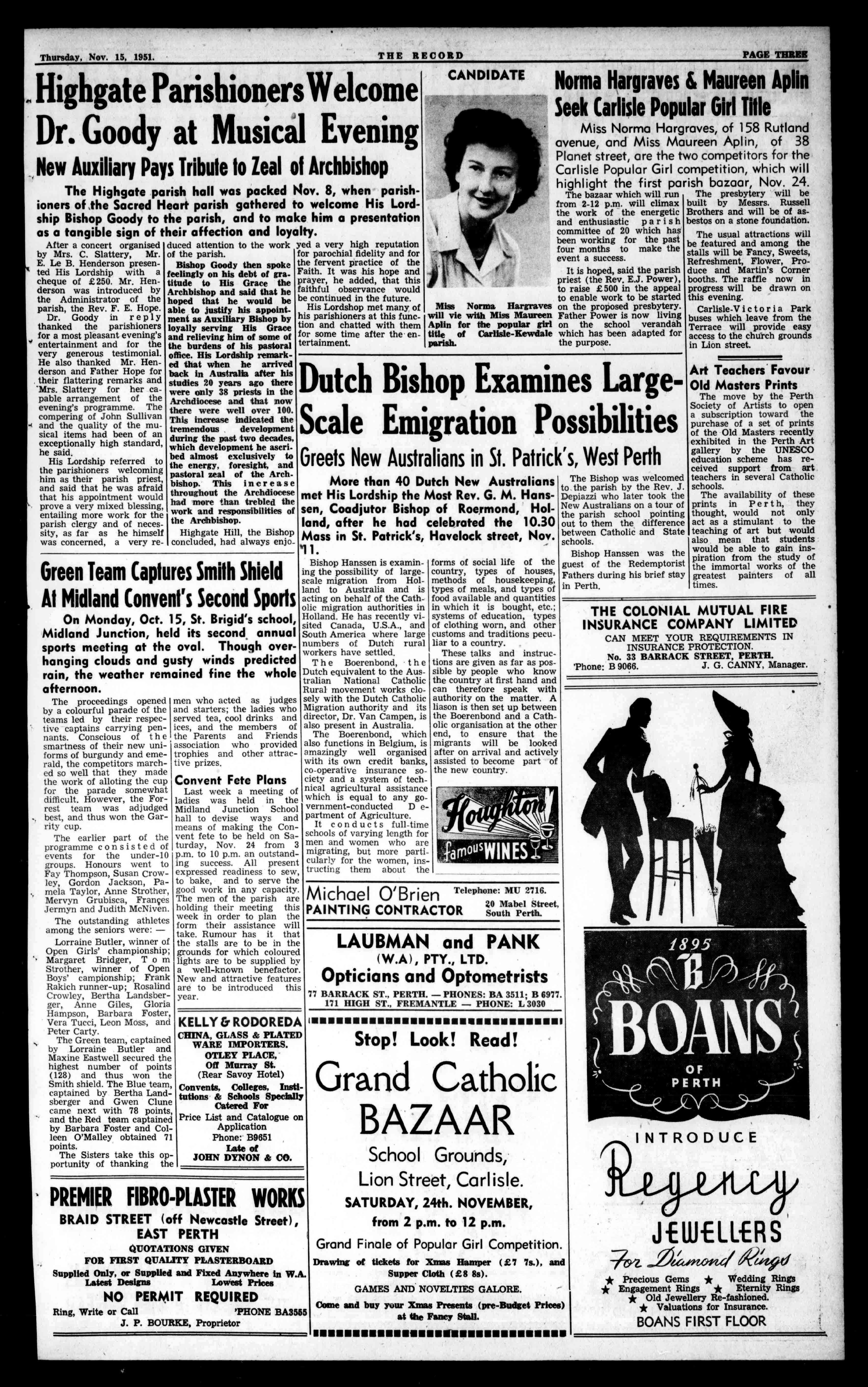 Inthecircumstancesthe committeehaseveryreason tobesatisfiedwiththe result-theadditionofa further£200tothefundfor aChurchbuilding,andto begrateful,tootoallwho cametohelpandtospend, amongthemstetHisLordshipDr.'Goody.Theresult oftheraffleswasasfollows;Hamper,Mr.Edmundson, Kalamunda;SundayDinner, Mrs.Isaacs,Kalamunda;Decoratedcake(CakeStall) Mrs.Sermon,Kulja;decoratedcake(FancyStall) Mr.AlanSmythe,andbox ofchocolates,theRev.F. Kearnan.