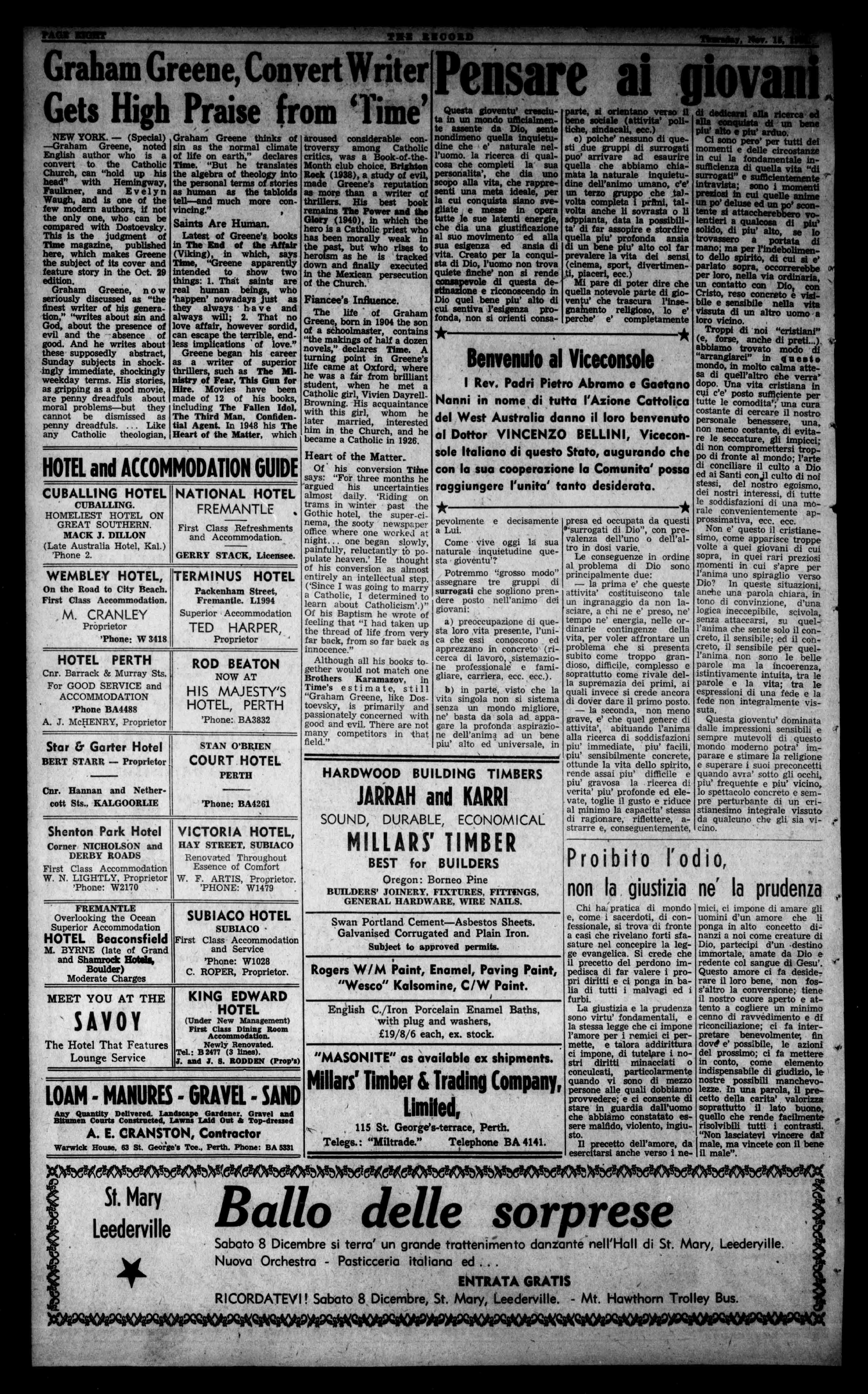 TheRev.P.A.McAlpine O.Carm,arrivedinPerthby airNov.13totakeupapositionaschaplainforCatholicImmigrationcommittee ontheliner"Mooltan."