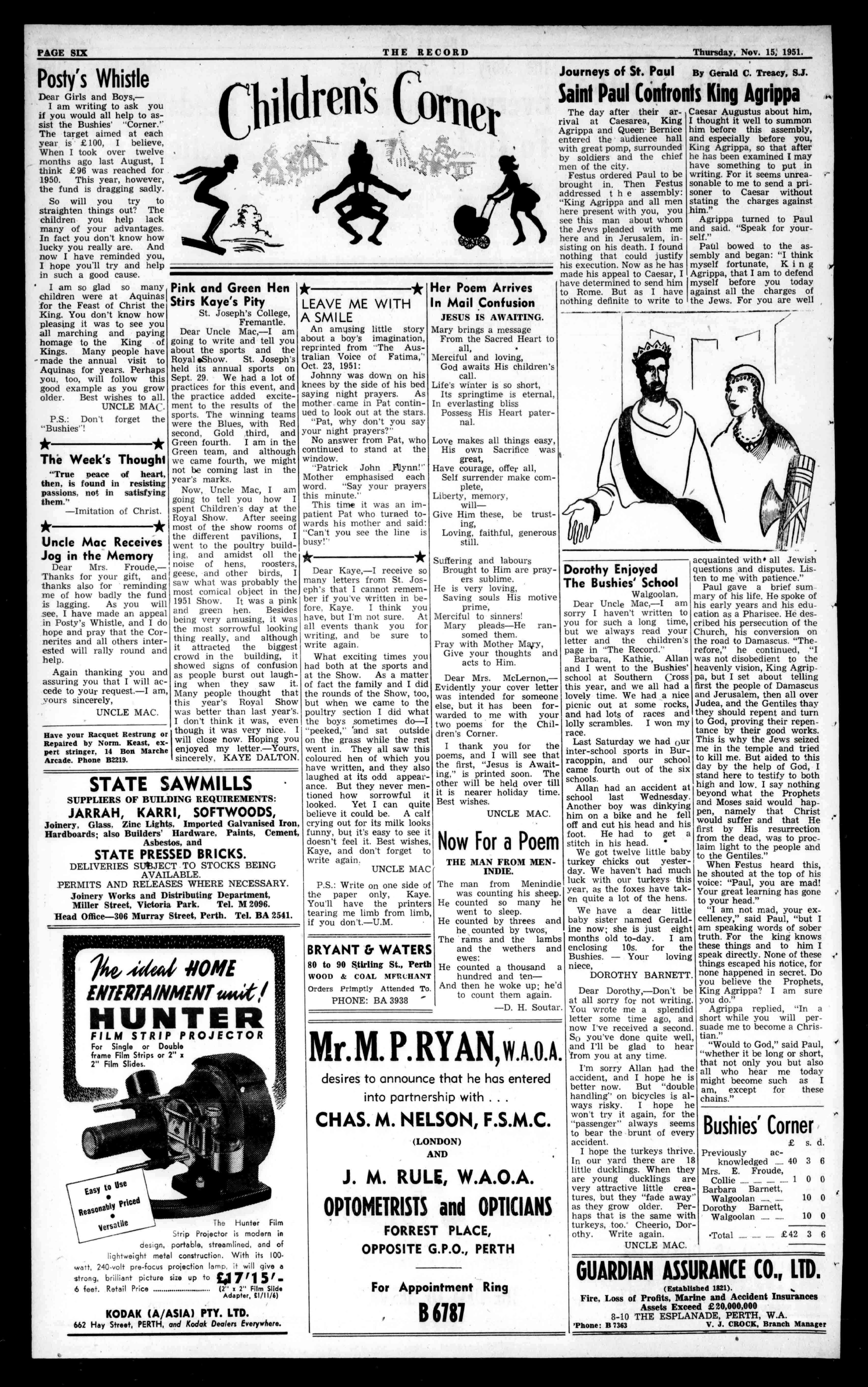 Girls,ifseekingagenuineboyfriend,perhapslife partner,writetoPollyanna Club,S1493,G.P.O.,Perth.