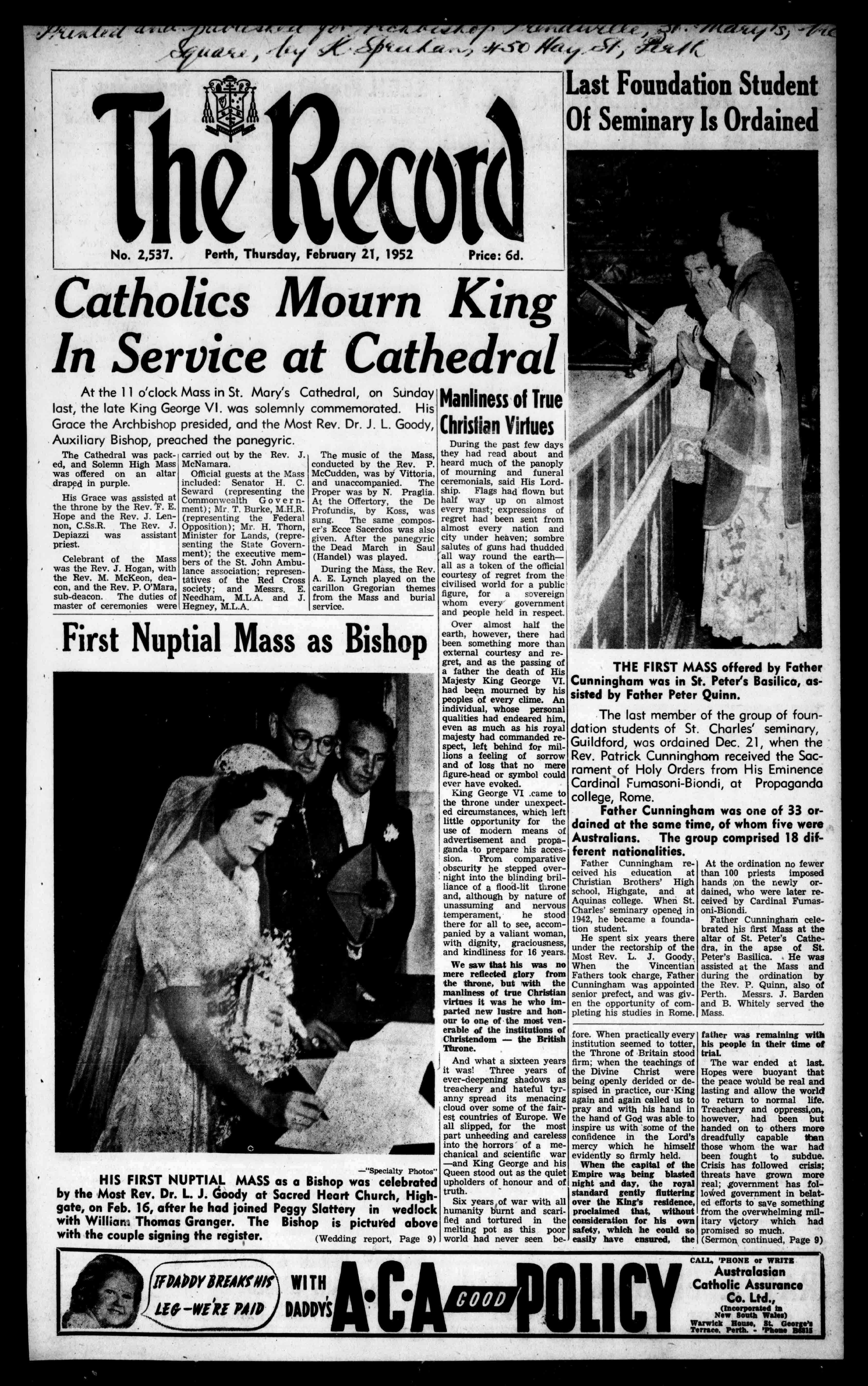 Atthe11o'clockMassinSt.Mary'sCathedral,onSunday'ManlinessofTrue last,thelateKingGeorgeVI.wassolemnlycommemorated.His, Goody,ChristianVirtues