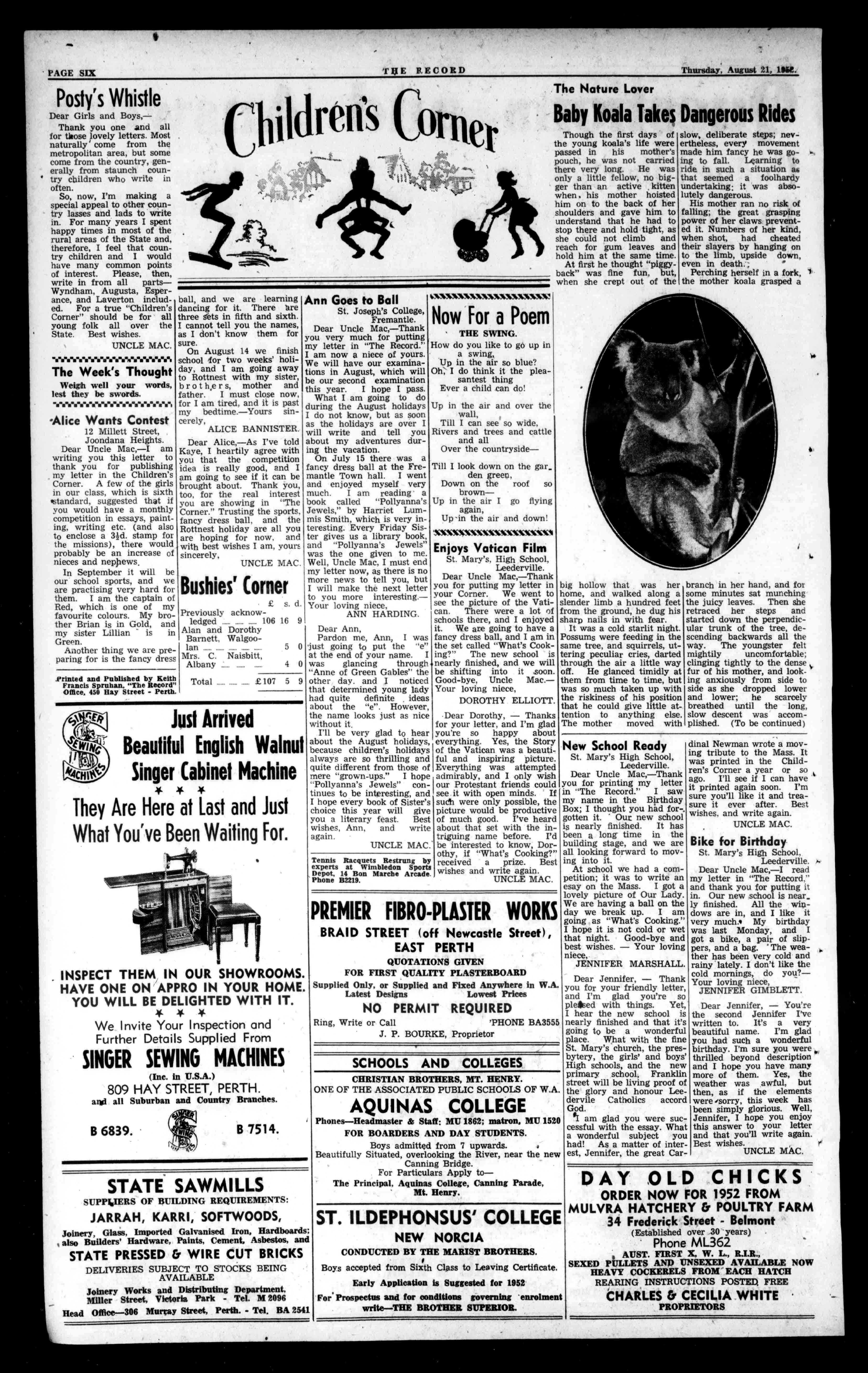 85/ChipBathHeatersfrom79/6 5ft.StainlessSteelSinks. £15/10/orwithcupbeardonly £26/10/:4ft.Cupbofrds,with sink complete,anddraineronly£15/10/ bargainsinslightly damagedbathsandbasins,Nato Louvres,andglass,enamelsinks. only42/0.CoppersandStands. HASSELLS Cnr.Wellington-Queen-sts.. and36Pier-st. TETEMISSTILLTIMETO susATIC'!? TX& No.11 ChutesCossalWiss grEE6,000 TICKETS5/AGMsmammasOS MOMBECRETAST.101S111111 001111101111110X.SOXCULG.P.O. NAM 411W==i1MAI SupportOurAdvertisers 4 MERCERSANDDRAPERS 215-219WILLIAMST.,PERTH Also14SouthTerrace,FREMANTLE 0