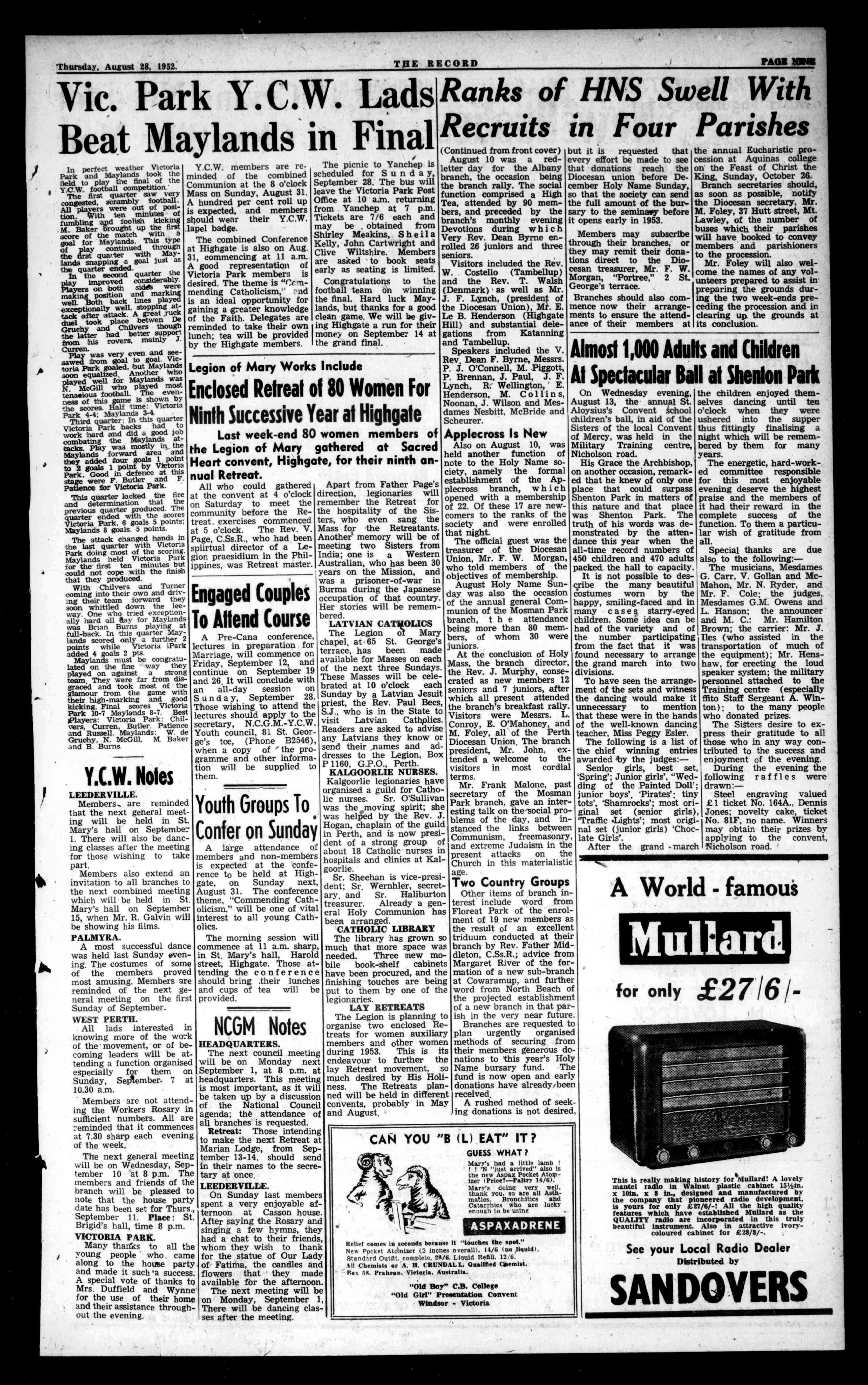 Mr.L.Noonanwaselected amemberofthebranchat thelastmeetingofSt. Kevin'sbranch,HACBSand Mr.J.Bulbeck'snomination wasreceived.NextSunday, Aug.31willbethequarterly communionofbranchmembers.