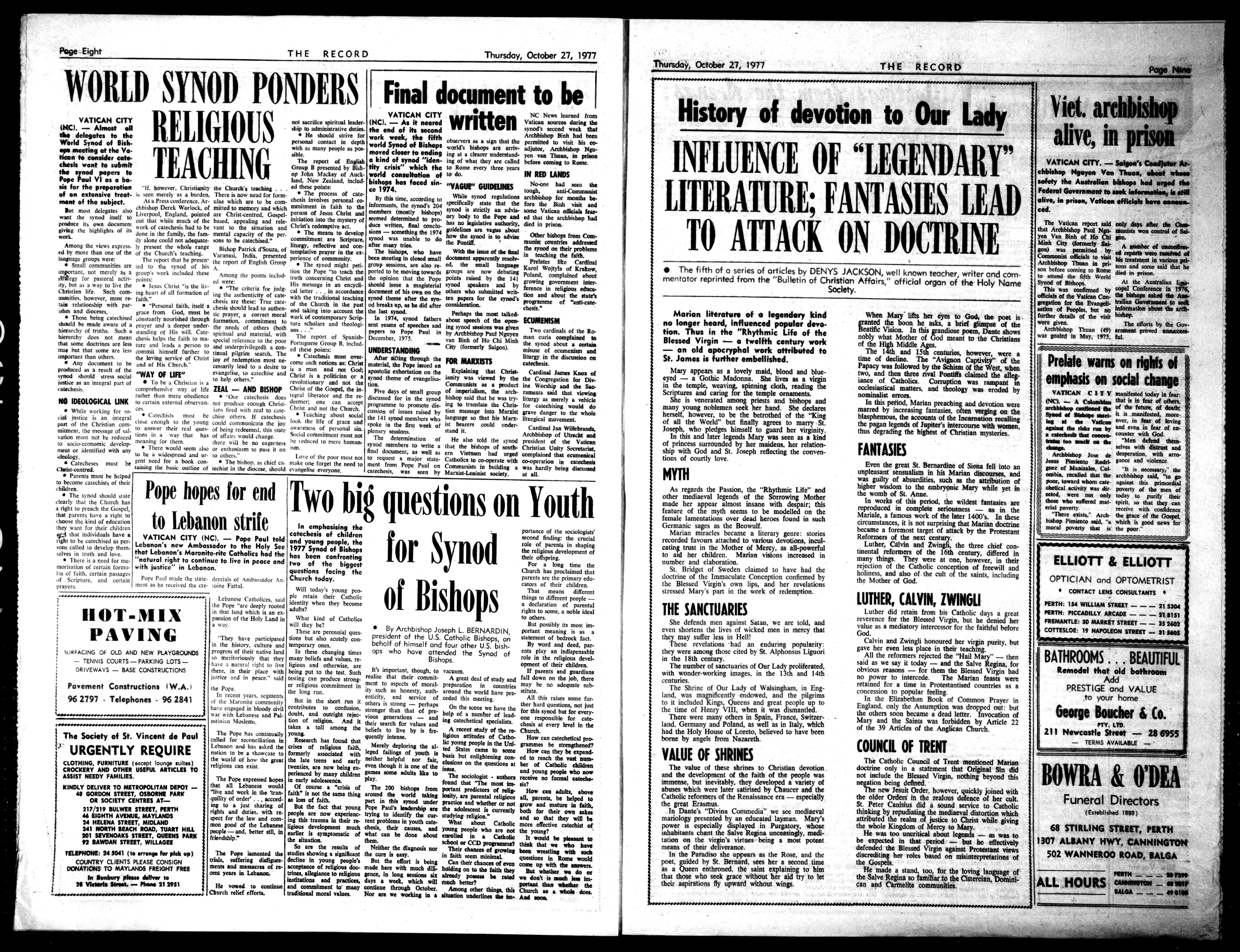 ThefeelingsofPerth Catholicswererunning high,indivativeofthewave ofacclaimfortheman sweepingoverAustraliaat thetime.