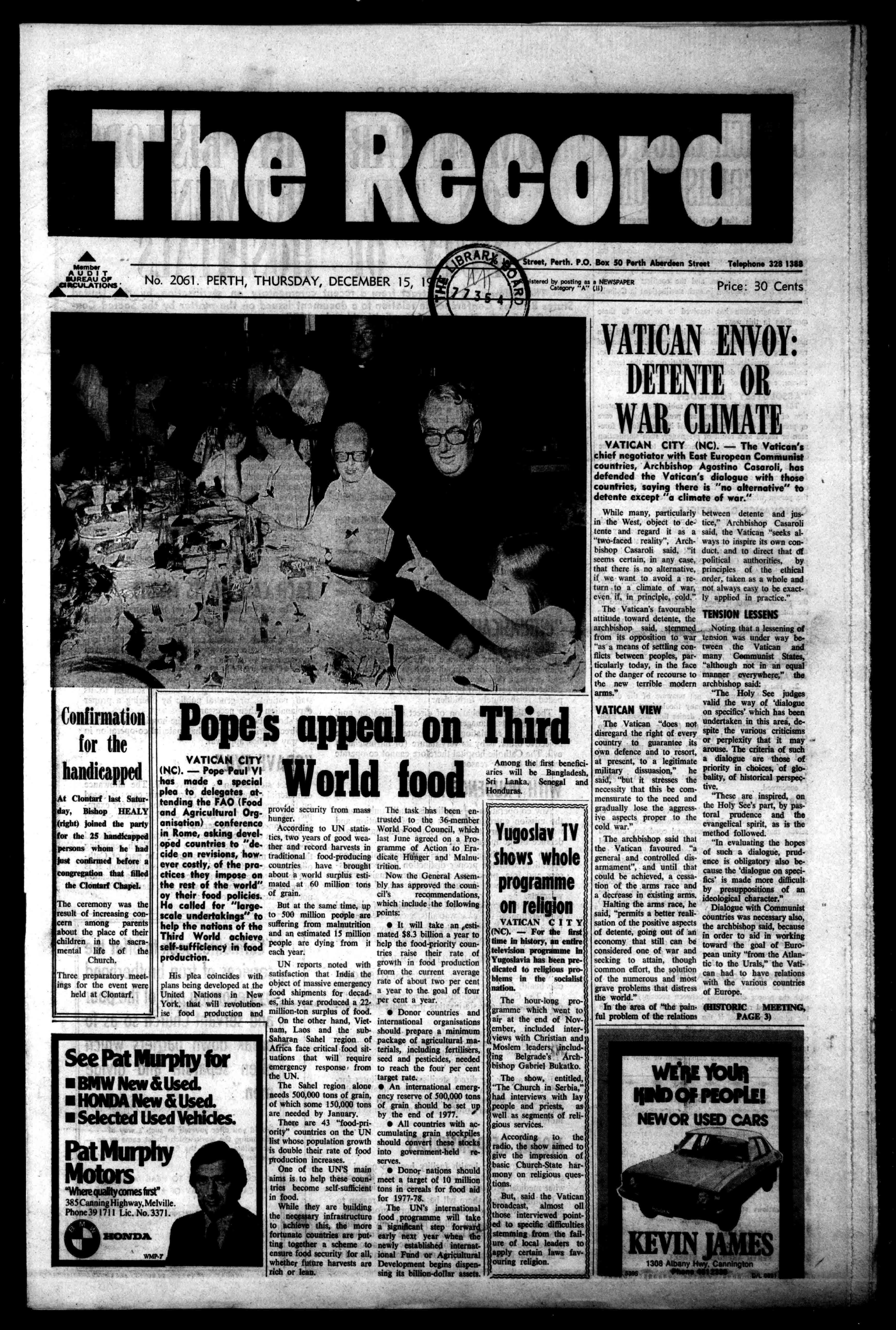 (NC).-PopePaulVI hasmadeaspecial pleatodelegatesattendingtheFAO(Food andAgriculturalOrganisation)conference inRome,askingdevelopedcountriesto"de. cideonrevisions,howevercostly,ofthepracticestheyimposeon therestoftheworld" oytheirfoodpolicies. Hecalledfor"largescaleundertakings"to helpthenationsofthe ThirdWorldachieve self-sufficiencyinfood production.