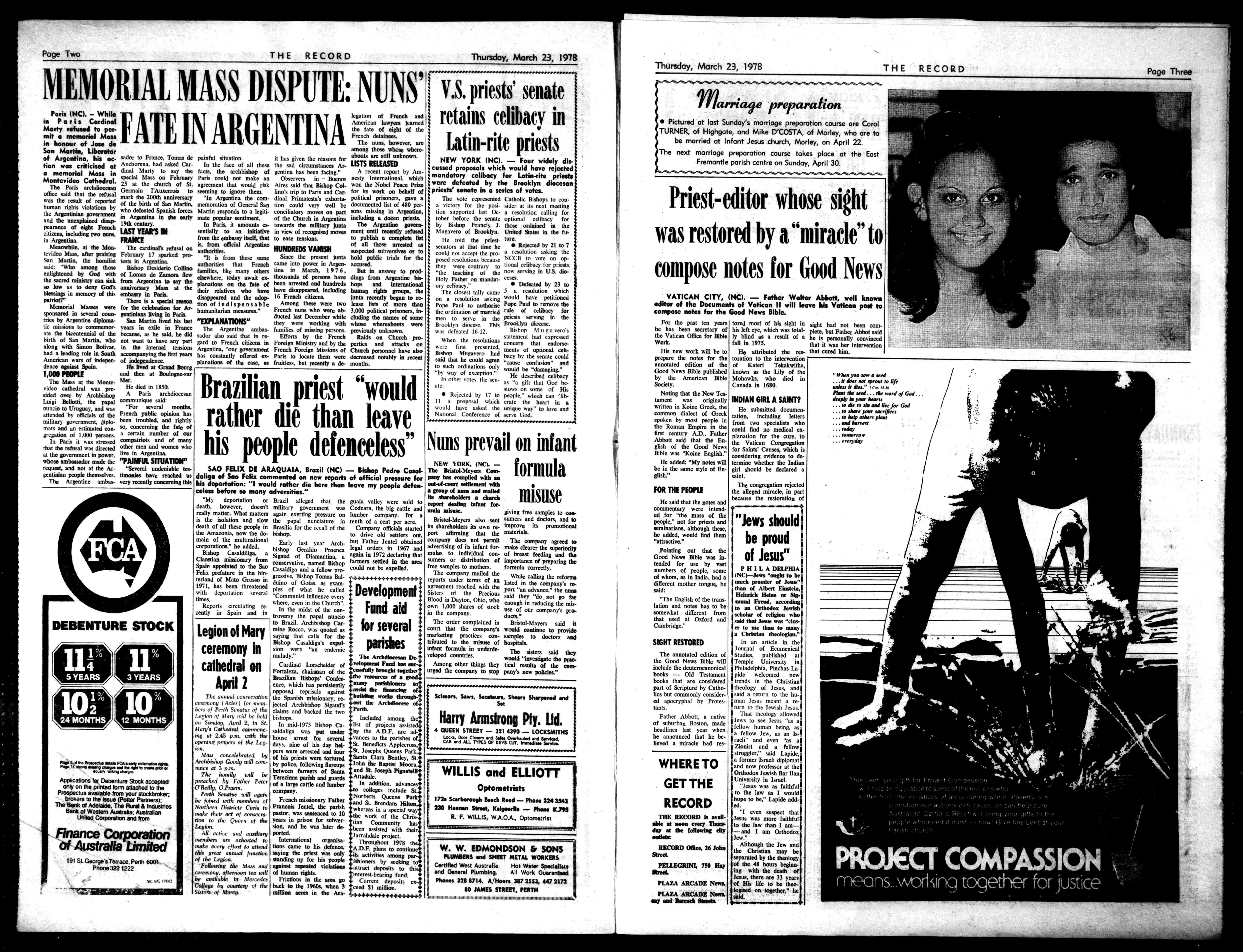 lionwascriticisedat thecrogAccooineyyerrignehatbeenrceroc... Arecce,reportbyAma.'"C"iI14053.specialMassonFebruaryPariscouldnotmakean Observersin Bo.,tactInternational,which MontevideoCathedral.25atthechurchofSt.agreementthatwouldriskAiressaidthatBishopCM.wontheNobelPoemPrize ThePathrsbdiee...GermainFAuxerrois toseemingtoignorethem. lino'striptoPadsandCar-forinswt.,onbehalfof officesedthattherefusalre,one20,1coorn,,..,&ogee,.Asco..dinepriceieecineshortepoliticalpriso.rs.gave thern.hofrener.dofthebirthofSanMartin,memorationofGeneralSantioncouldverywellbedocumentedlistof480per- hon."rihls9.1...hwhodefeatedSpanishforcesMartin...istoa.8.-conc....3..9.en1r'"musingjoAr''''''" heAre-MiniongovernmeminAge..intheearlymatepopularsentiment. oftheChurchinArgentinaincluding;adozenpries. andtheunexplaineddimprcon InParis, amountsC..towardsthemilitaryjot,. TheArgentinegovern- nvance05tiehtFrench LASTYEAR'S sentiallyto.initiativeinviewofrecognisedmowsme.,notil...EYtehrd iizen,includingtwonuns topublish glensBt centArgentina. Rum fronttheembassyitself.thattoeasetension, fromofficialArgentine ofellthosewaledr tinarnimic,attheMon- TheearthmanrefusalonC's:oh-oeilicy HUNDREDSVANISH suspected.b,..h....to tevidcoMass.afterpraisingFebruary17sparkedpro- otenonAcne .same Shoethepresentantsholdpublictrialsforthe SanMania,thehomilisttotsinArgentina AhooircetheFrenchcameintopowerinAmen-accused. said:''Whoamonghose BishopDesiderioCoffin°;Angie,.late,OtherstintinMarch,1976, Butinanswertoprod- enlightenedbyGadwithofLomasdeZamcmflewercenchcre,todayawaites-thousandsofpersonshavedingsfromArgentinehie- desacredministrycansinktreatArgentinato theogoncooricorgthef.toofbeenarrmtedandhuncheshops andinternational solowastodeepGod'sanniversaryMrsatthetheremed..,ehnbe,havedisappeated,.includinghumanrightsgroups,the blessingsinmemoryofOn,embassyinParis. disappearedandthetrap-16Frenchmthe juntarecentlybeg.tore- enure- Thereisspecialreamappeared ofteed ow,leAmongthewweretwoleaselistsofmorethan MemorialMasseswereforthecelebrationforAr.hornAggarreiniescoren,, Frenchnunswhowereab-3.000politicalprisoners,is sponsoredinseveralco.-seminargainsinParis ductedlastDecemberwhileeludingthenamesofsane triesbyArgentinedeka.- SaoMartinSeedhisbe10131.AHATIONS" theywereworkingwithwhosewhereaboutswere ticminionstocor.wener.lean.mileinFr.. TheArgentineamt.,familiesofmissingpersons.previouslyunirmsna anthebic.tennialofthebemuse,ashemid,bedidmdoralsosaidthatinre- EffortsbytheFrench RaidsmsChurchpro- birthofSanMartinwho004wastohaveanyP.gadtoFrenchcitizensinForeign