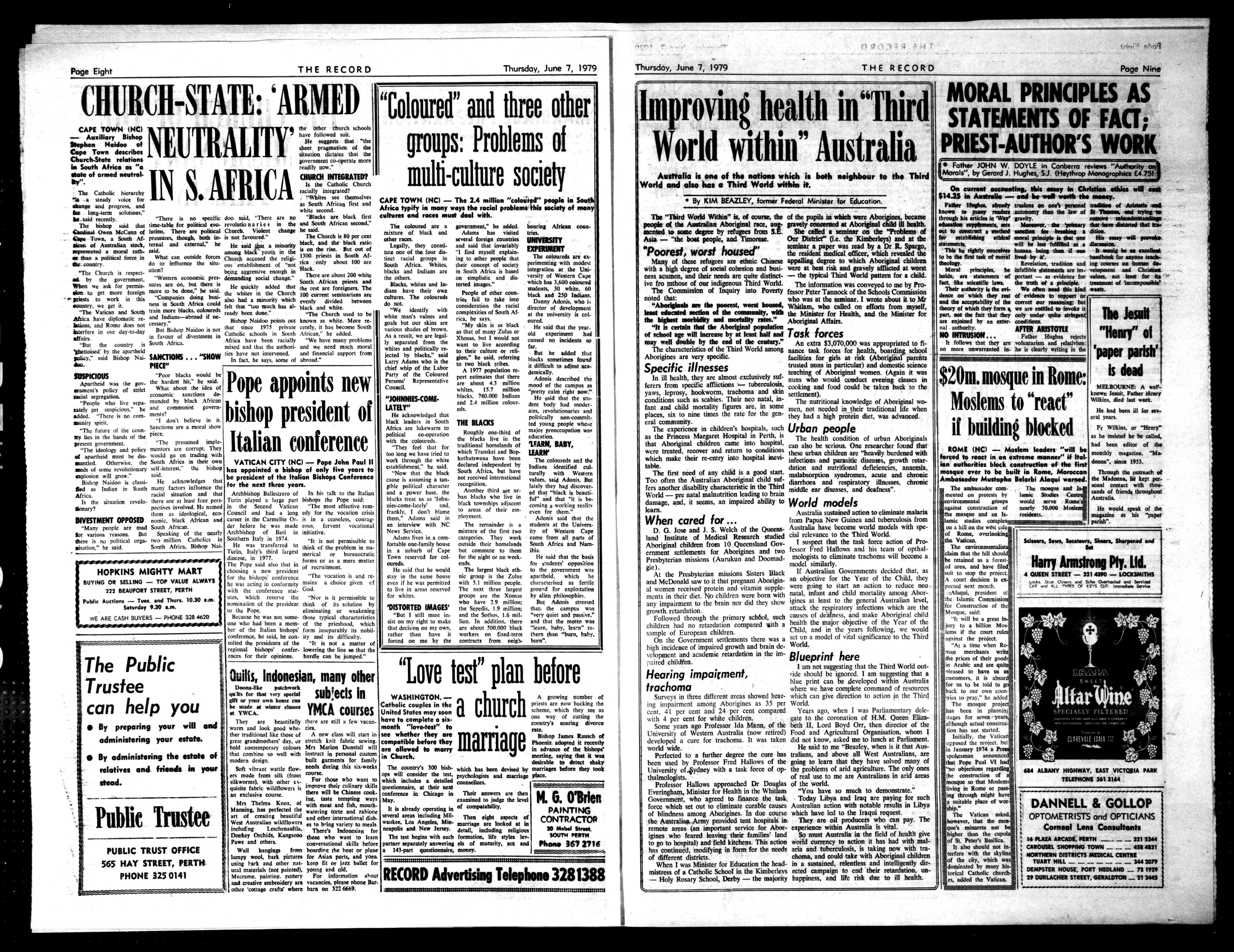 REDS Meeting20,000young Poles,thePopegavePoland'scommunistGovernmentademonstrationitdid notwelcomeofthepowerfulinfluenceoftheCatholicChurchonPoland's youngpeople. "Onlyfaithcansave youngPoland,"theteenagerschantedinunisonas thePopesteppedontoa balconyhighabovethem. The)Popesrniled%andthe chantingroseinpitch-an awesomereminderofthe chasmbetweenthecornmuistregimeandthe Church, Theregimewouldliketo restrict,classes,inreligion toolderschoolchildren,but thePopscried:"Mayall thechi'drenofpre-school agehaveeasyaccessto Heraisedclenchedfists abovehisheadandstalked aboutthe40m-highstand. T5-crowdroaredinapproval, rtk Put° Town&Country onyour shoppinglist... earnhigherinterest onyoursavings 4. Una&Cauntrfit buildiptFociatiwith,wetsmit incesding1111011,000,011IL Town& PermanentBuildingSociety 1, HEADOFFICE.BUILDINGSOCIETYHOUSE, 797-306MURRAYST.PERTH.