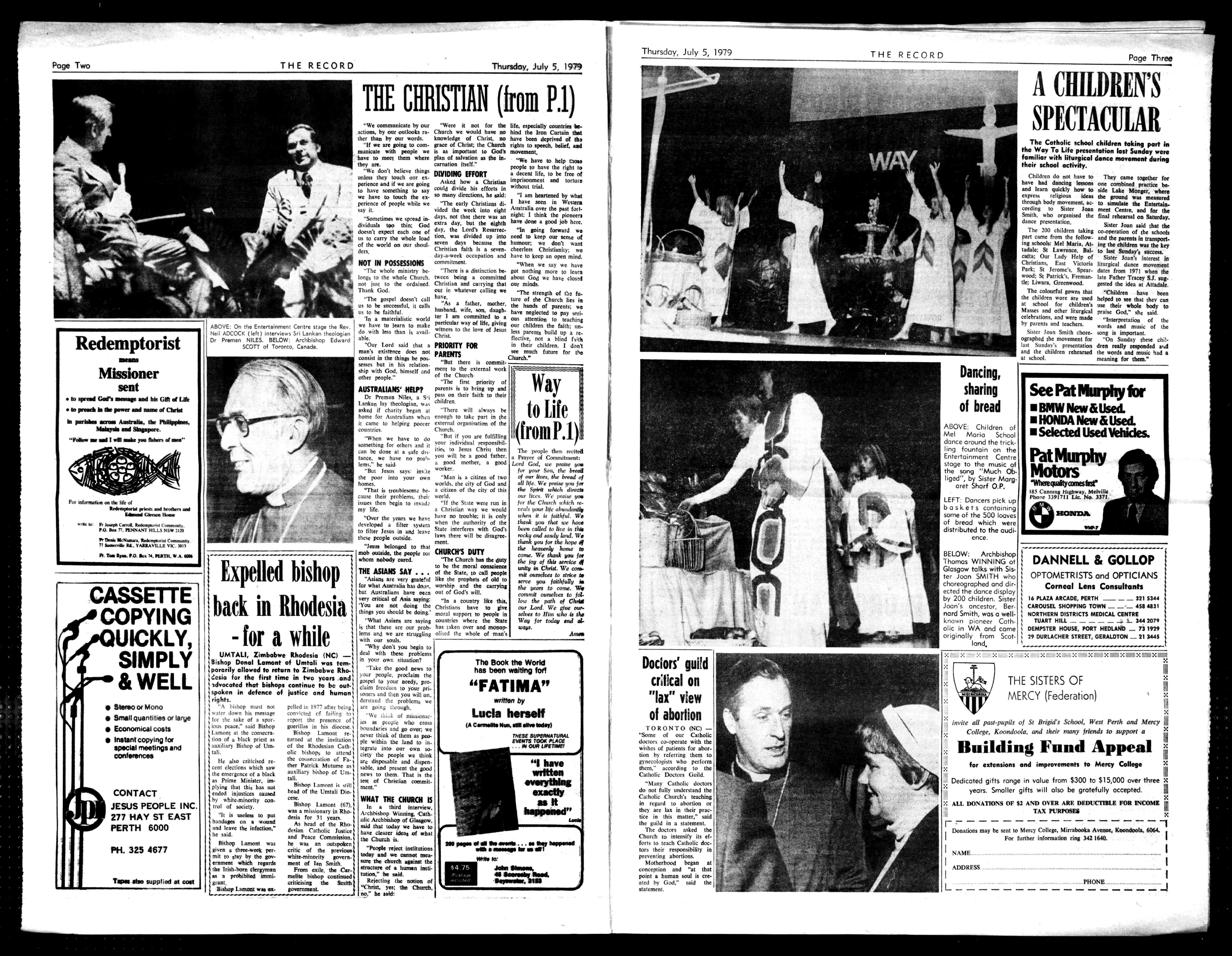ttttrwrar V 26JohnStreet,Perth. No.2141:PERTH,THURSDAY,JULY5,1979 P.O.SOXSOPERTHABERDEENSTRE G....IP 'tut 3/91 6L1"4 111.1012110 1091221Ilia Price: 30Cents ASPECTACULAR WAYTOLIFE CHURCHFINALE Nearly8,000ChristiansobservedWAY79lastSundayinthe largestcombinedchurchceremonyofprayerandthanksgivingever heldinWA.