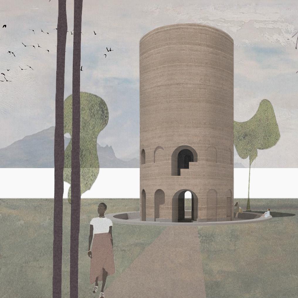 Der seriell gedachte Lehmbauturm im Rombergpark entspringt der Idee, die klassische Parkbank räumlich weiterzudenken. Als selbstverständliches Element des Parks dient sie nicht nur dem Sitzen nach einem Spaziergang, sondern ebenso der kurzen Erholung, der Meditation und dem bewussten Verweilen. Zugleich ist sie Ort der zufälligen Begegnung – ein Punkt, an dem Gespräche entstehen können, ohne geplant zu sein. Diese Mehrdeutigkeit des Nutzens bildet die Grundlage des Entwurfs. Der Turm versteht sich als Pendant zur Parkbank: nicht als Ziel, sondern als Angebot, als Treff- und Anhaltepunkt im Park, frei von kommerziellen Bedingungen wie Cafés oder Restaurants, ausschließlich dem Aufenthalt gewidmet.
