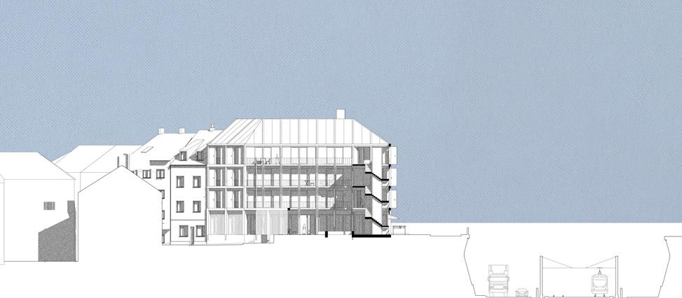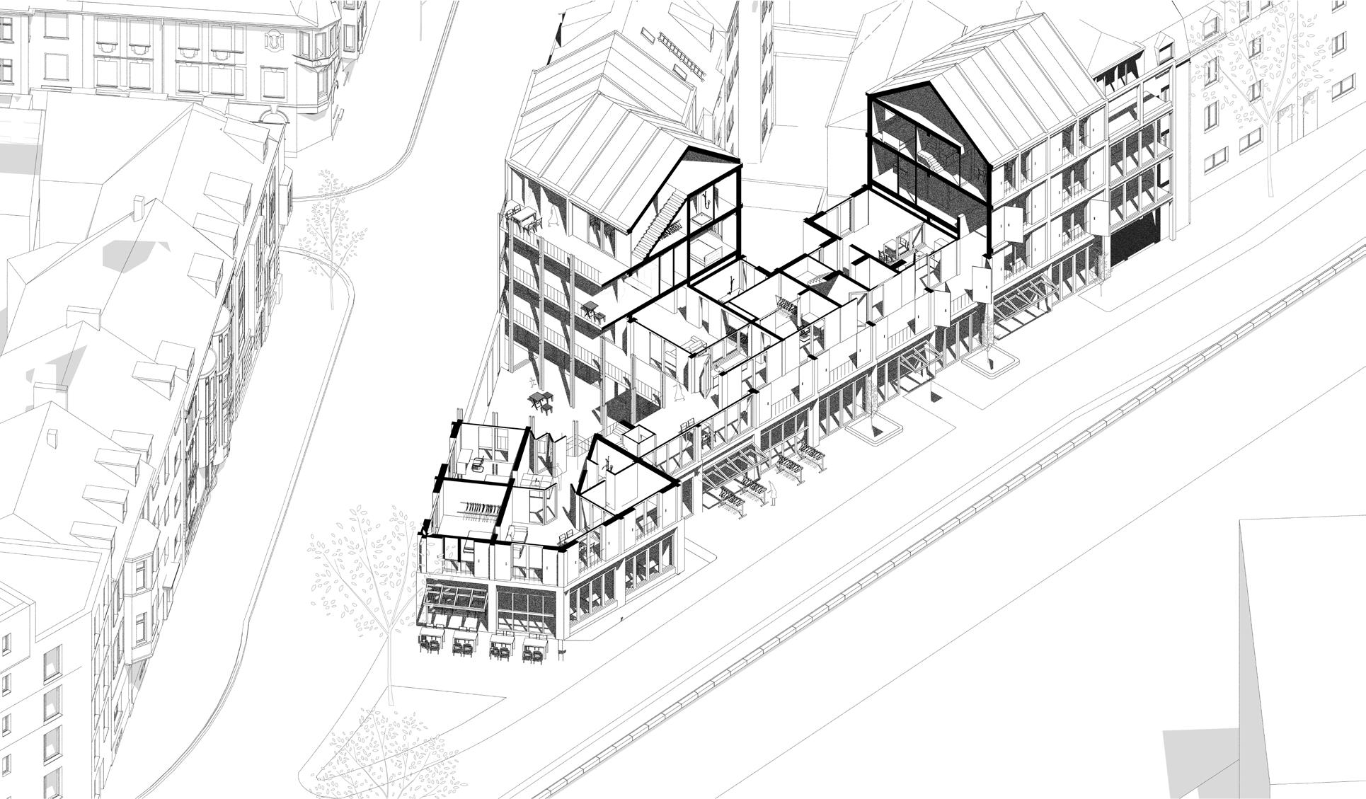 Der Entwurf begreift Architektur nicht als abgeschlossenes Objekt, sondern als räumliche Struktur, die unterschiedliche Formen des Zusammenlebens ermöglicht. Er formuliert eine Haltung, in der Material, Konstruktion und Nutzung aufeinander reagieren und eine Architektur entstehen lassen, die sich ihrer Wirkung bewusst ist, ohne sie zu behaupten.