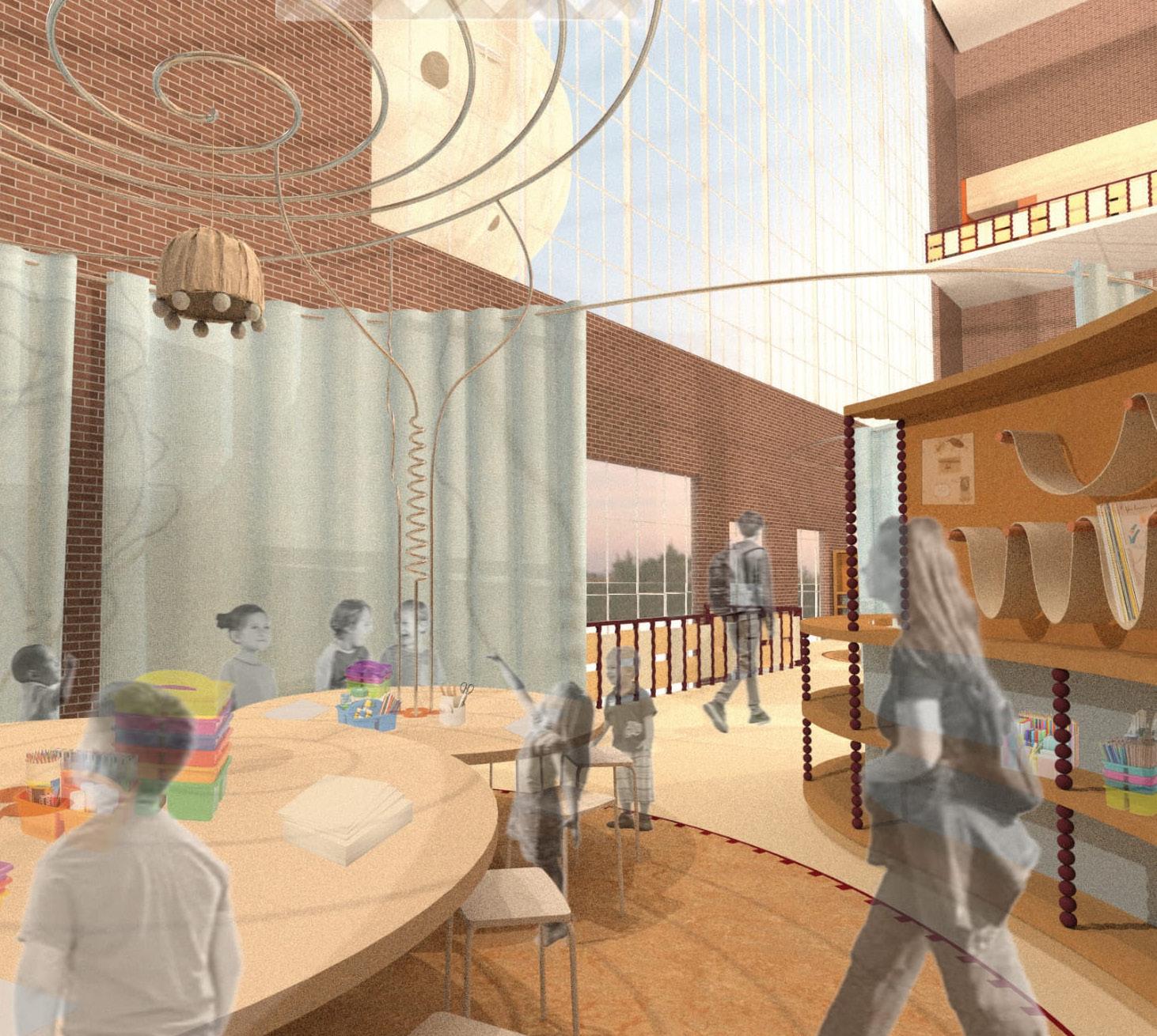 The building becomes an active spatial pedagogy, teaching through its operations: renewal (adaptive reuse), erosion ( reuse of brick as material memory), and branching (speculative re-imaginings of how people gather, learn, and create). Abstracting River, therefore, reframes the role of the library, expanding education beyond curriculum into a civic ecology, where learning moves like water, shaping both people and the city in perpetual motion.