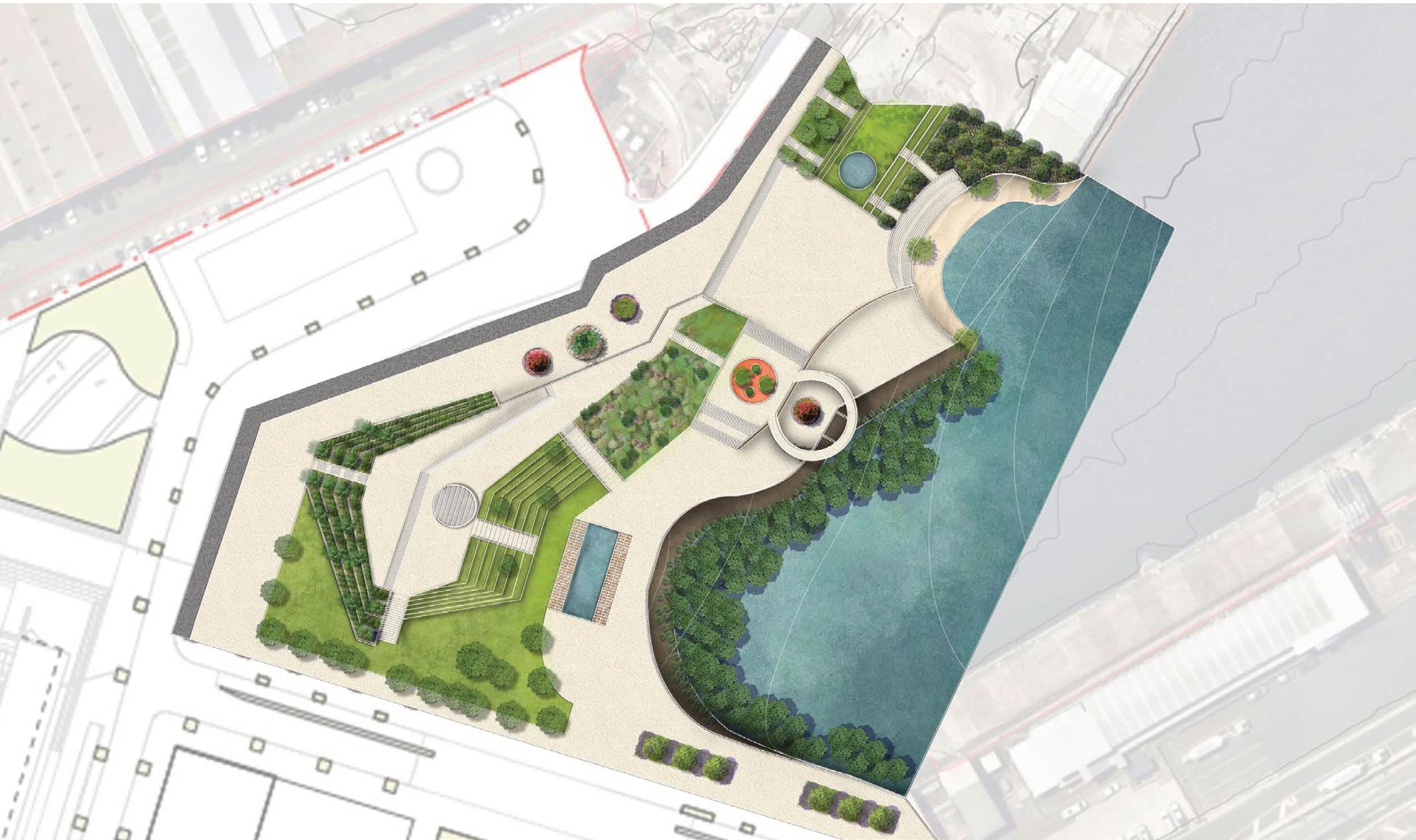 “Symbiosis and co-living” seeks to establish a series of adaptive methods as nature-based solutions to give back fish habitats in its original status through supporting mullets’ life cycles consisting feeding and migration stages whilst enhancing Cooks River riparian corridor’s resilience to future seasonal flooding events under the context of sea-level rise. By leveraging river dynamics principles, the project will be set up in three phases: reconfiguring Cooks River, re-establishing habitats, and reconnecting to floodplain, which incorporates reusing the site's concrete blocks as the river edge, introducing side channels and side bars to respond to net positive climate action for protecting mullet while engaging with communities.