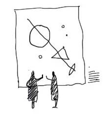 A stick has only one edge. It forms a locus defining space around it. The space defining element is inside the space. The space defining element is inside thespace. Space is perceived in several different ways, as surrounding astick, as a permeable boundary, as a linear outline and in the accumulation in depth resulting in a differentiation of density.