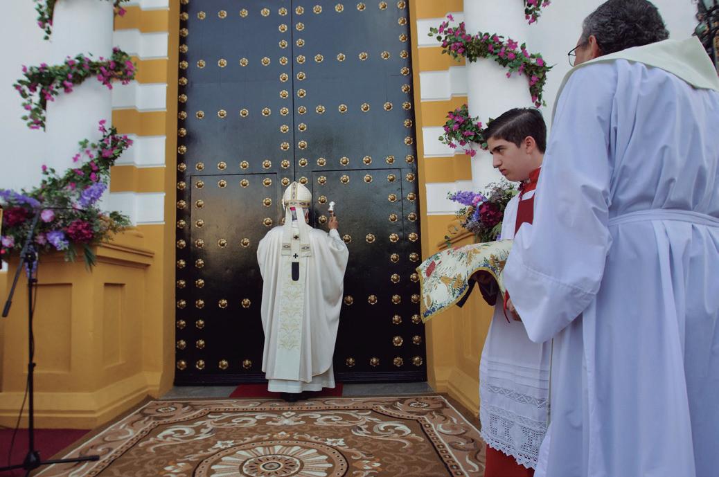DOS HERMANAS.- El arzobispo de Sevilla ha sido el encargado de solemnizar el inicio del año jubilar que la Santa Sede ha concedido a la Hermandad de Nuestra Señora de Valme con motivo del cincuentenario de su coronación canónica. Monseñor Saiz presidió la Eucaristía en la que se procedió a la apertura de la puerta santa, un gesto que simboliza el comienzo de doce meses –“un período de gracia”- en los que se podrá ganar la indulgencia siguiendo los requisitos establecidos para ello (confesión, recibir la Comunión y orar por las intenciones del Papa). “A esta puerta santa que acabamos de abrir, cada uno llega portando su propia vida”, apuntó el arzobispo.
