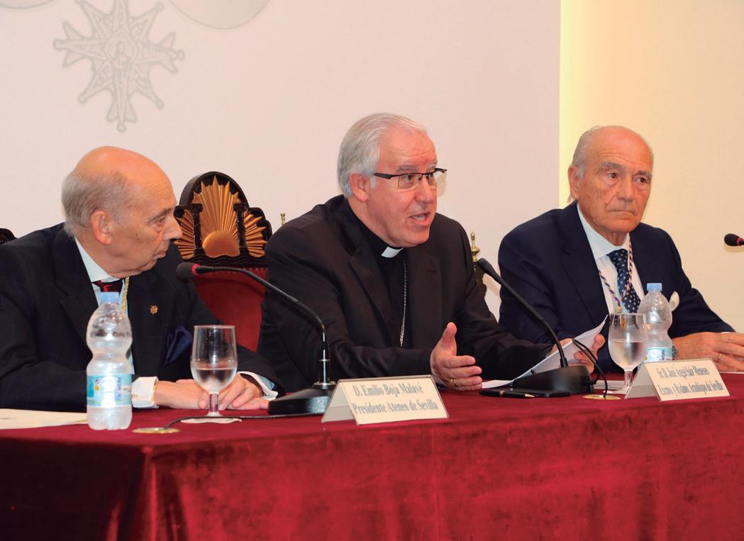 SEVILLA.- En su ponencia en el Ateneo de Sevilla, el arzobispo señaló la globalización como la responsable de “una crisis de sentido, del sentido que da unidad a todo lo que existe y sucede en la vida”. Además, destacó en su ponencia la pervivencia de “elementos que perduran a lo largo del tiempo (…) percibimos que el corazón humano del hombre de hoy, como el de todas las épocas, tiende a una felicidad plena”. “Pero (la persona) experimenta una y otra vez que no encuentra la plenitud y la felicidad que esperaba. Experimenta así la finitud de todo cuanto consigue y así sufre como una especie de perenne insatisfacción”, apuntó.