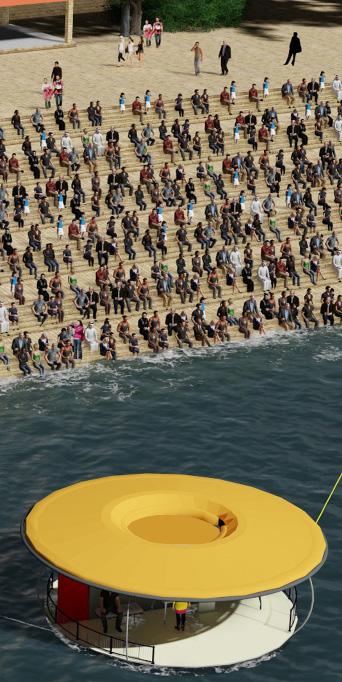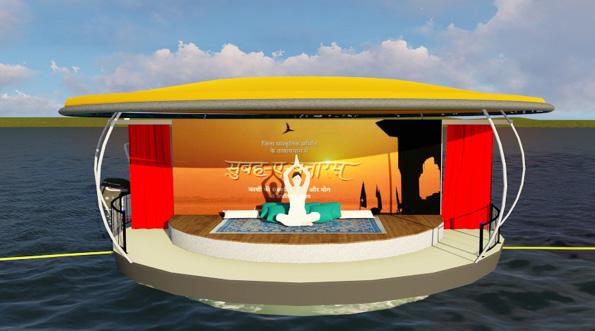 The solid waste flowing in the river will be filtered out before it enters Varanasi. The wheel will revolve slowly completing 2 revolutions/minute on an average. With 24 spokes inspired from the Ashoka Chakra, it will symbolize changing times in India and will be seen from a distance which would act as a reminder to people of their connection with water.