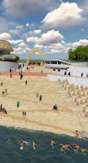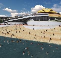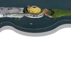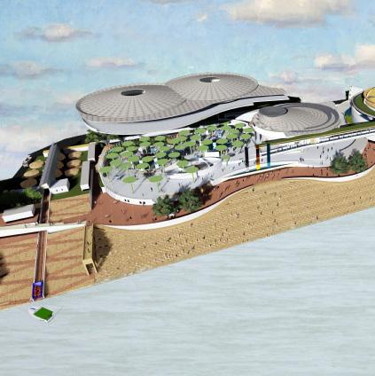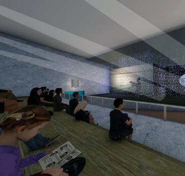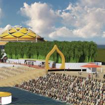Images description: Floating stage amphi-theatre, Stage with curtain open & closed