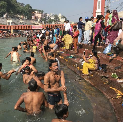 Maa Ganga provides divine liberation, life and purity to everyone. She is also the very direct lifeline for some 500 million people, quenching their thirst, cleansing their bodies and irrigating their fields. Whilst, Mother Ganga, as the Mother Goddess, is un-taintable, un-pollutable and un-defilable, her physical form, these precious molecules of H2O, which are the very life and livelihood of approximately one-third of India’s population, are polluted every day with nearly 3 billion liters of waste, including carcinogenic chemicals and raw sewage. Added to this is solid waste, such as discarded poly bags, wrappers and plastic bottles, which choke the river, sully Her shores and sicken millions who live in Her basin.