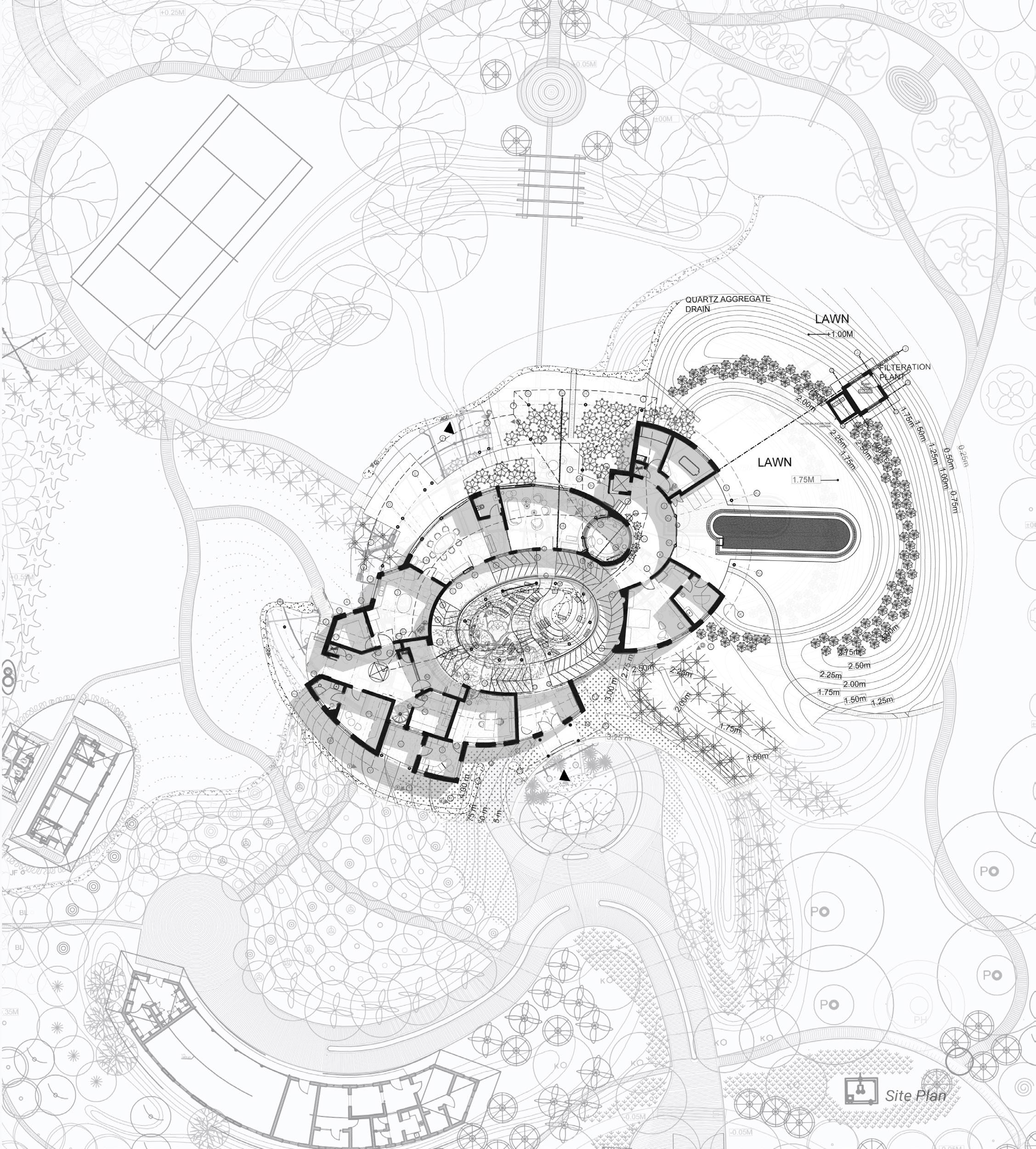 Our client, a trustee of Auroville—the visionary township often called the “City of the Future”—drew inspiration from its Master Plan. Rooted in the form of a spiral galaxy, the design symbolizes dynamic movement, interconnectedness, and a seamless balance between urban and natural environments.