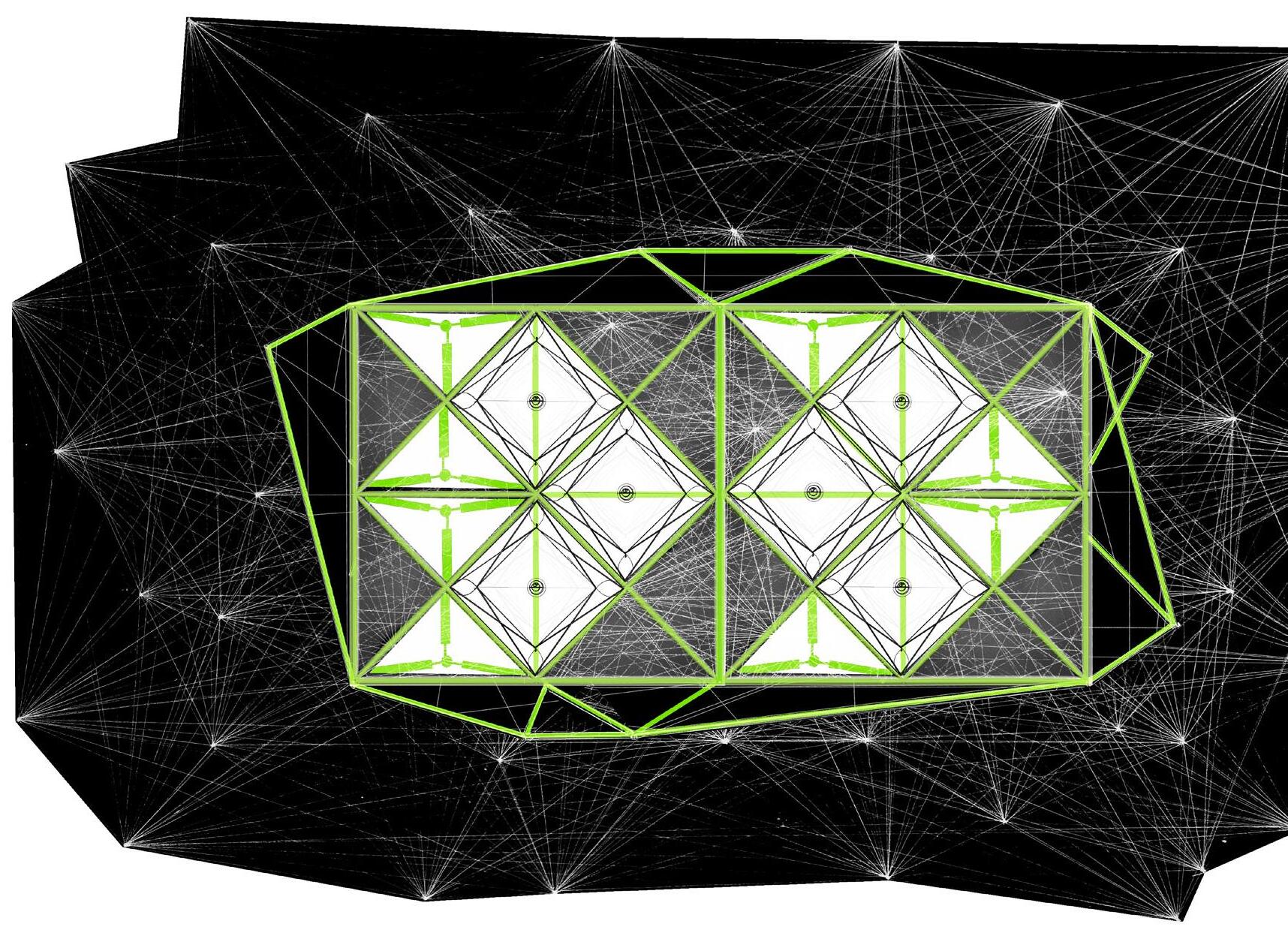 First, we plotted 50 random points on paper. Next, we folded it origami style to derive abstract architecture form & function. I designed a walking martian human habitat with foldable ETFE rooms and a kinetic titanium shield skin.