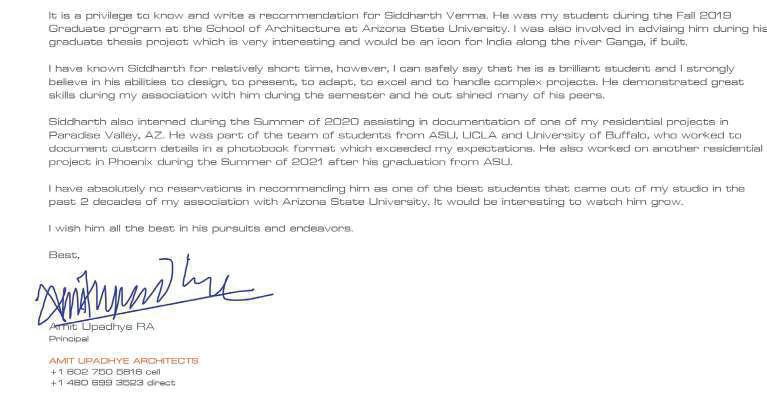 al pr oject s as par t of an i n t er n s hi p headed by AS U . T hes e pr oject s i n cl uded t he devel opm en t of a m as t er pl an an d s chem at i c un i t - des i gn as par t of a f eas i bi l i t y- s t udy an d a r ez on e appr ov al pr oces s I en joy ed w or k i n g on t hes e pr oject s w i t h S i ddhar t ha H i s dedi cat i on , des i gn s en s i bi l i t i es an d pr oduct i on abi l i t i es hel ped pr opel t he pr oject s f or w ar d an d cl os er t o r eal i z at i on . S i ddhar t ha has pr oved hi ghly- s k i l l ed acr os s a w i de r an ge of pr oduct i on an d pr es en t at i on pl at f or m s . H i s des i gn i n s i ght s w er e w el l f or m al i z ed an d cl ear an d I have appr eci at ed conver s i n g on des i gn choi ces w i t h hi m .
