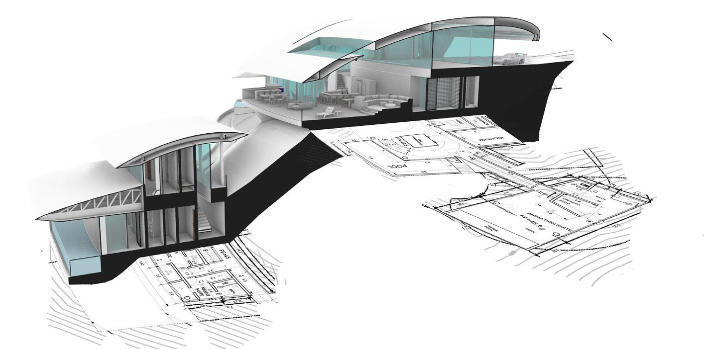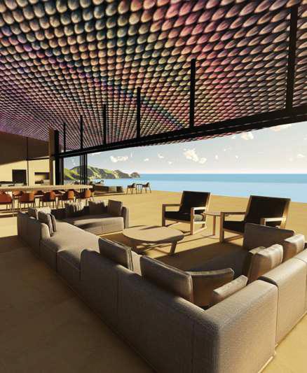 Inspired by Hojas—meaning “falling leaves”—this ninebedroom house cascades down a hill, its leaf-like roofs with knife-edge details maximizing views of the ocean.